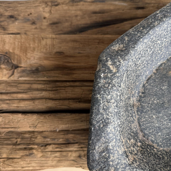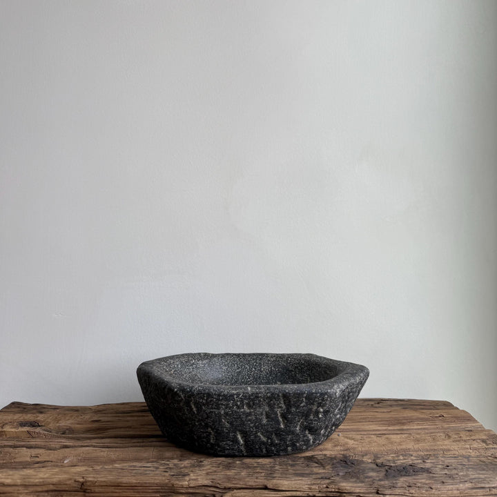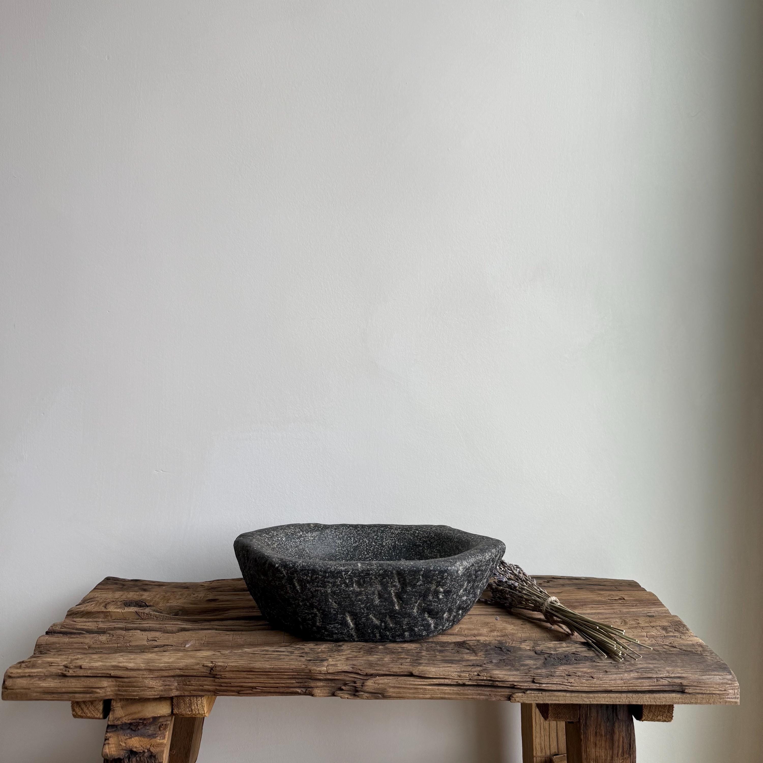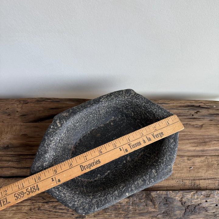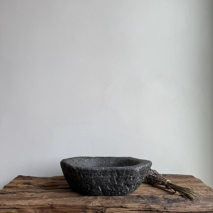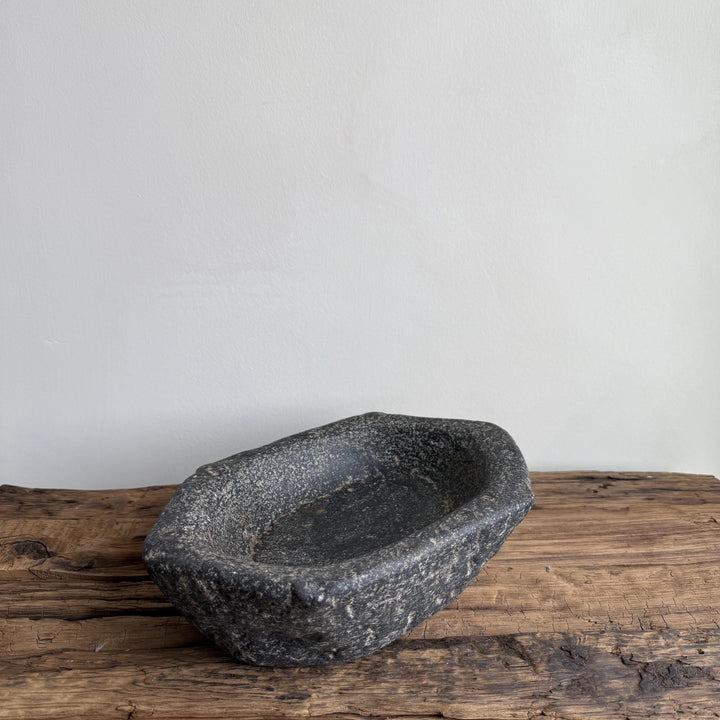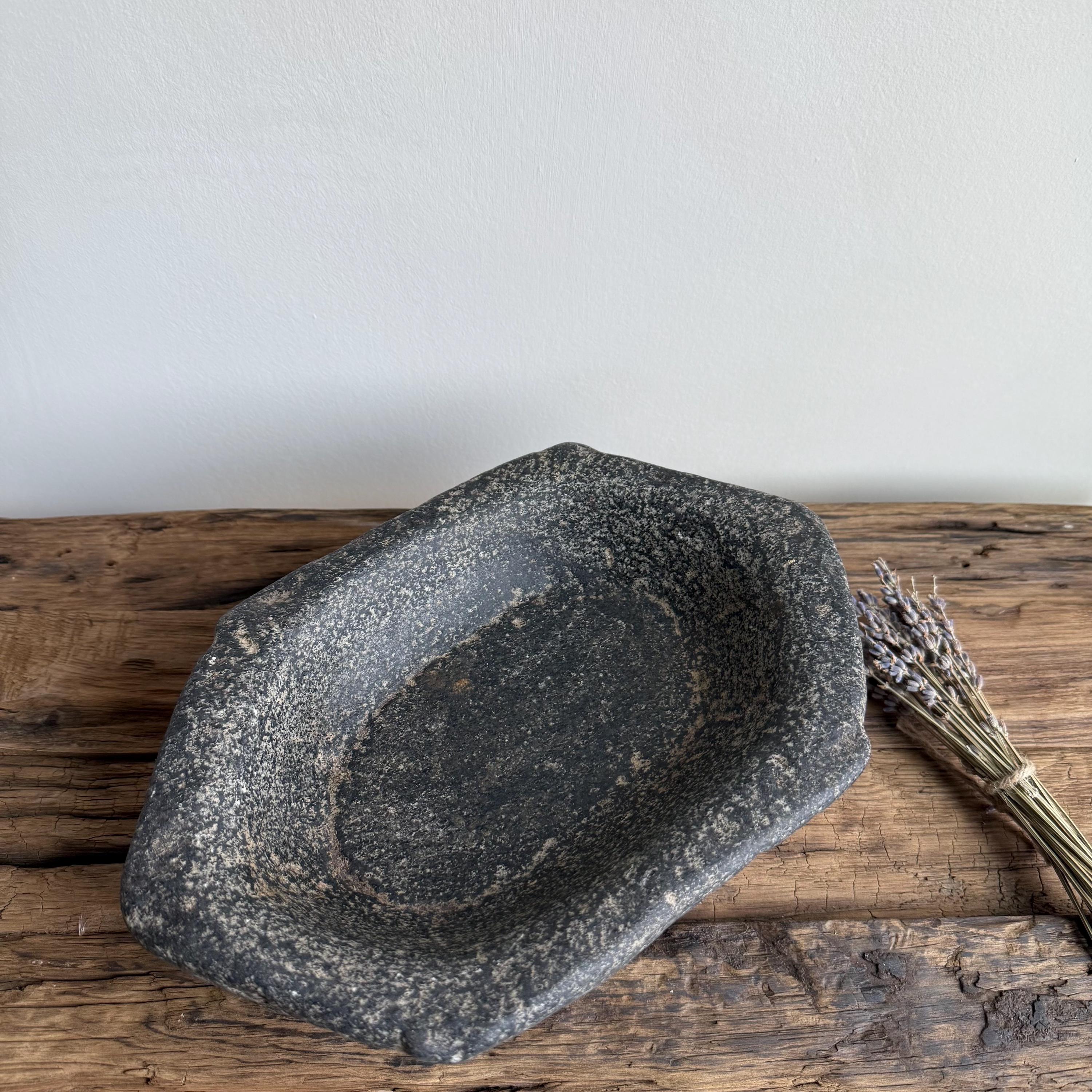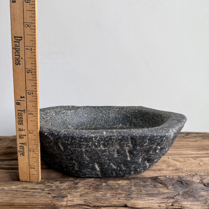 Vintage Marble Kharal 10.5" Stone Tray, Antique Limestone Carved Oval Tray, Primitive Stone Centerpiece