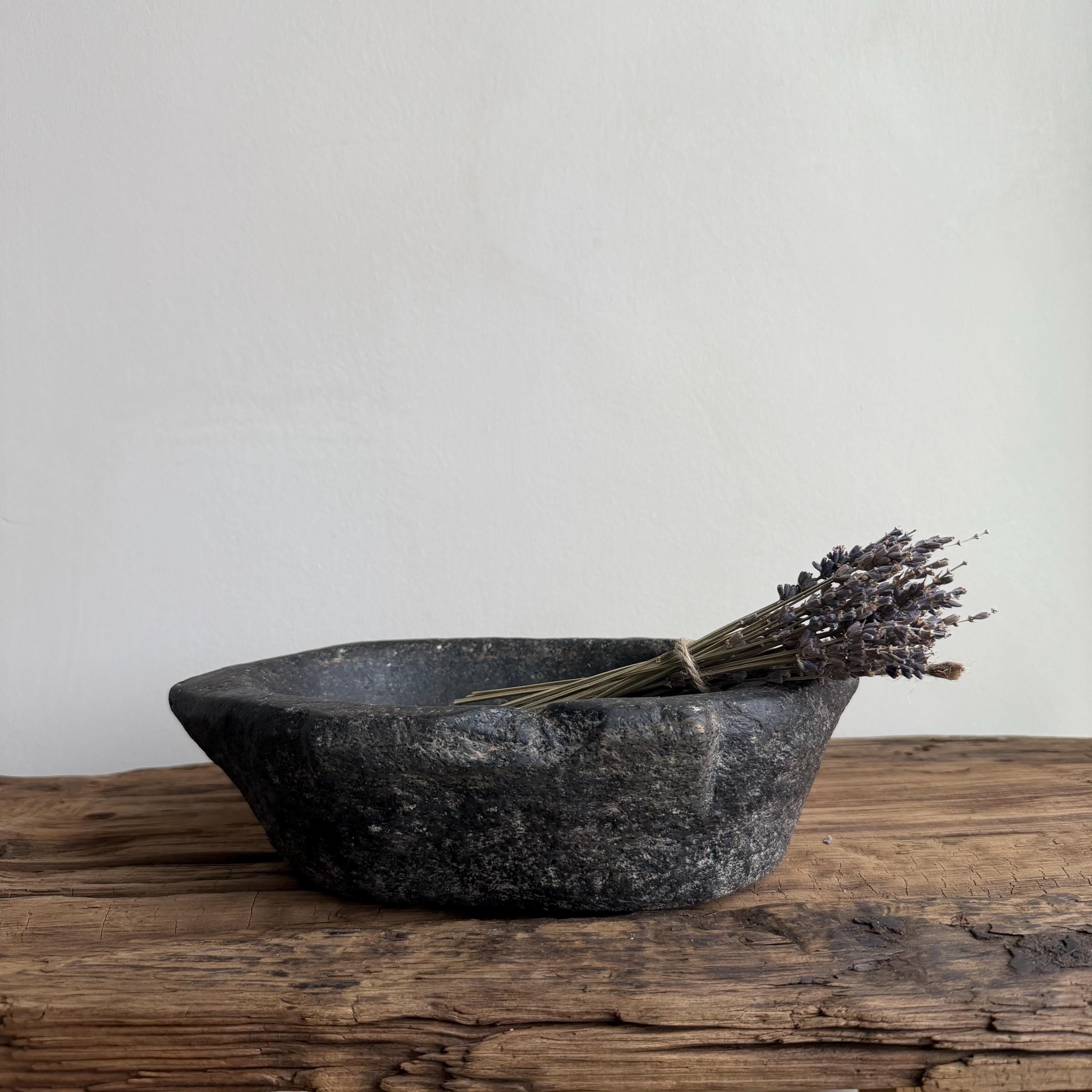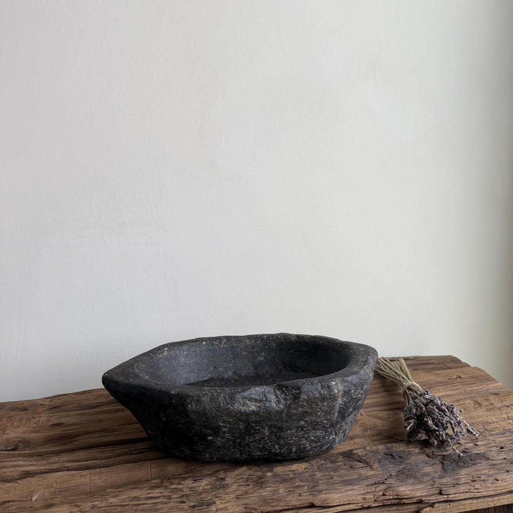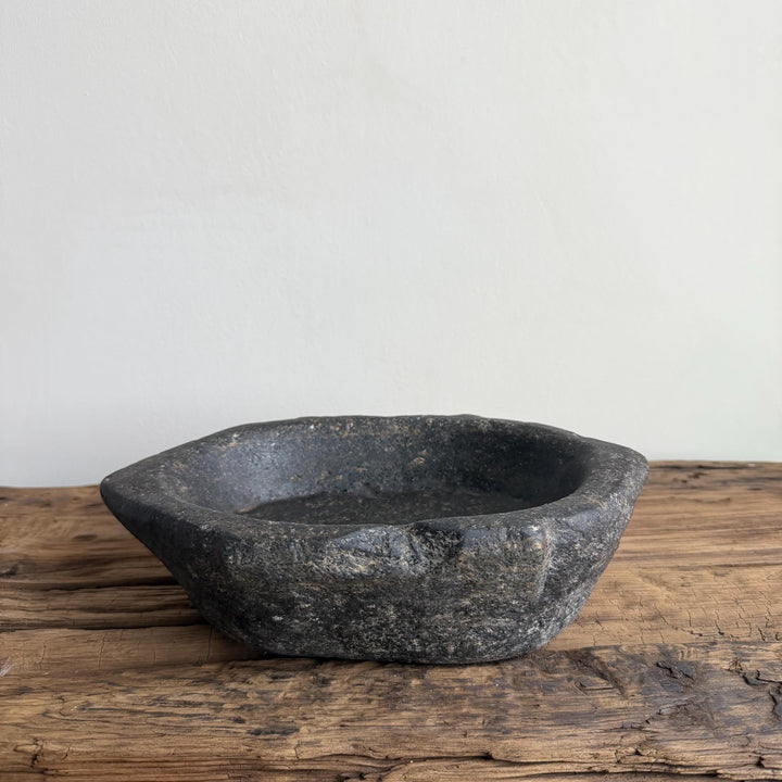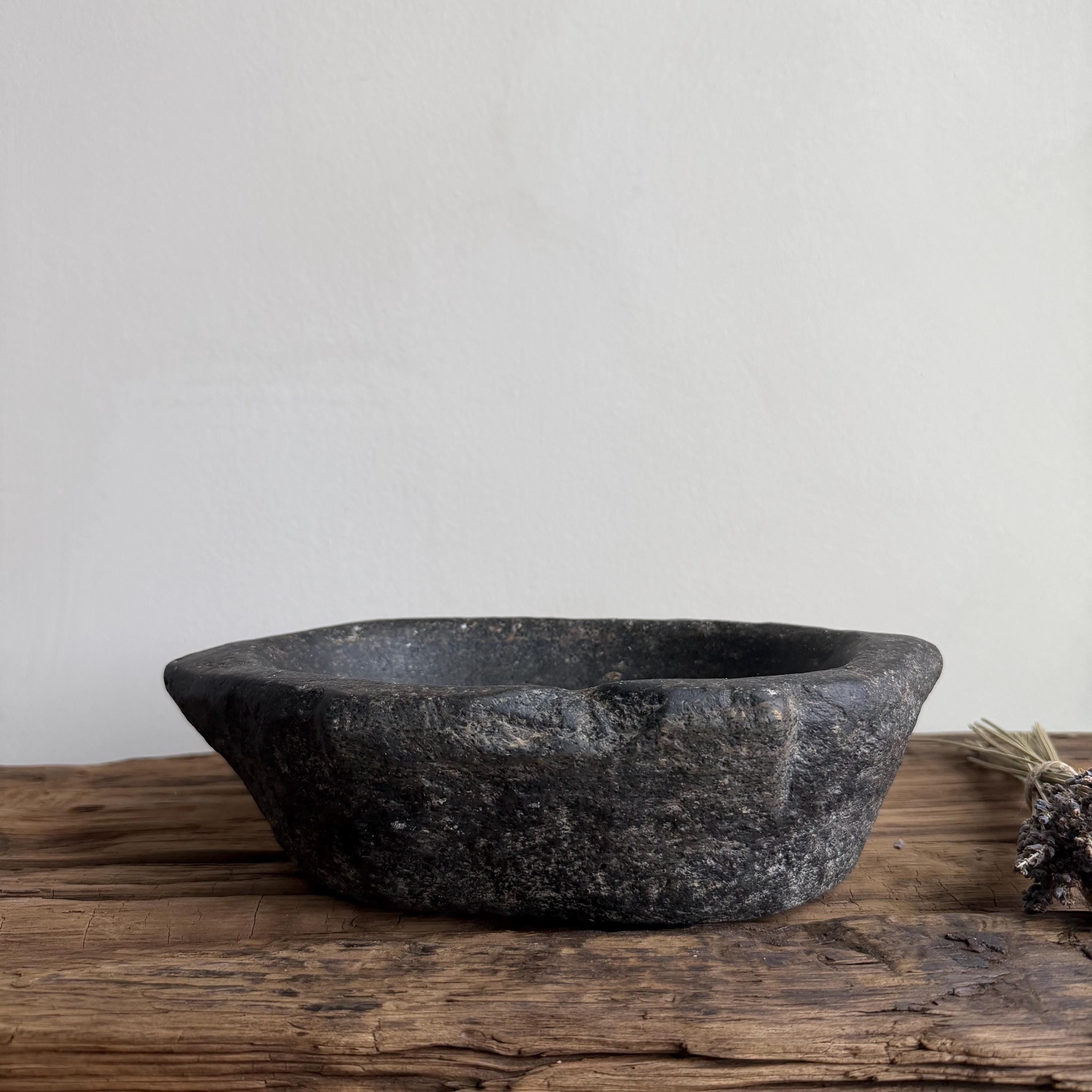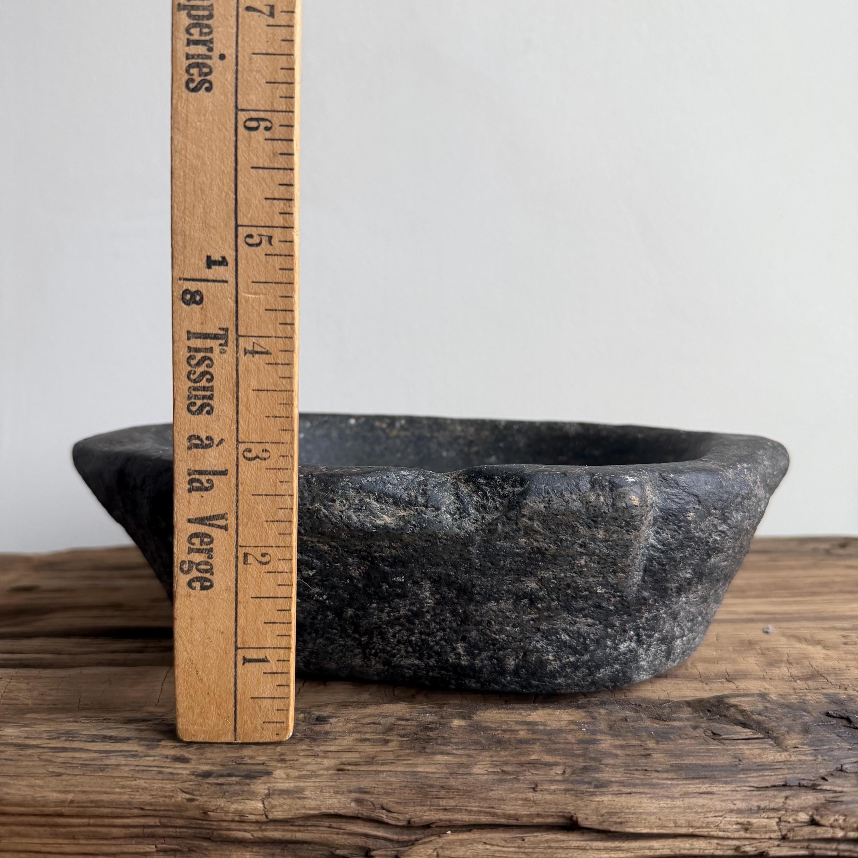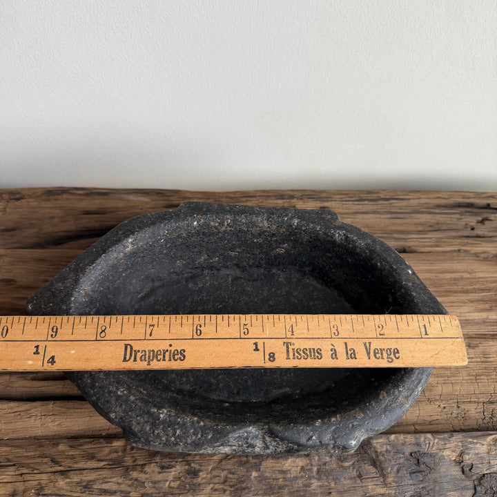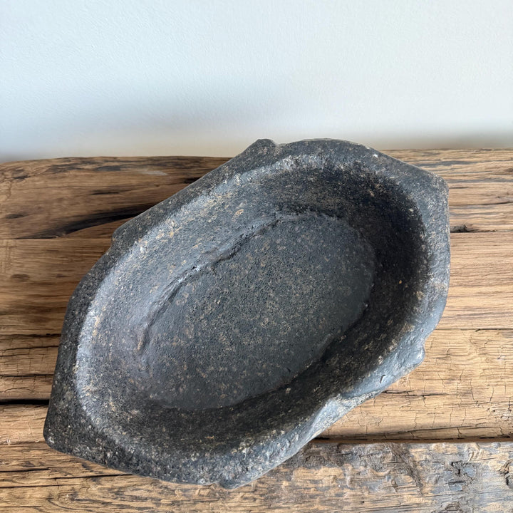 Vintage Marble Kharal 9.5" Stone Tray, Antique Limestone Carved Oval Tray, Primitive Stone Centerpiece