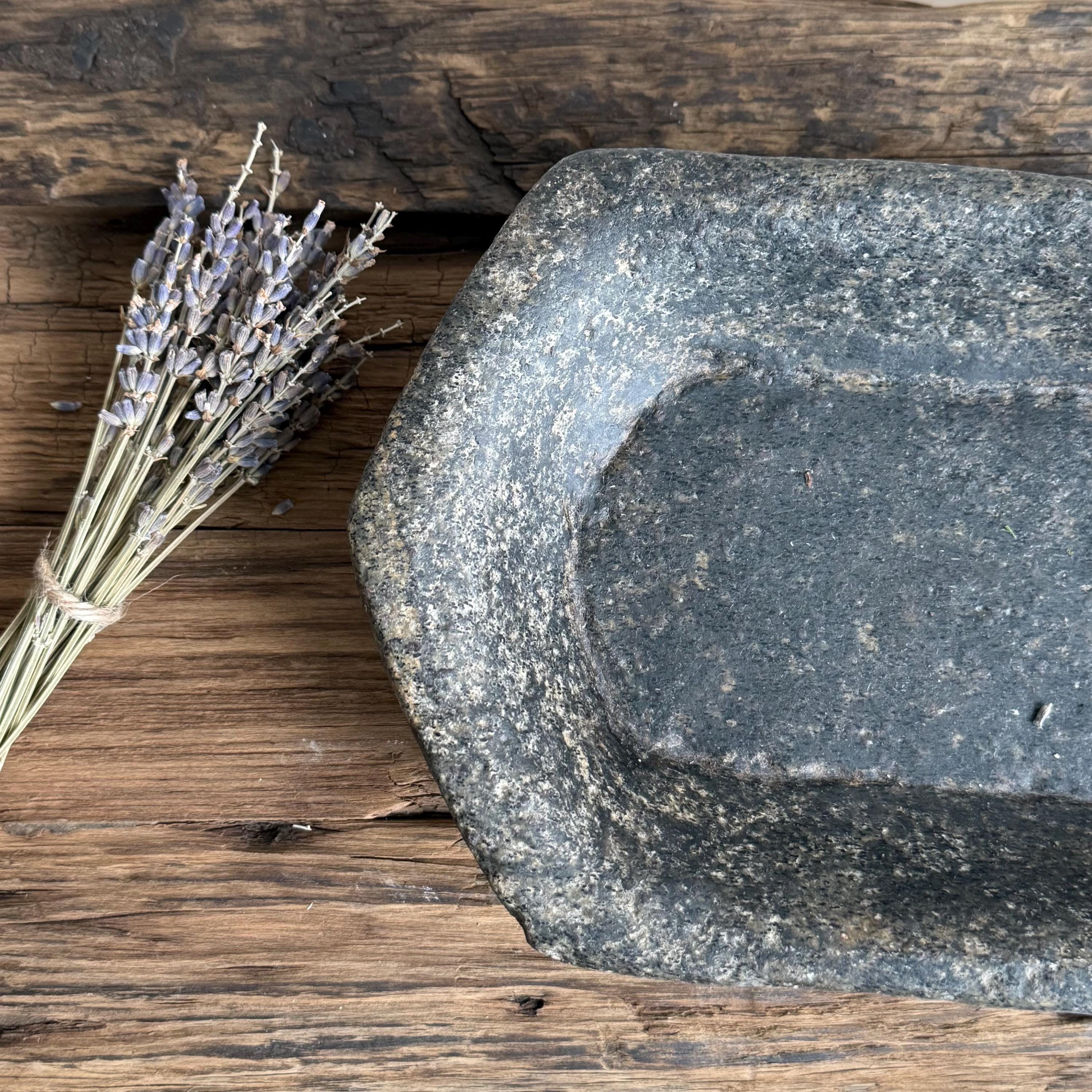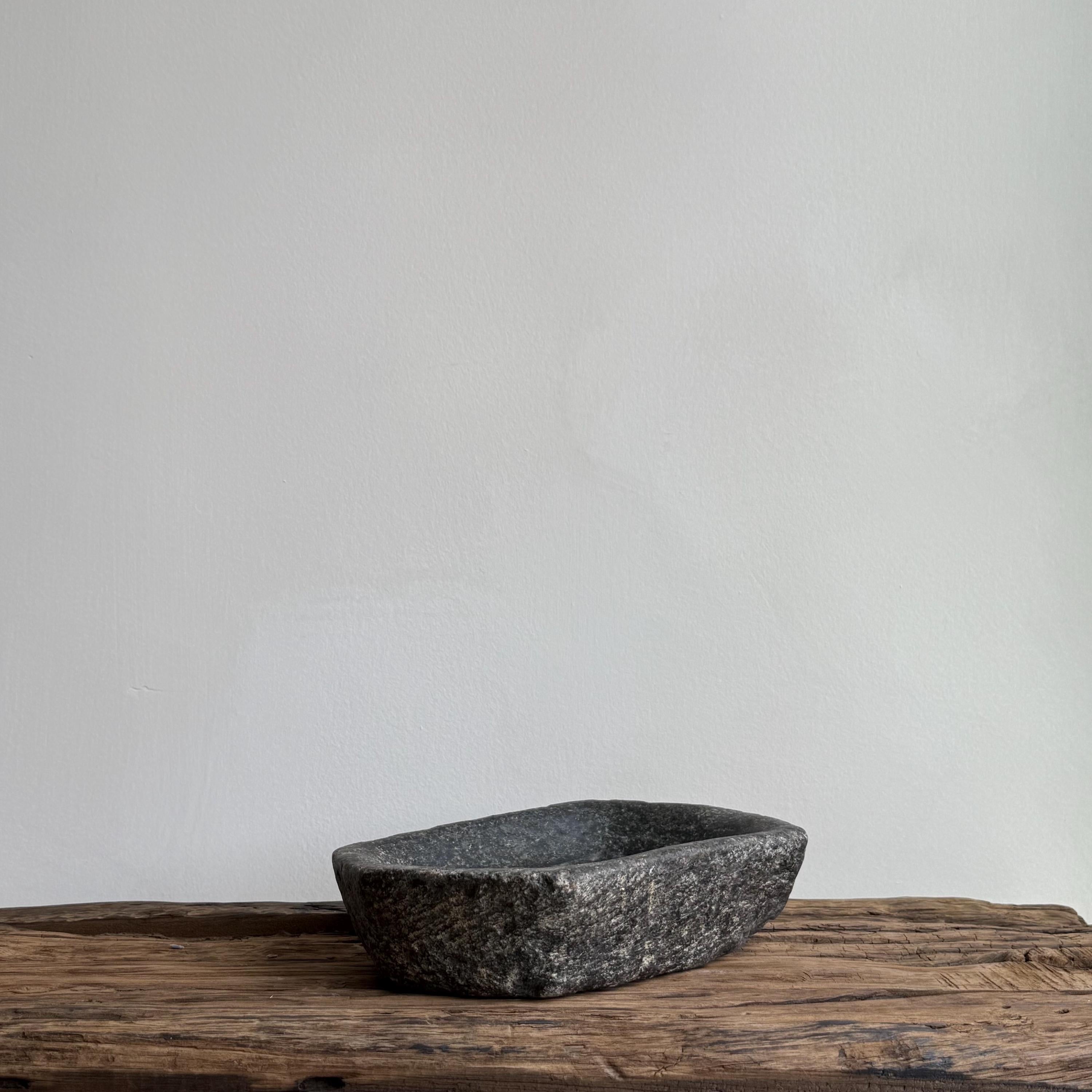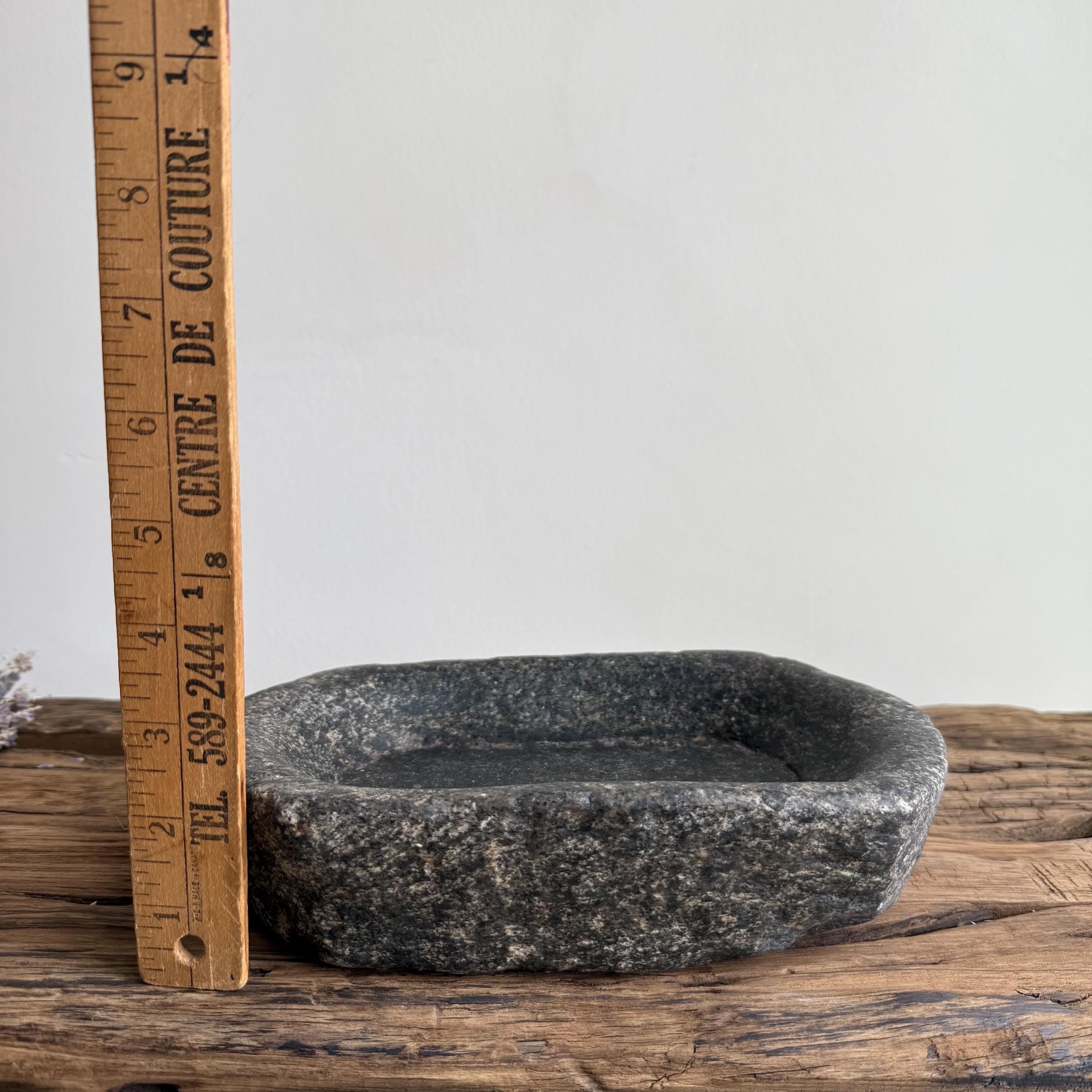 Vintage Marble Kharal 9" Stone Tray, Antique Limestone Carved Oval Tray, Primitive Stone Centerpiece