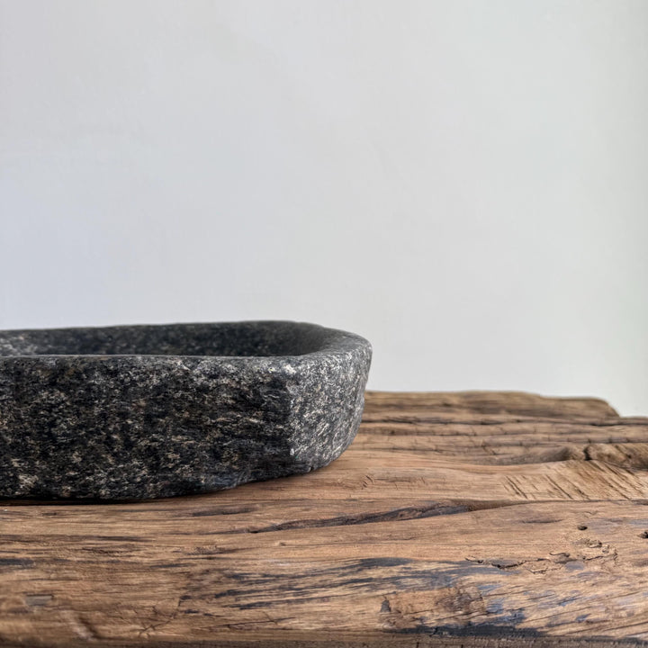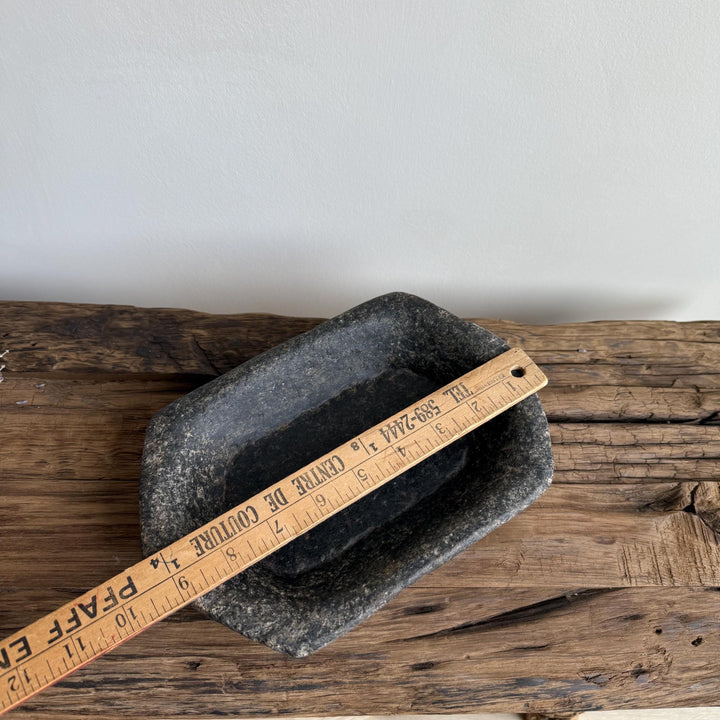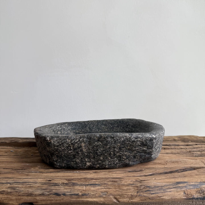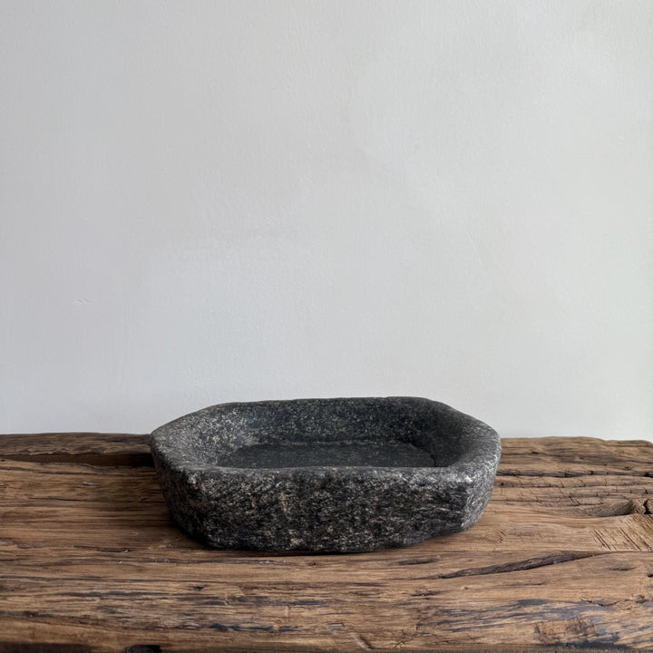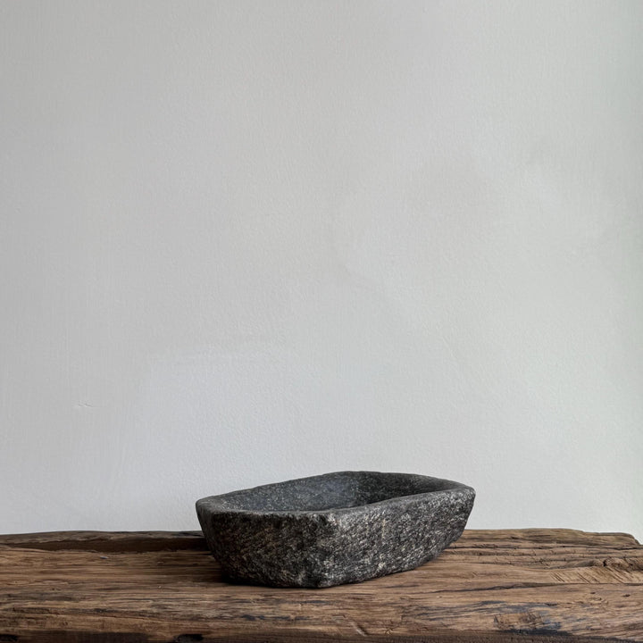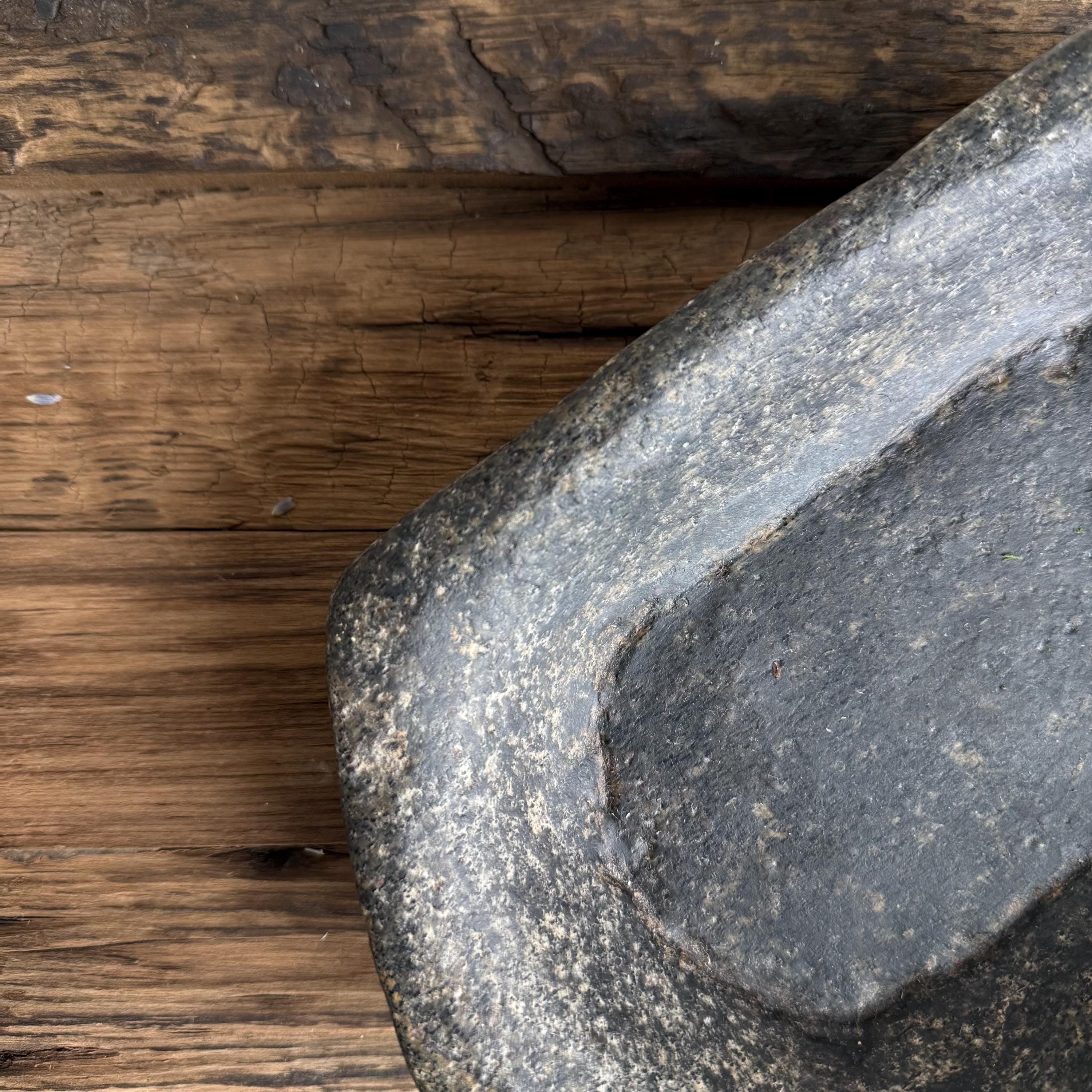 Vintage Marble Kharal 9" Stone Tray, Antique Limestone Carved Oval Tray, Primitive Stone Centerpiece
