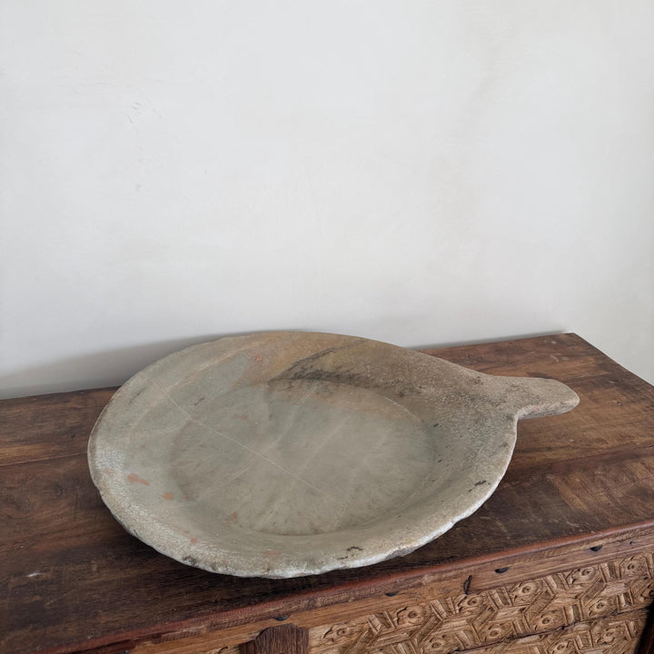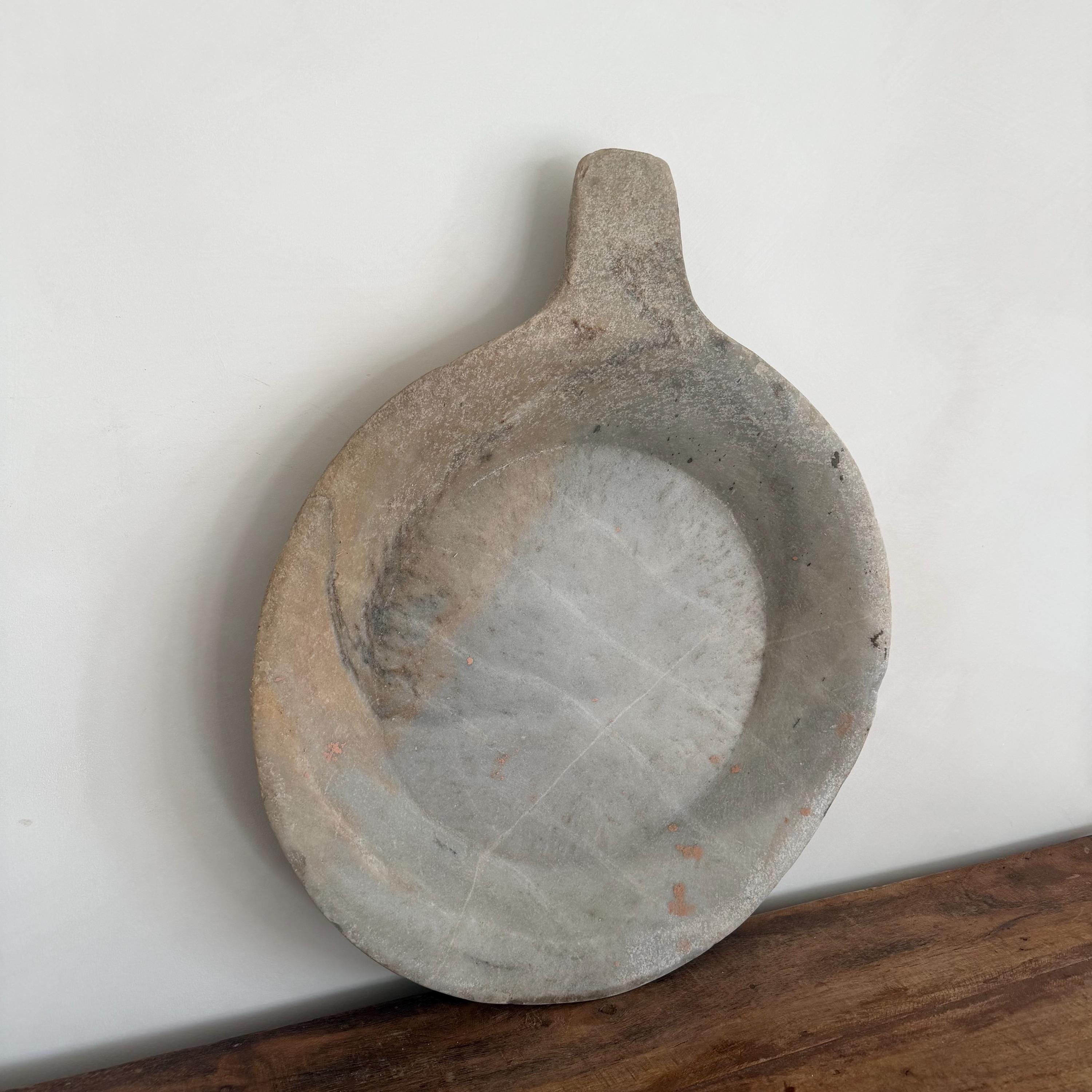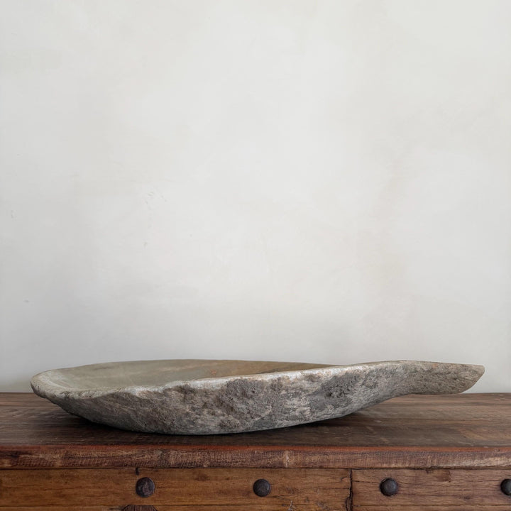 Handcrafted from natural marble limestone, this marble tray boasts exquisite patina, rich veining, and unique textural variations. With time, the surface has worn smoothly with age, revealing the subtle imperfections and natural character that only history can craft.
