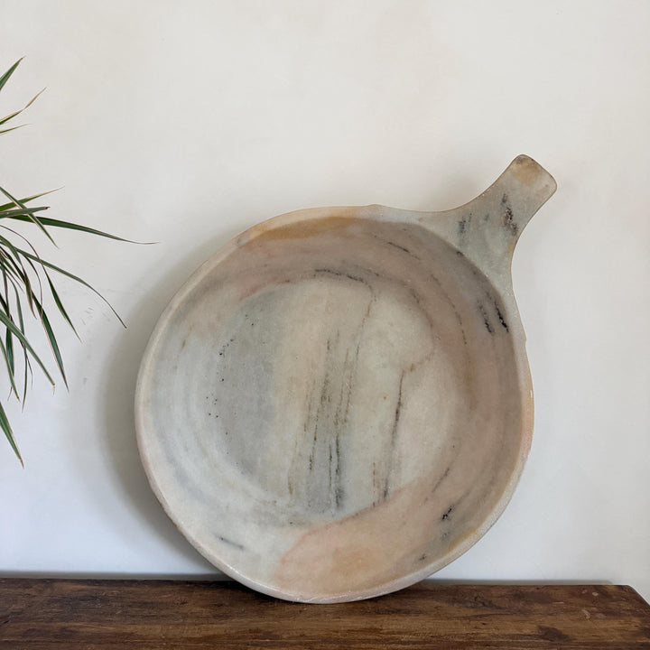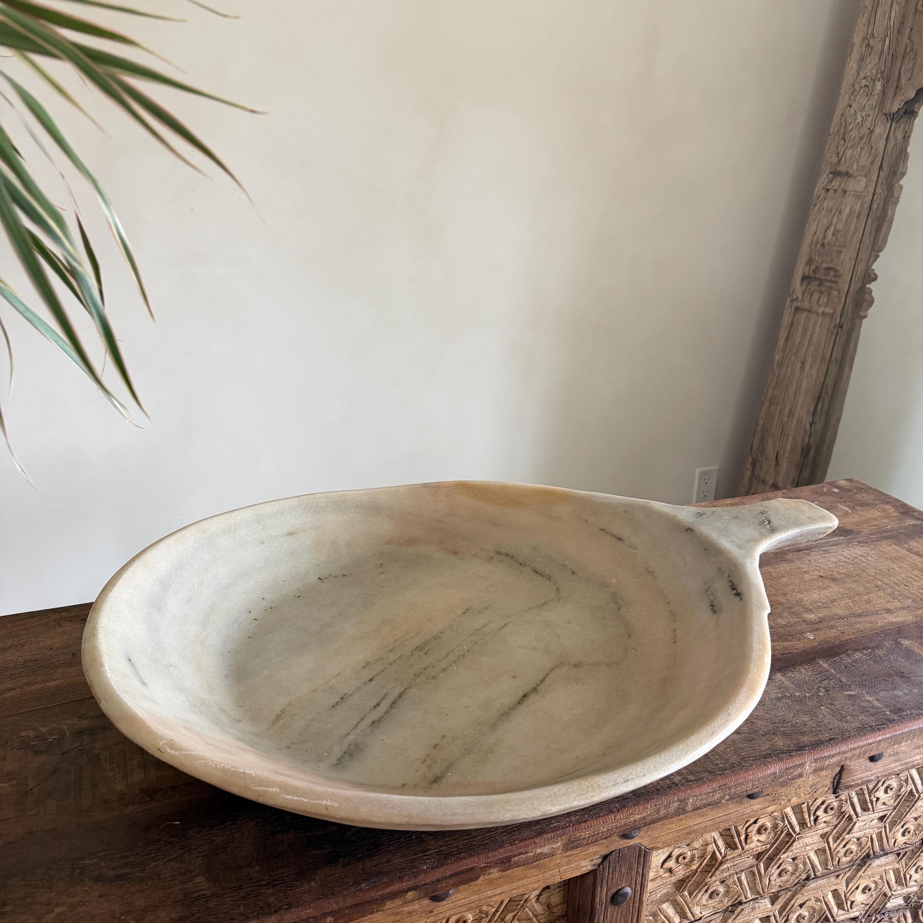 Marble parats were once used in traditional Indian kitchens. Today, they make a stunning decor statement, whether placed on a kitchen countertop, dining table, or entryway console.