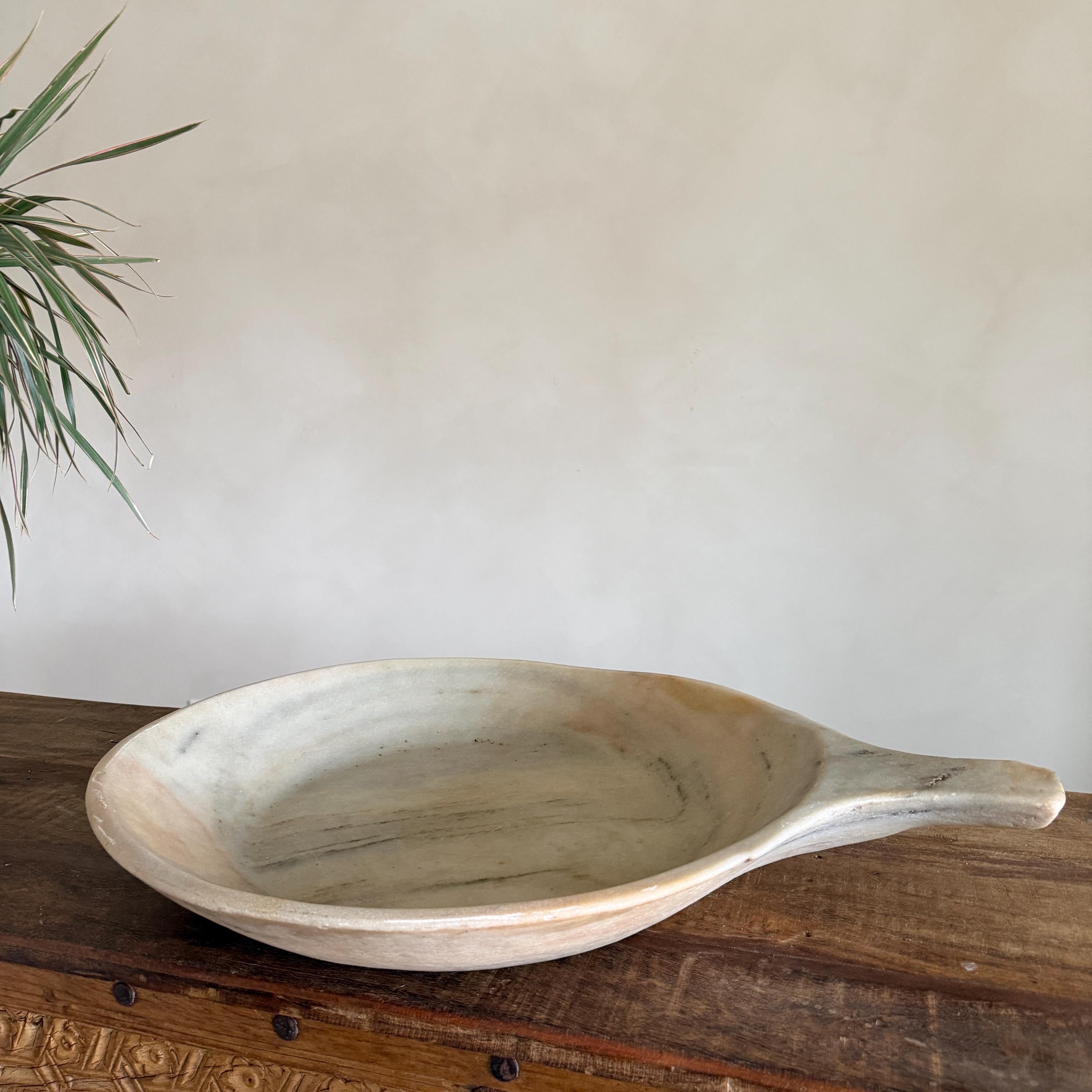 Handcrafted from natural marble limestone, this marble tray boasts exquisite patina, rich veining, and unique textural variations. With time, the surface has worn smoothly with age, revealing the subtle imperfections and natural character that only history can craft.