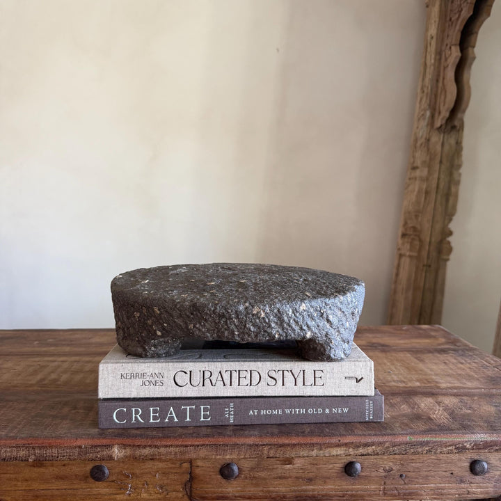Once used in traditional Indian kitchens for rolling flatbread, this stone riser now serve as a timeless accent for styling and décor.