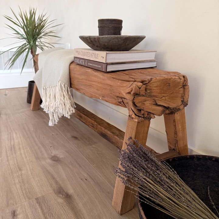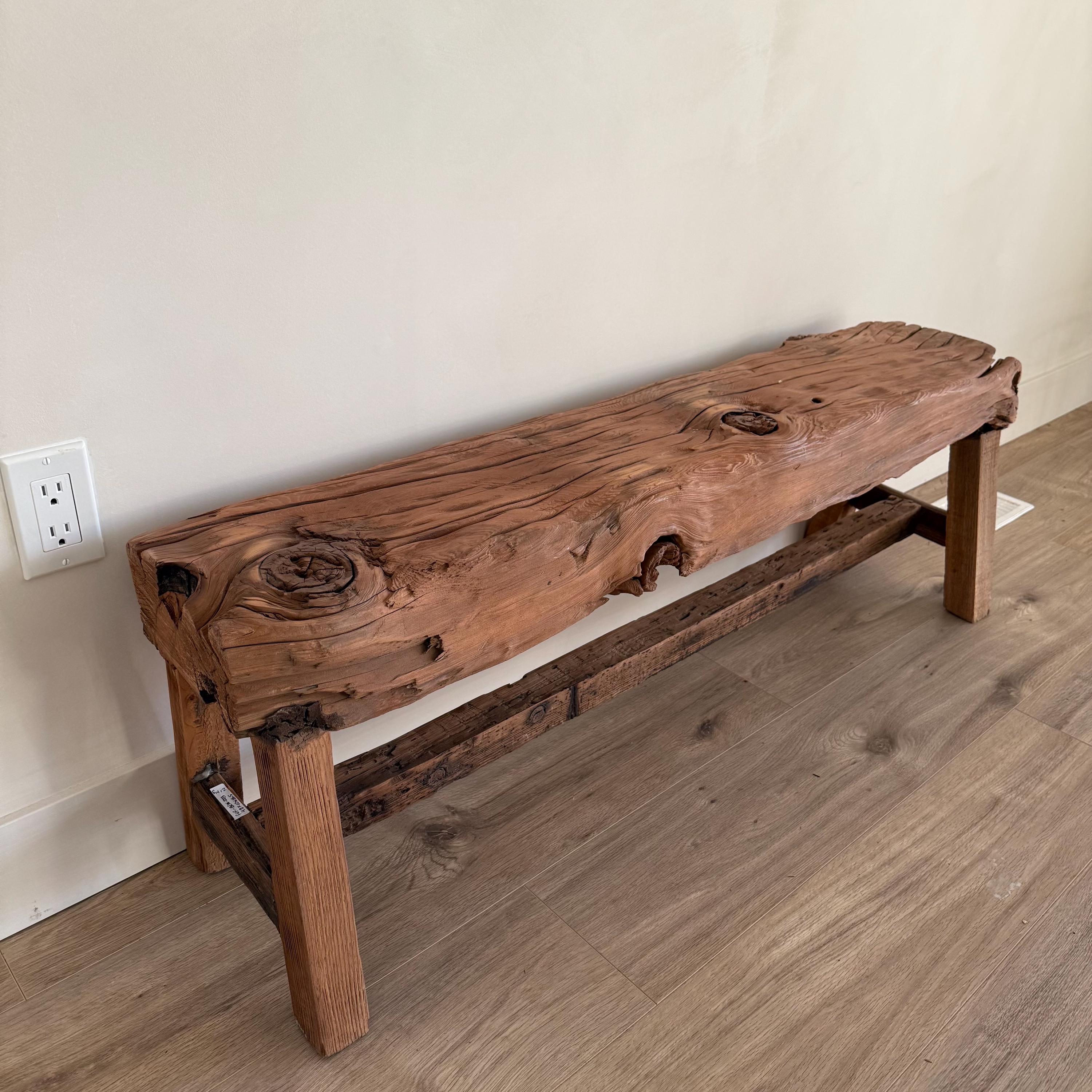 Whether you need a barnwood bench, an entryway bench, a console table, or an end-of-bed bench, this piece delivers both style and purpose. Its chunky, thick design, perfect as a barn beam bench offers a rustic yet refined look that fits farmhouse, vintage, and modern décor alike.