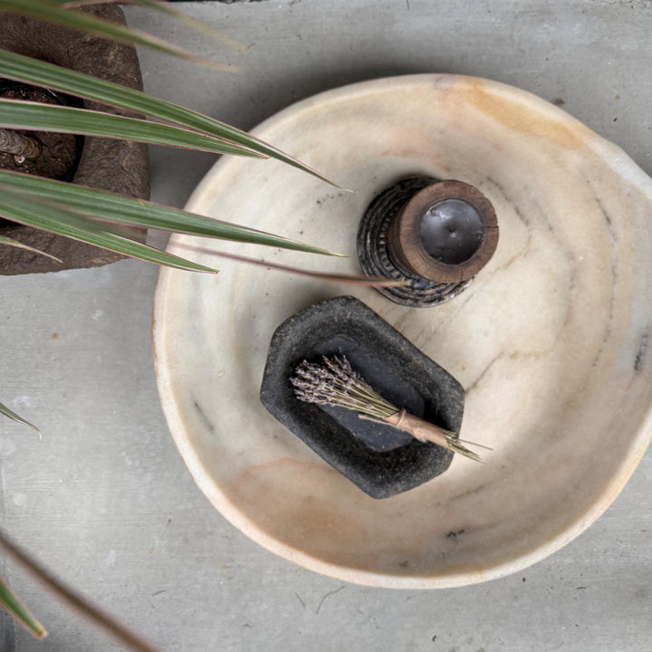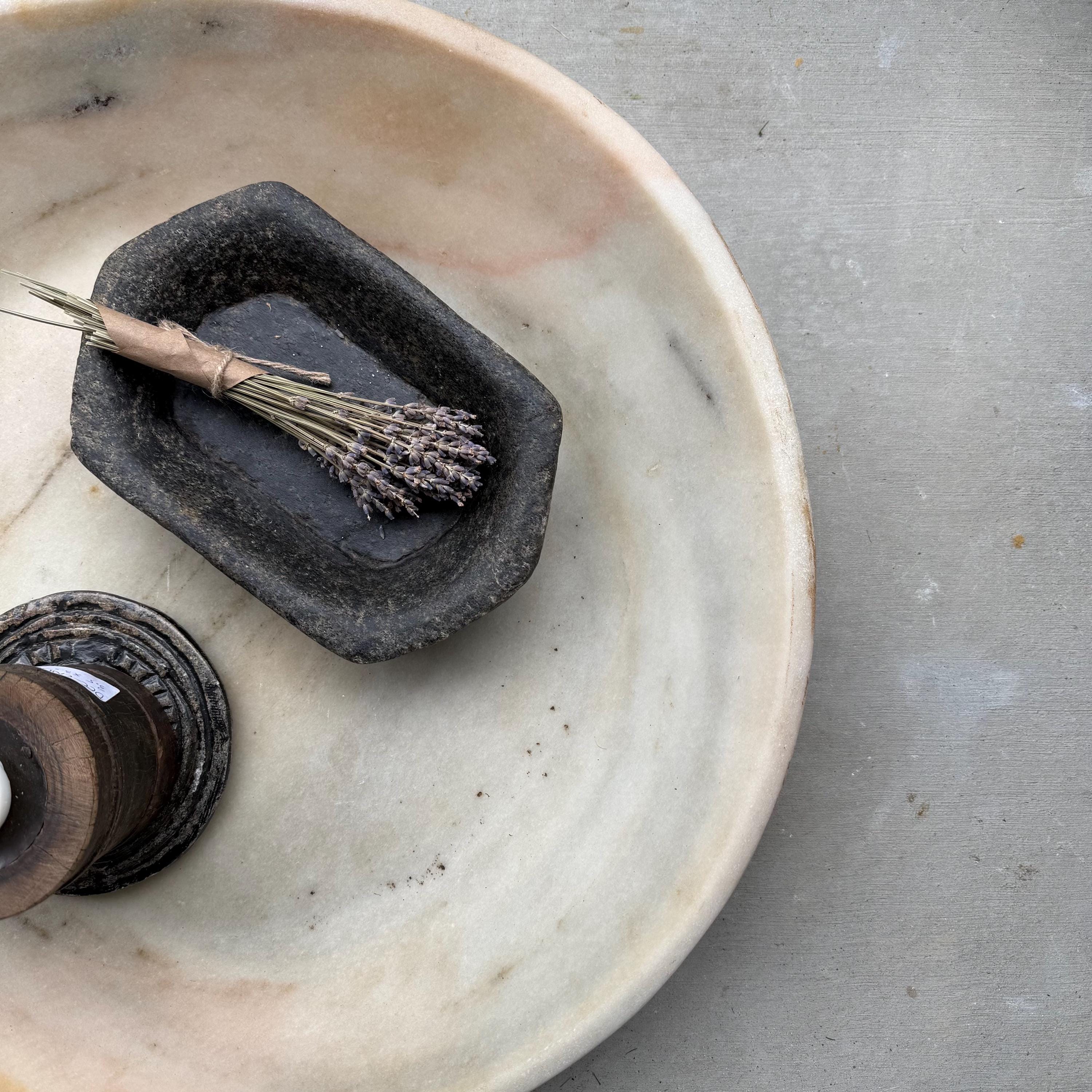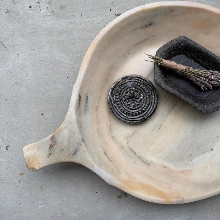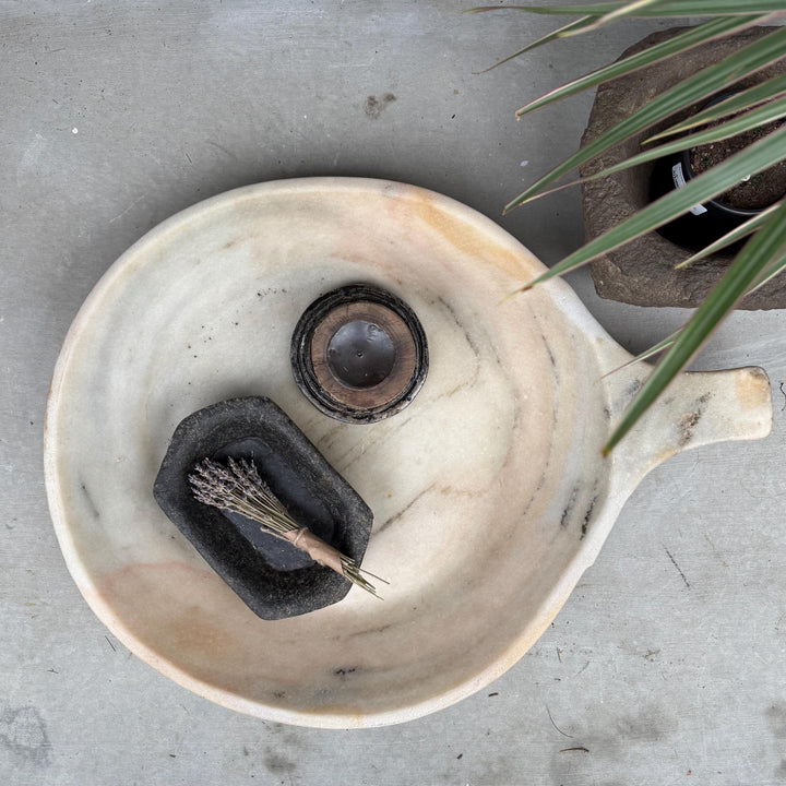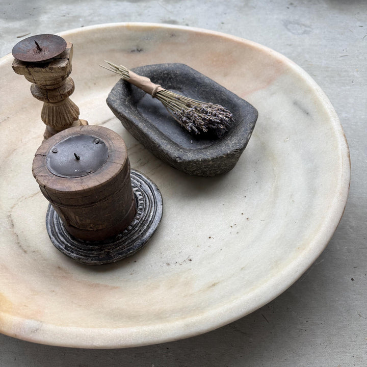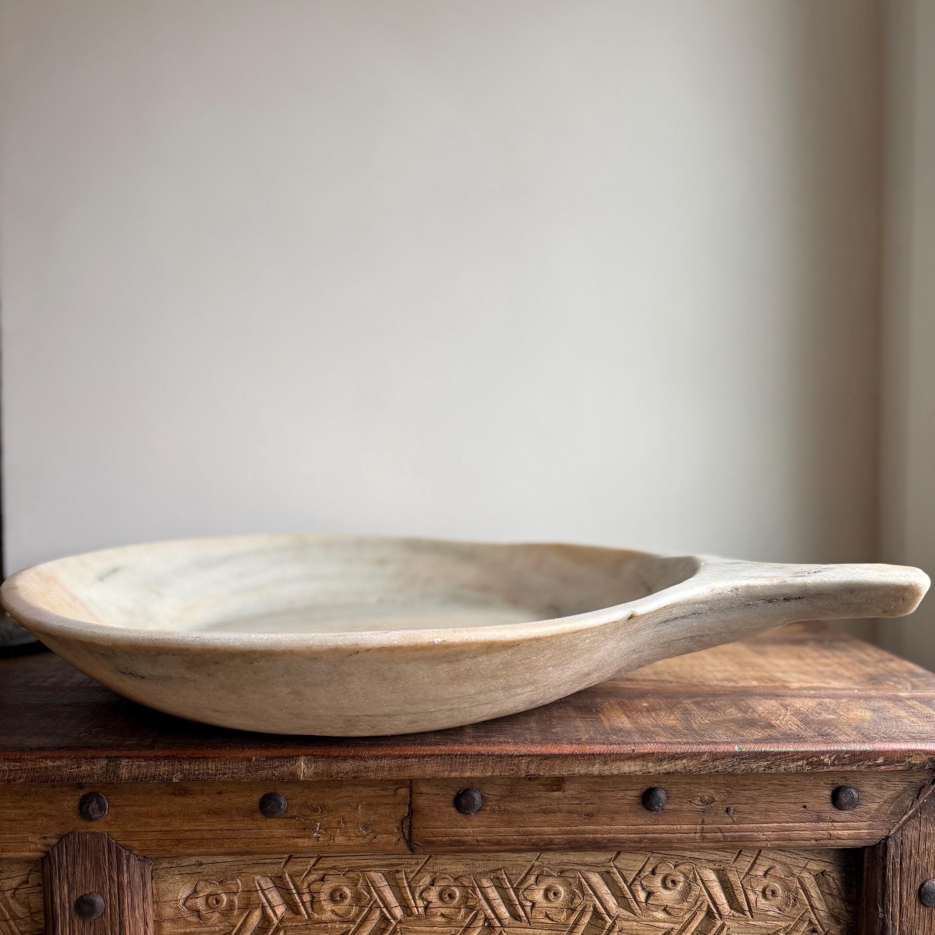 Antique Hand Carved Marble Stone Parat Tray 27" (with handle)