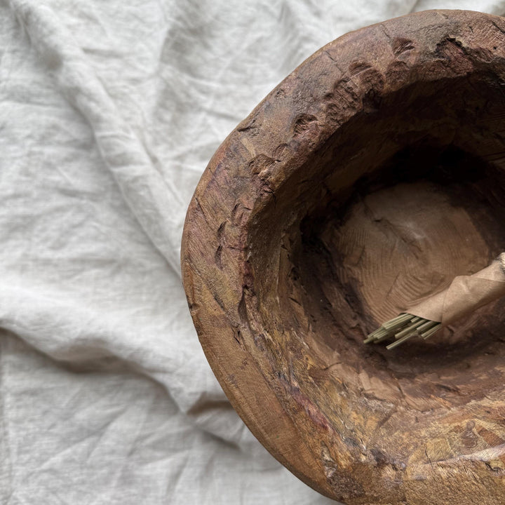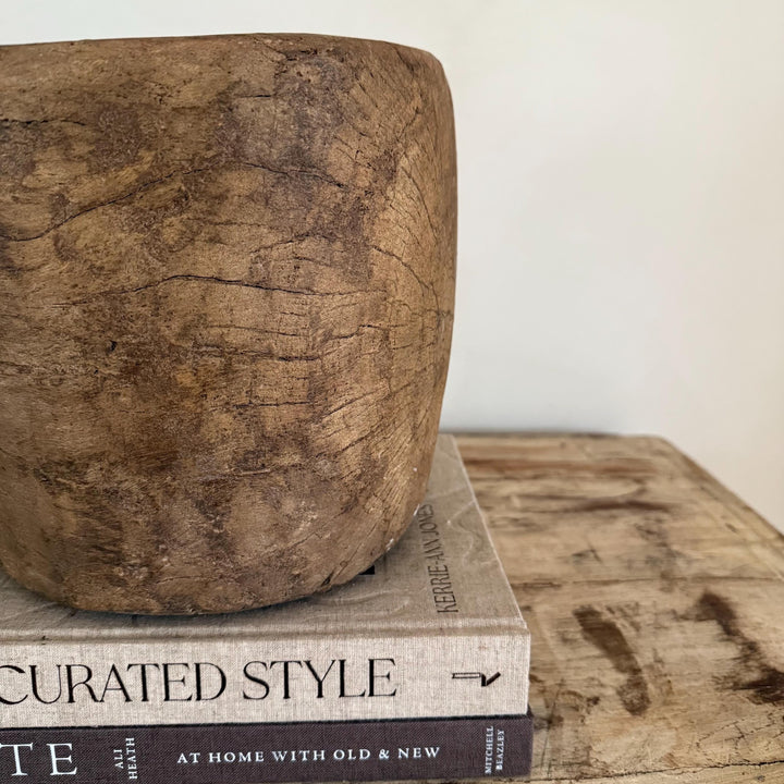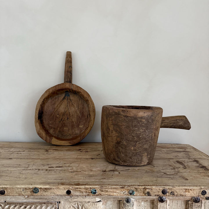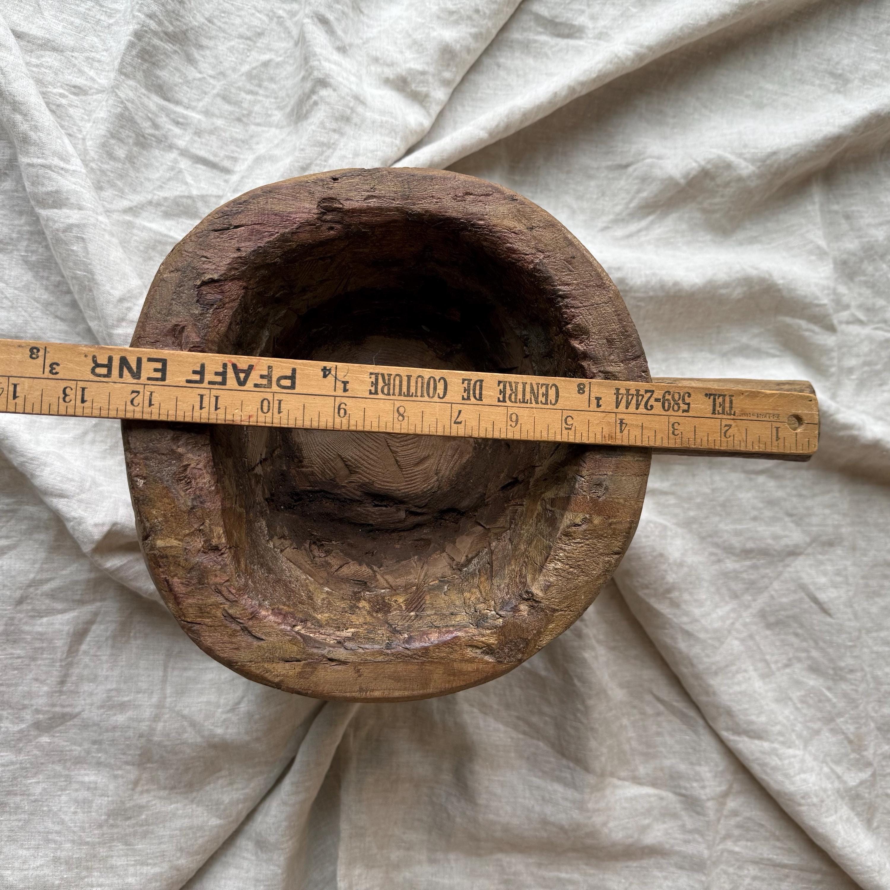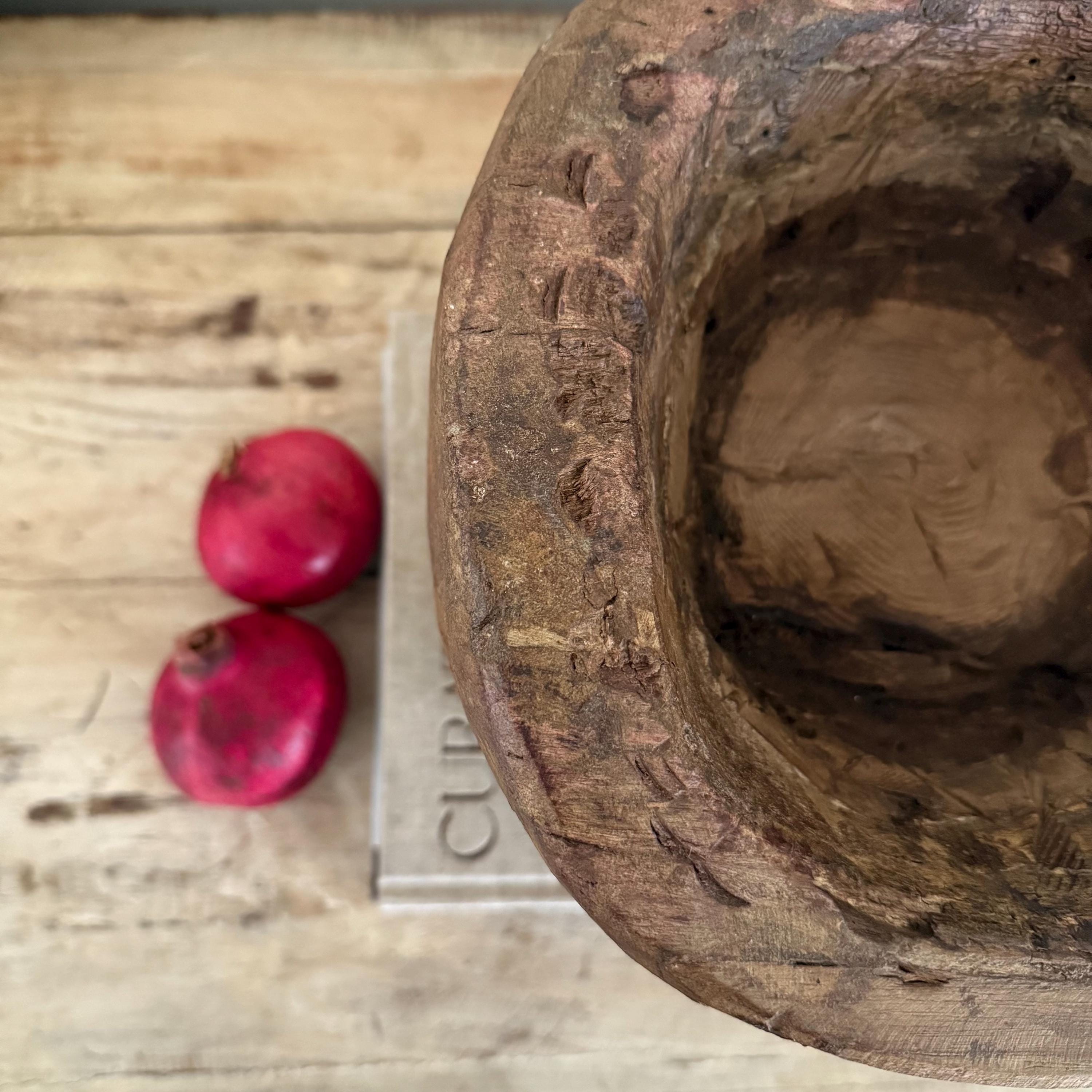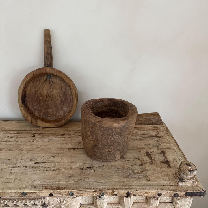 Antique Hand Carved Wooden Mortar | Vintage Rustic Grinder Bowl with Handle 12.5"