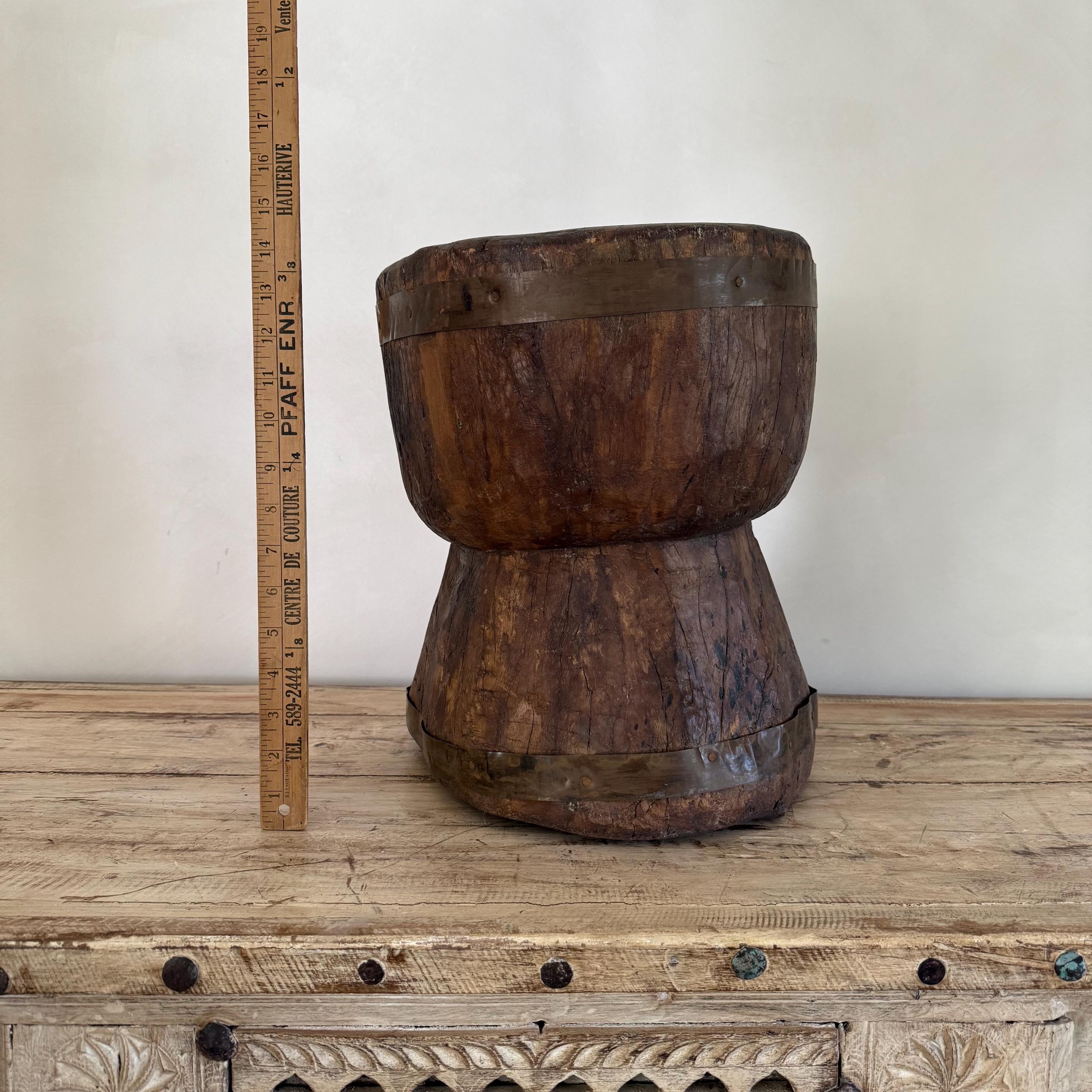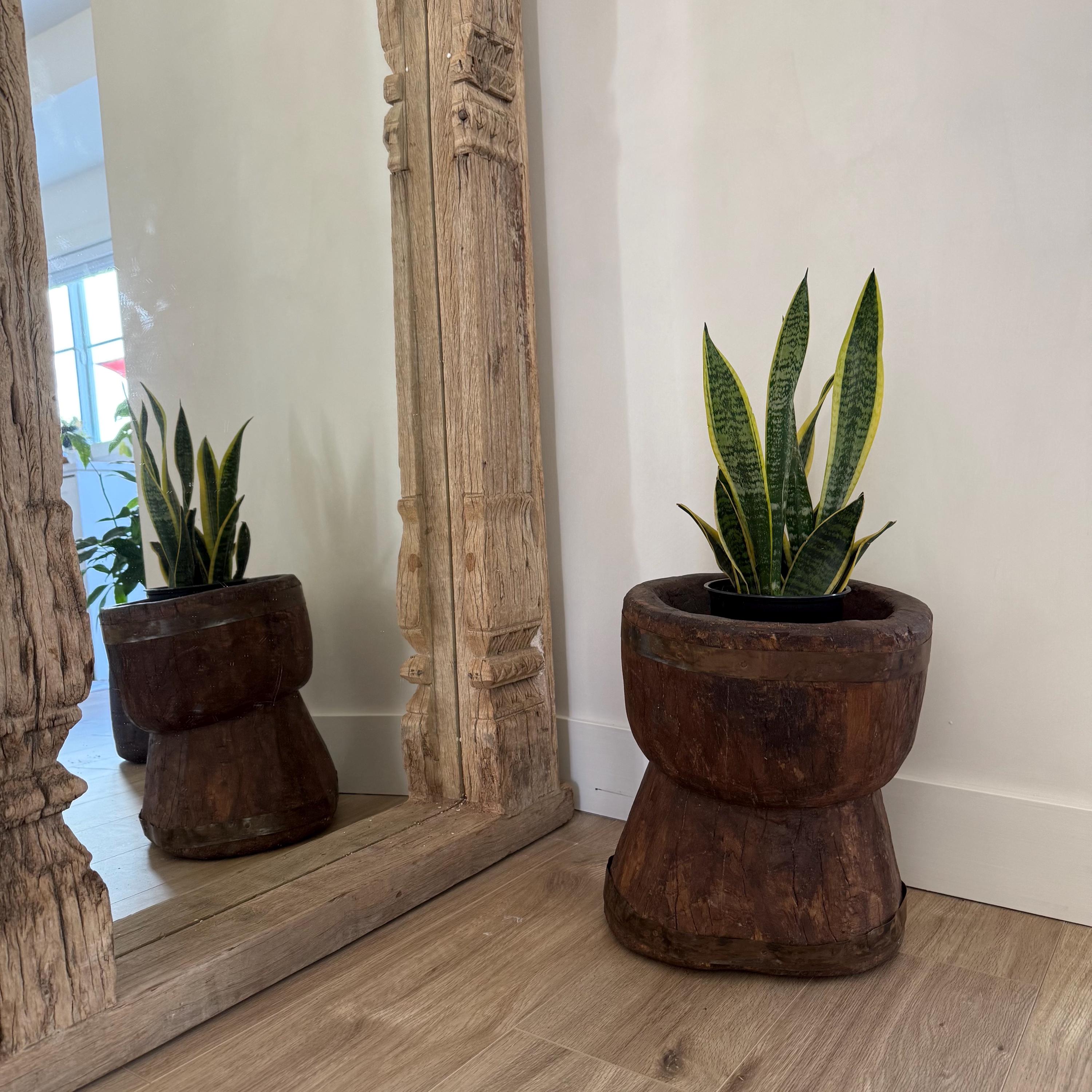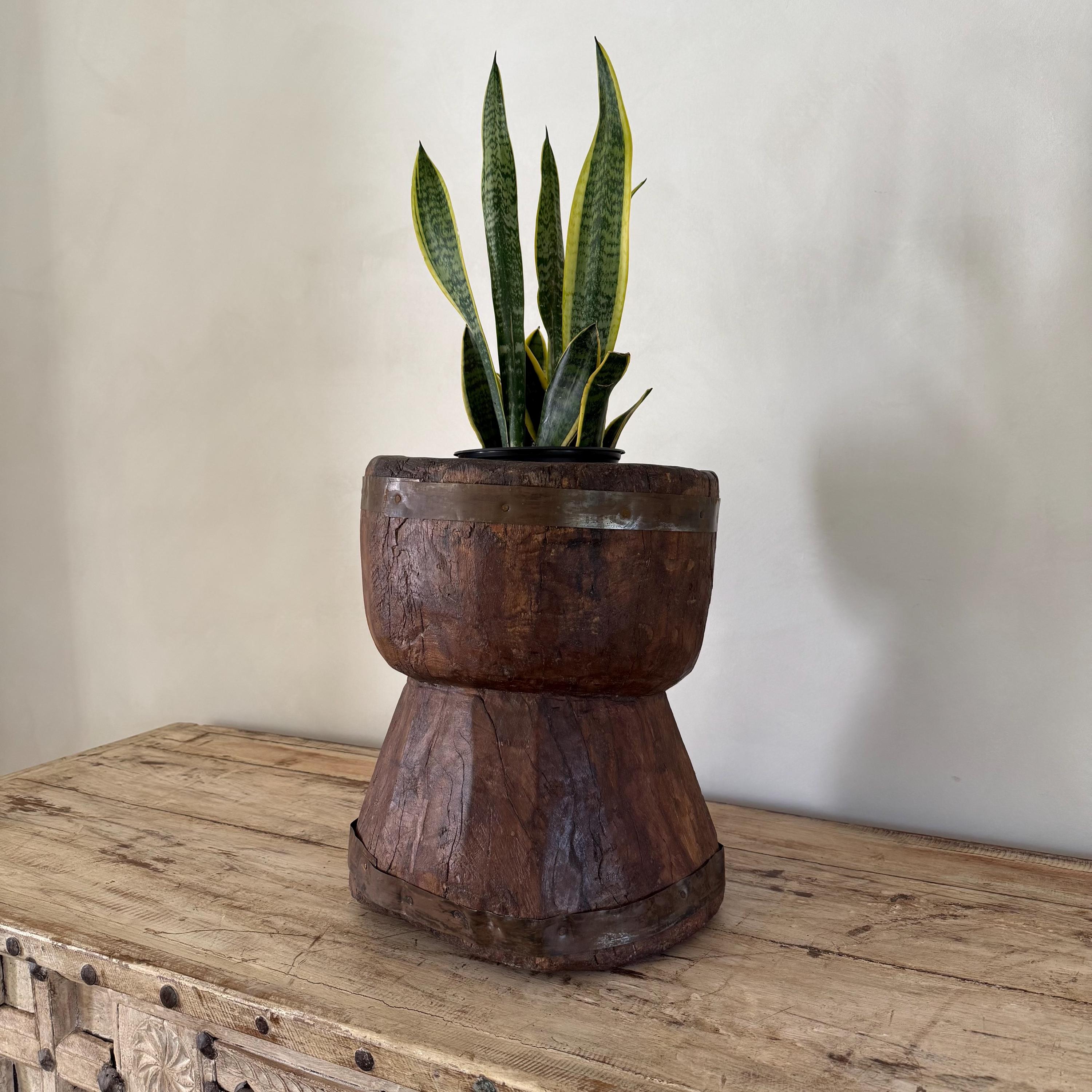 Antique Primitive Wooden Planter, Rustic Ukhali Side Table