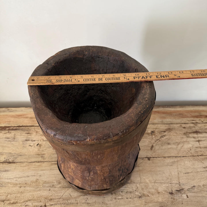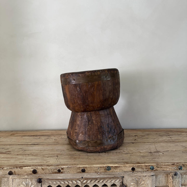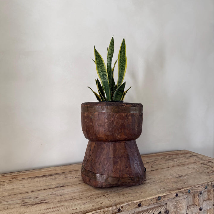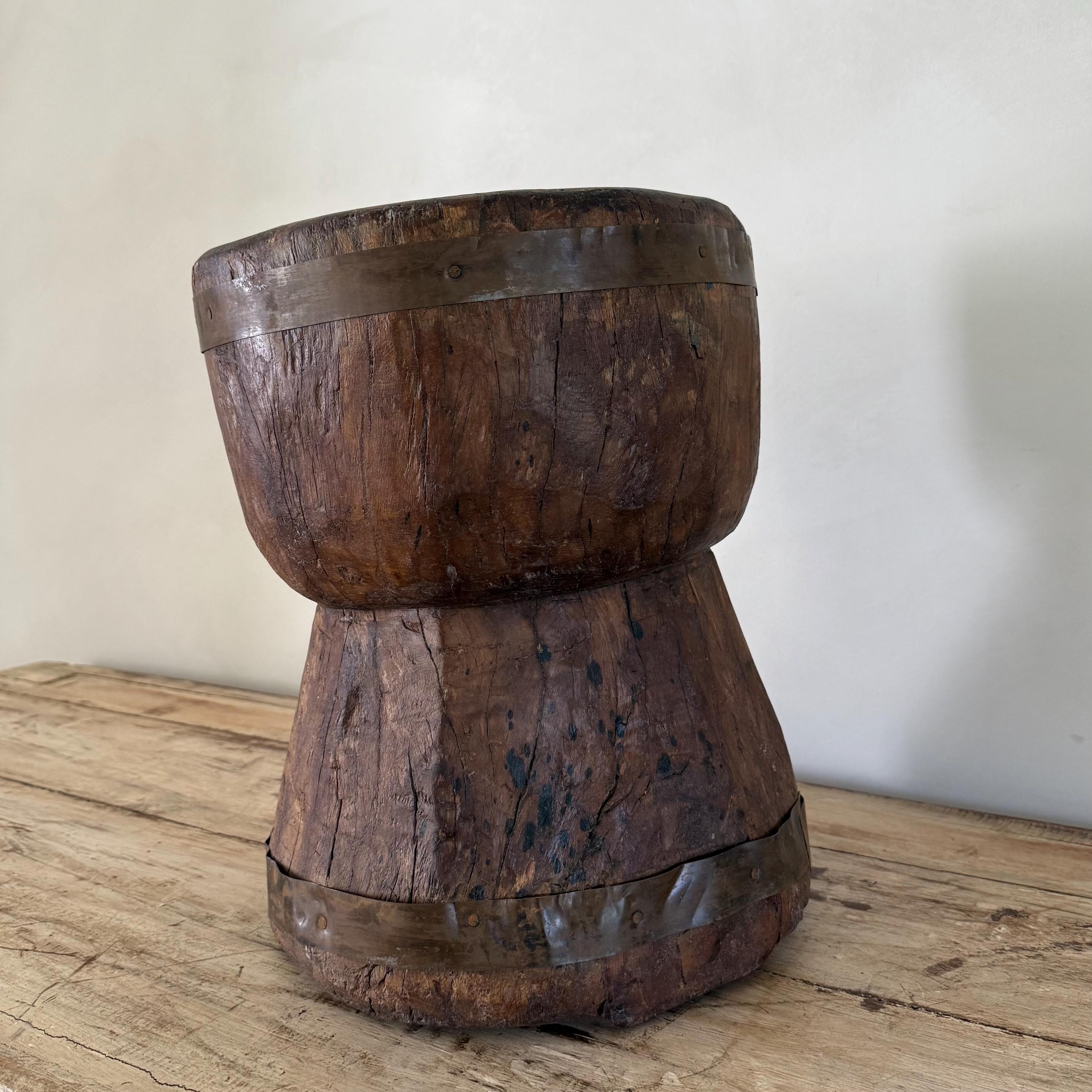 Antique Primitive Wooden Planter, Rustic Ukhali Side Table