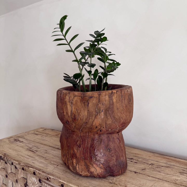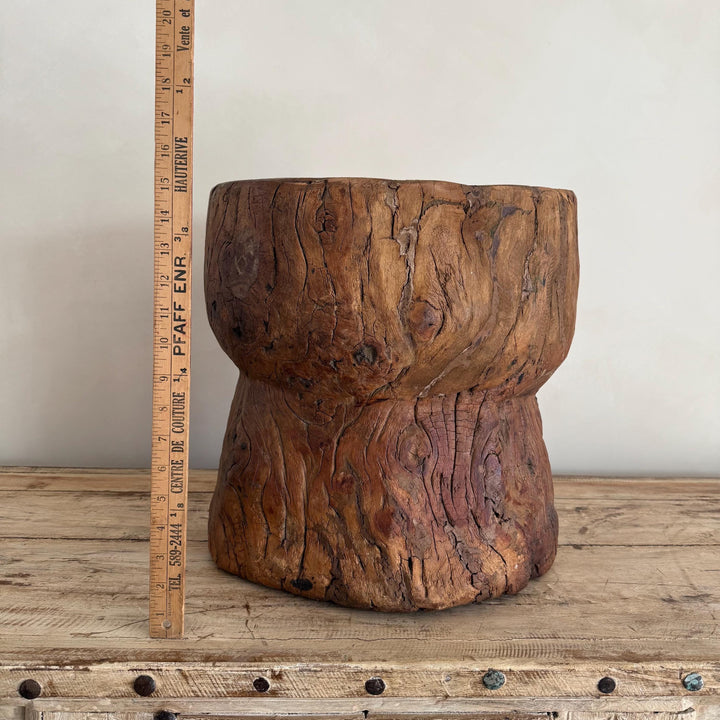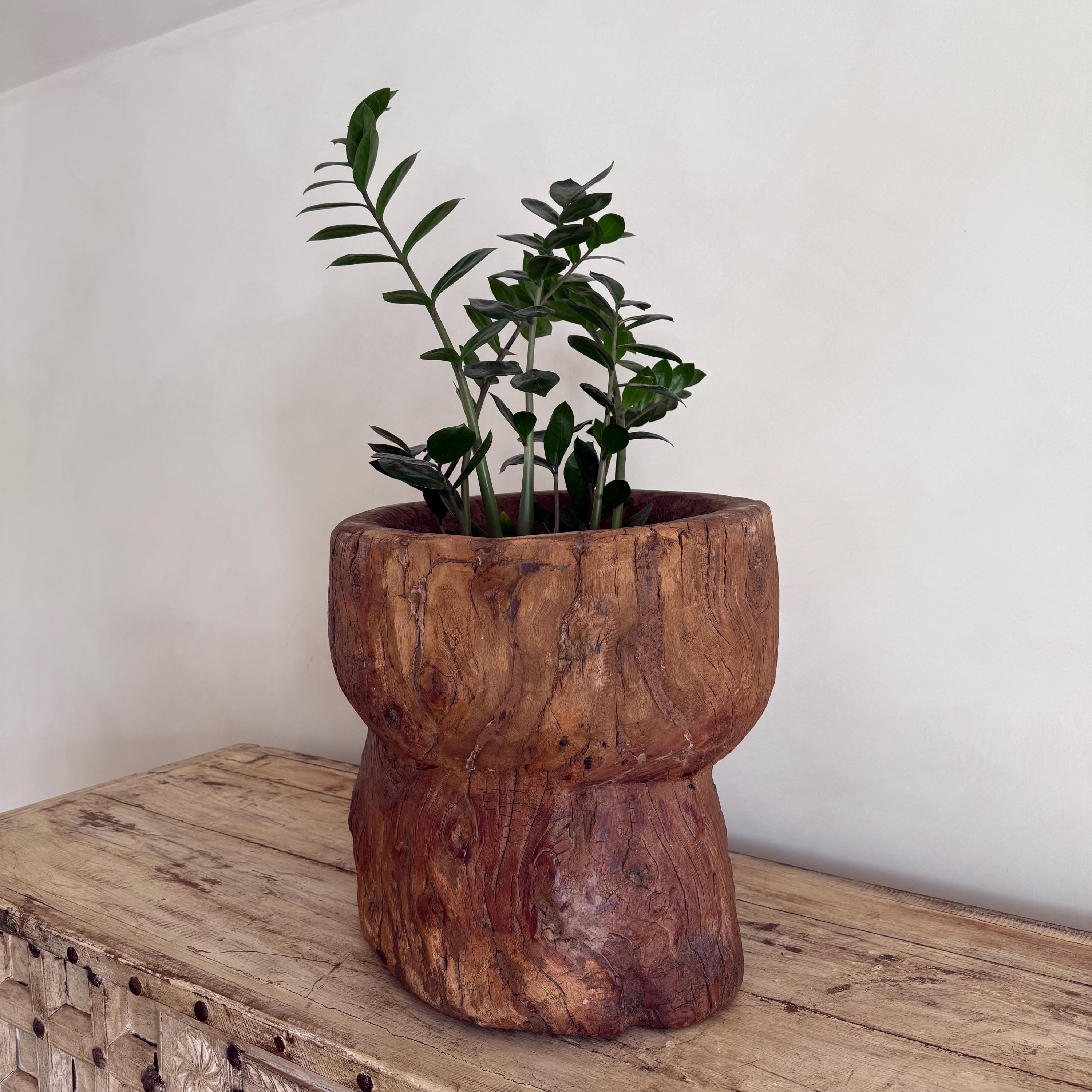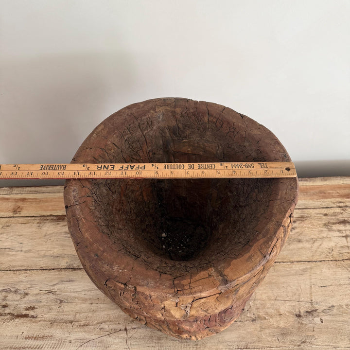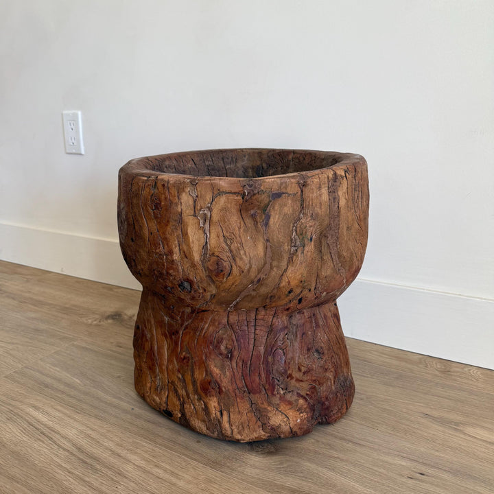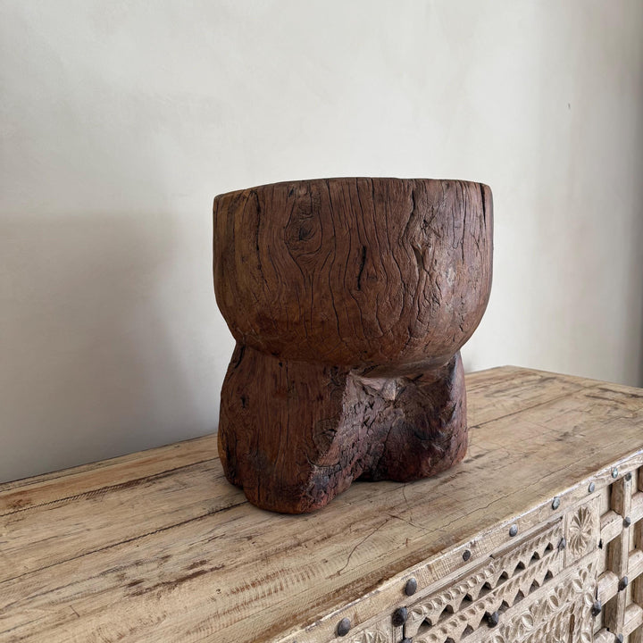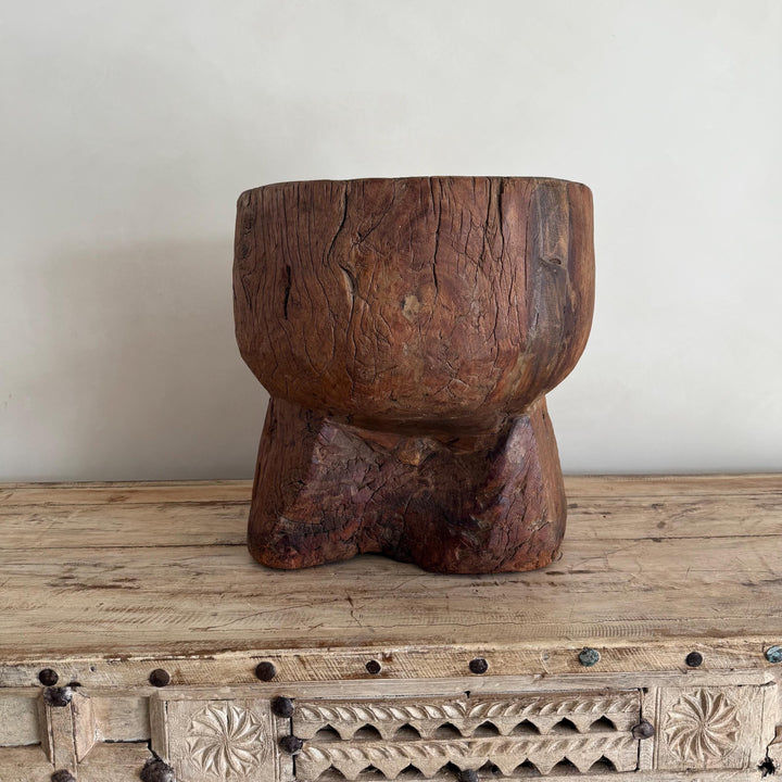 Antique Primitive Wooden Planter, Rustic Ukhali Side Table