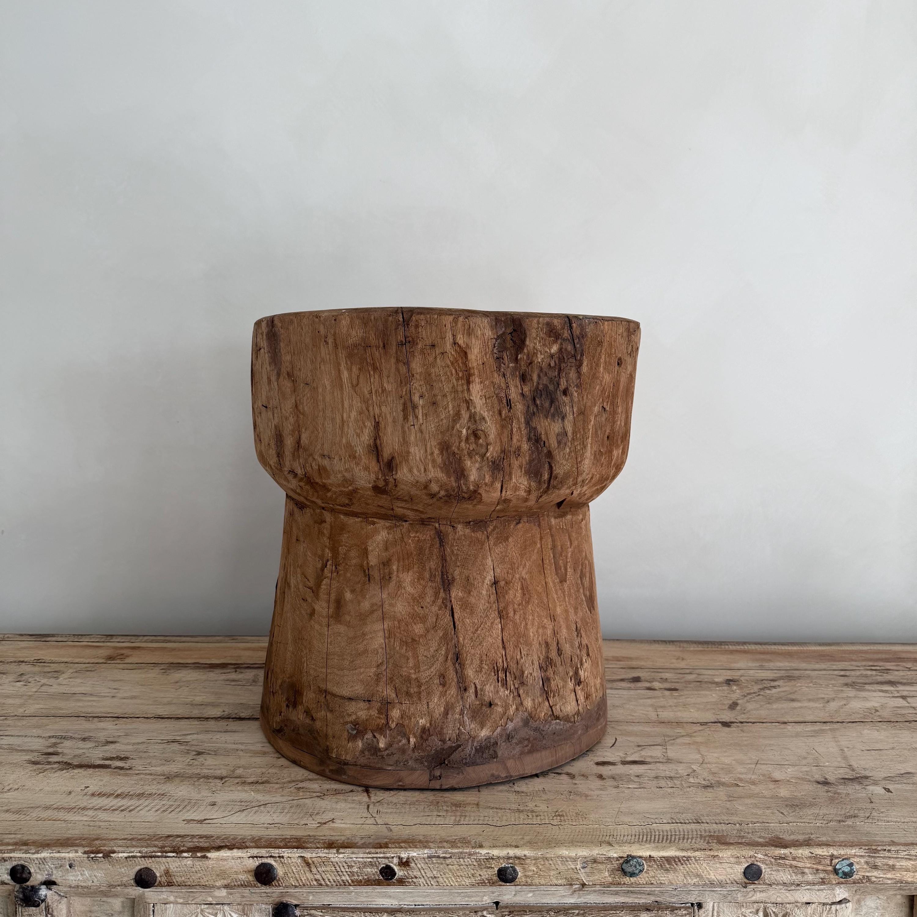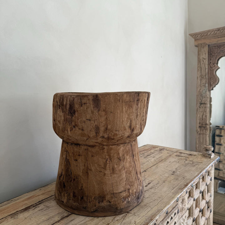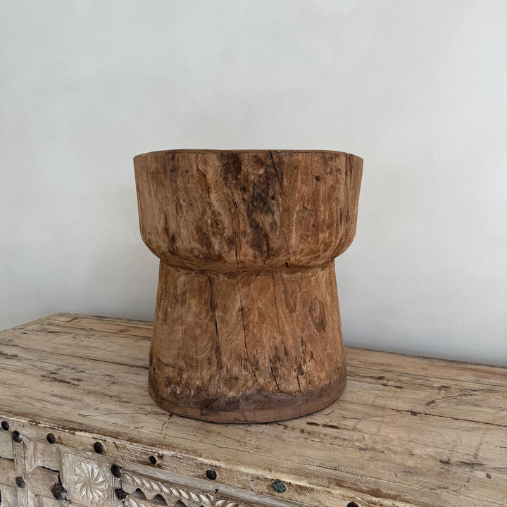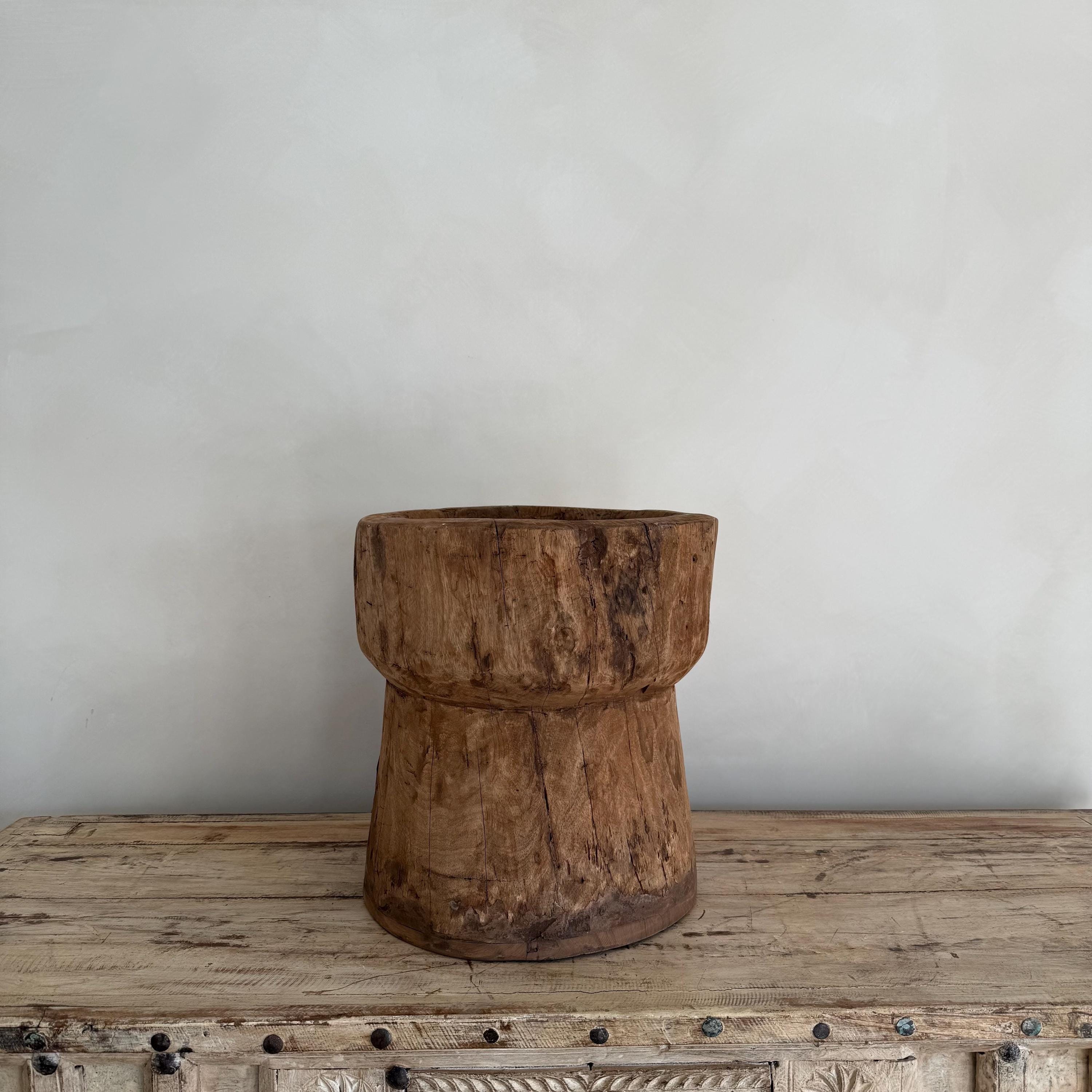 Antique Primitive Wooden Planter, Rustic Ukhali Side Table
