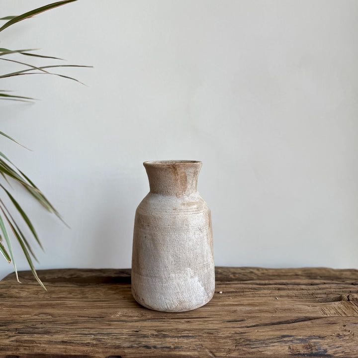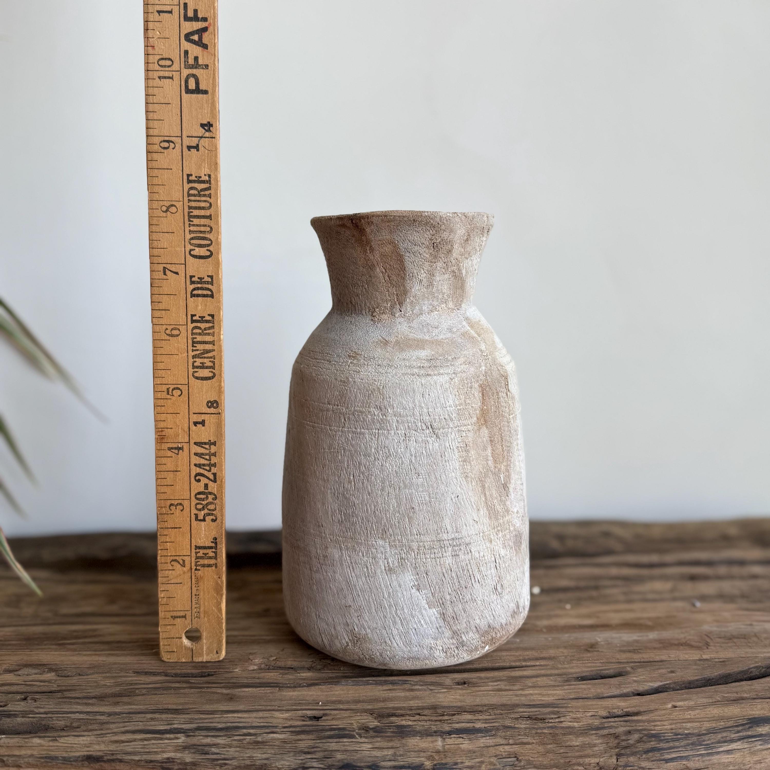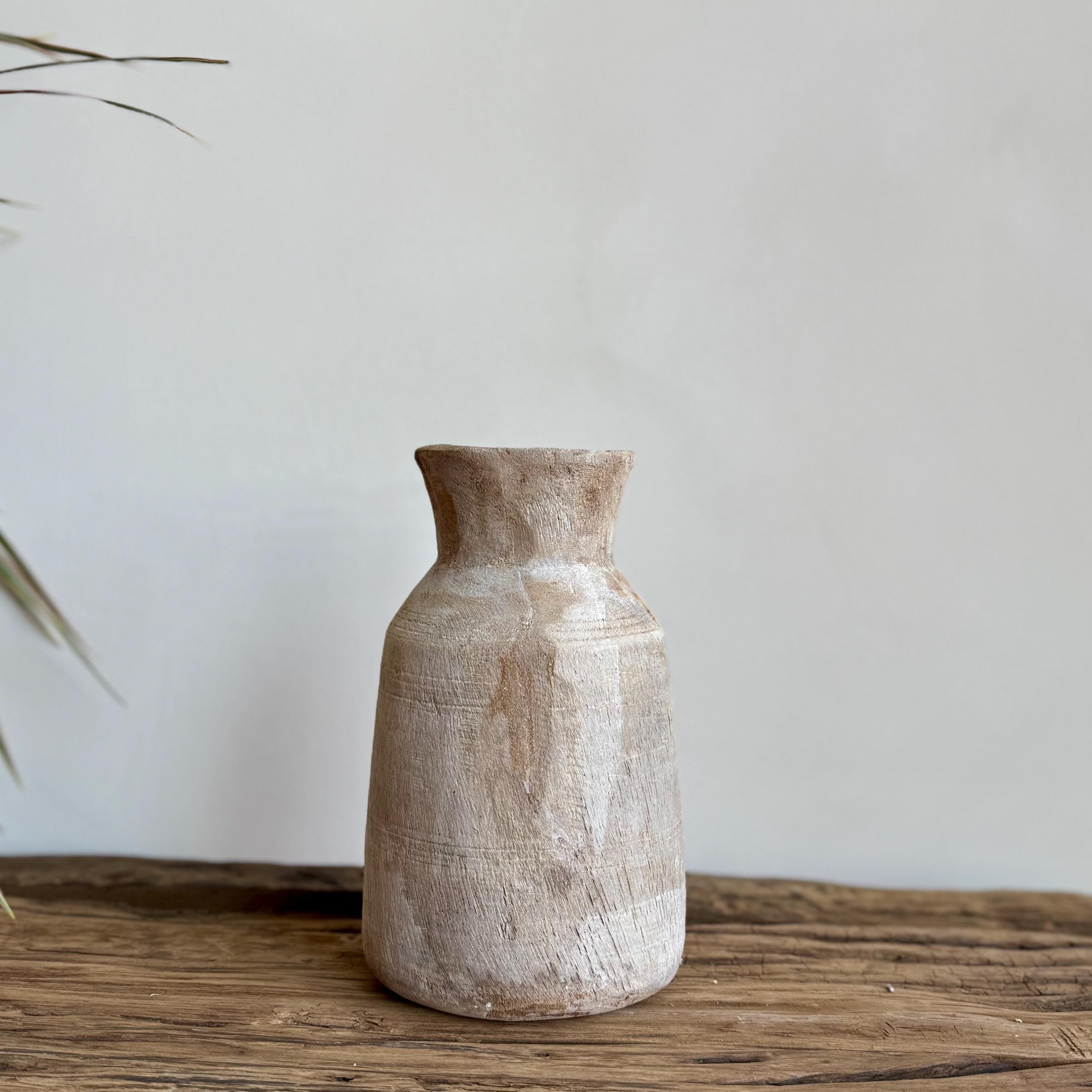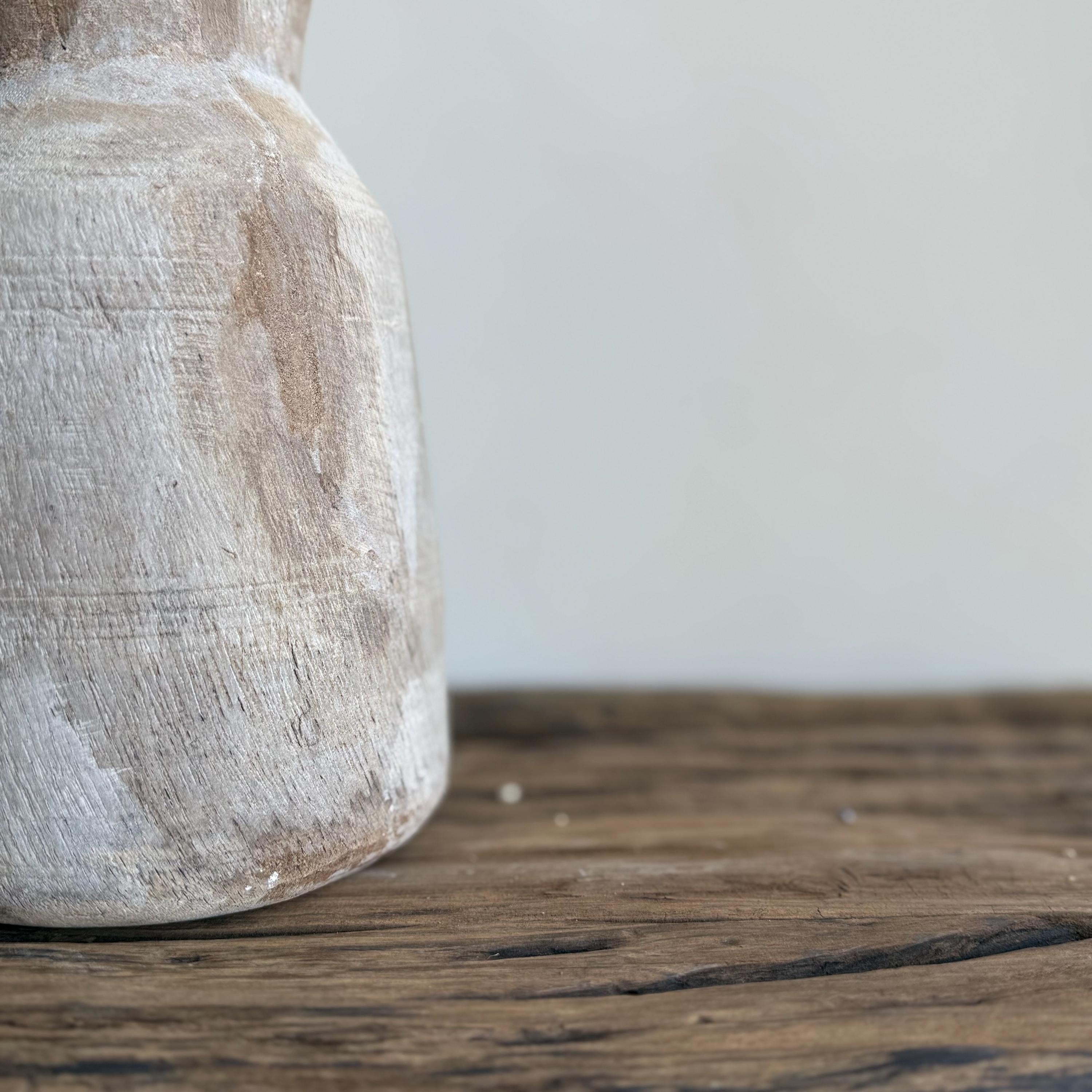Antique Teak Wooden Vase | Vintage Beige Jug Pot | Rustic Wooden Vessel