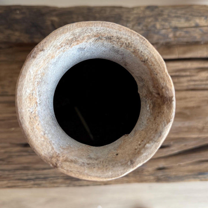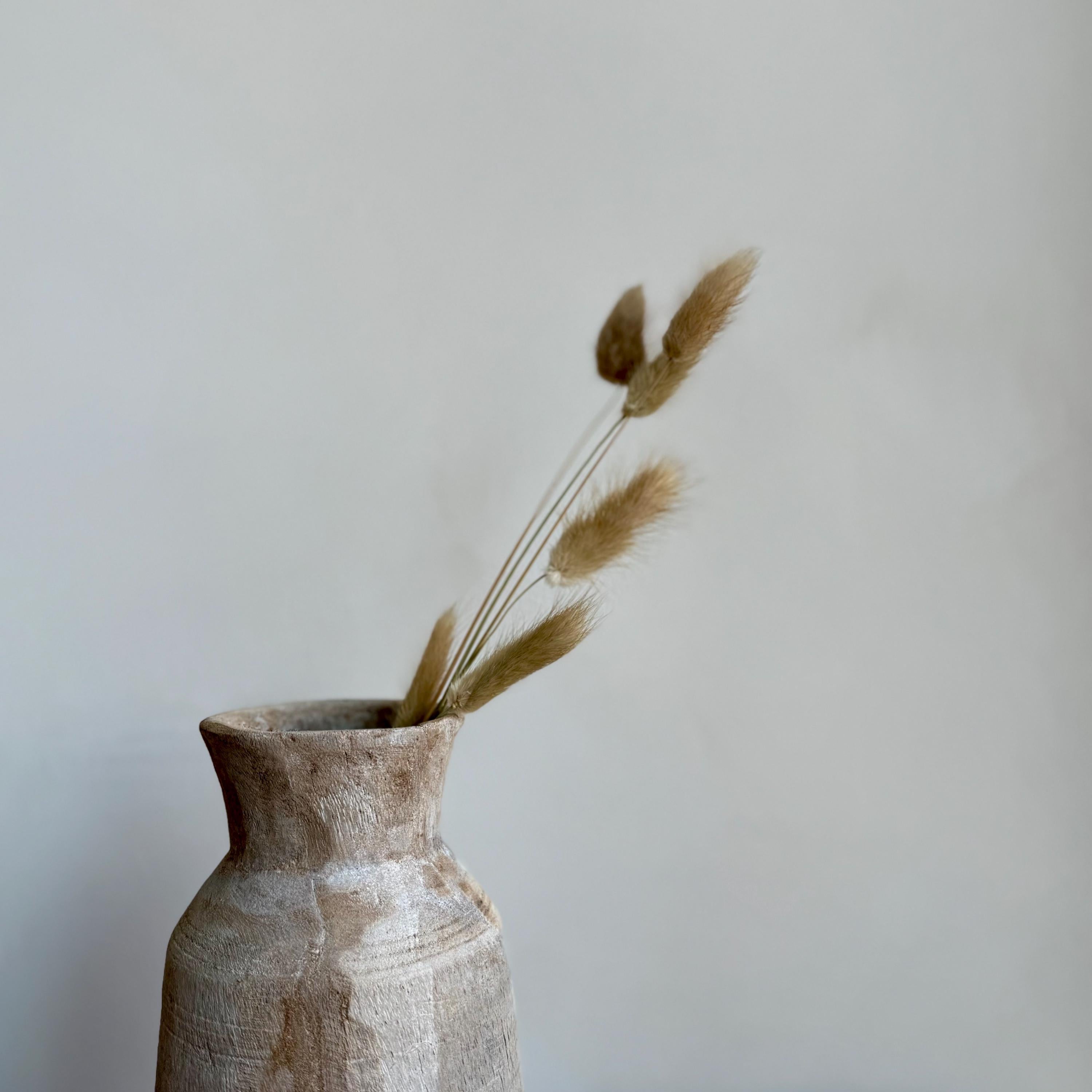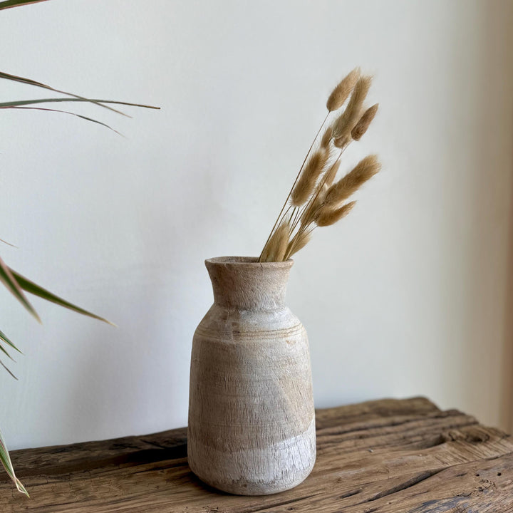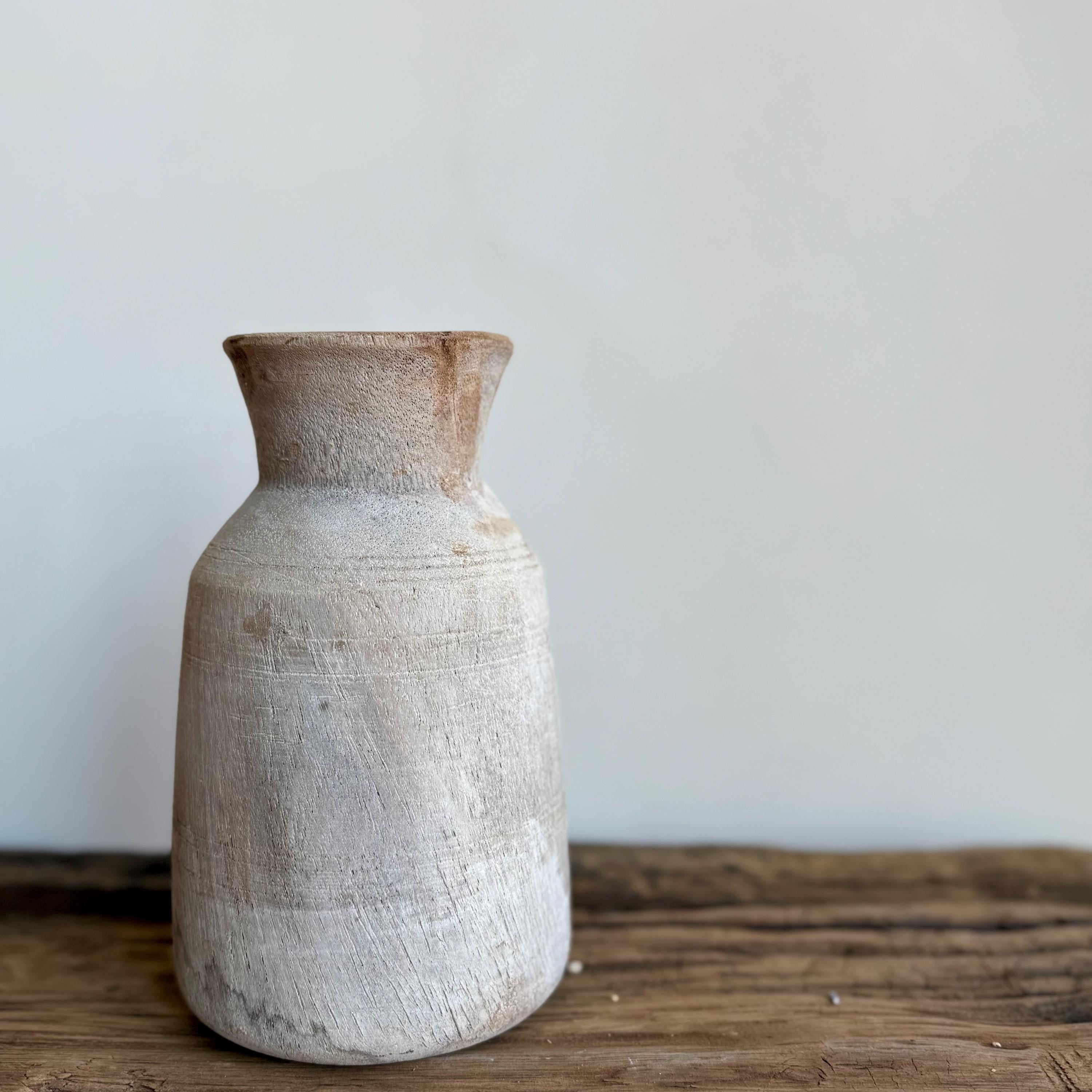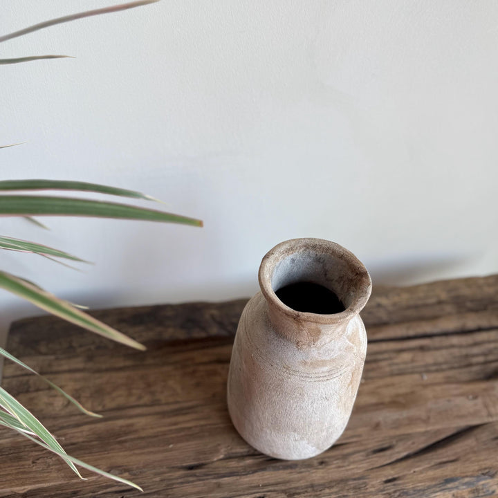 Antique Teak Wooden Vase | Vintage Beige Jug Pot | Rustic Wooden Vessel