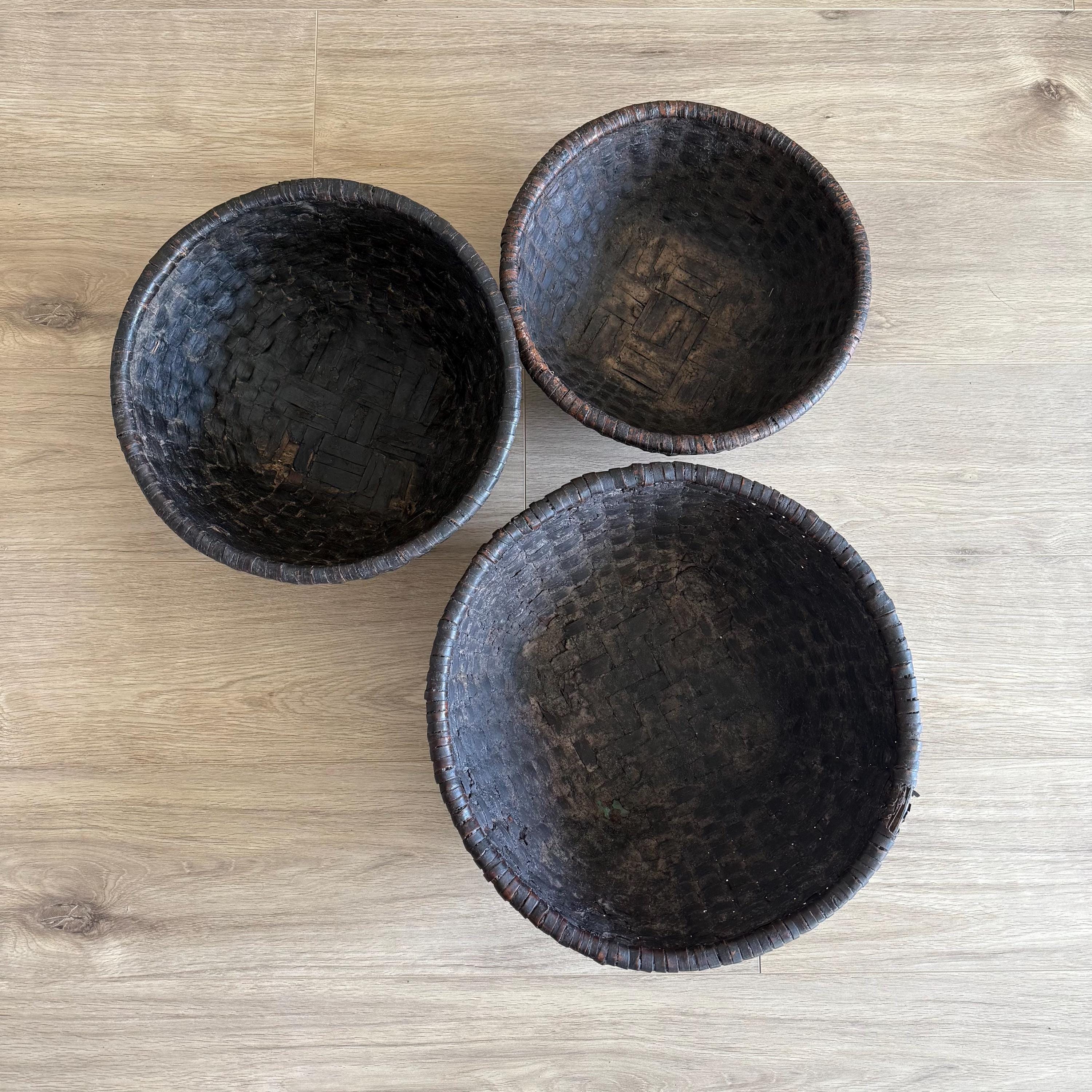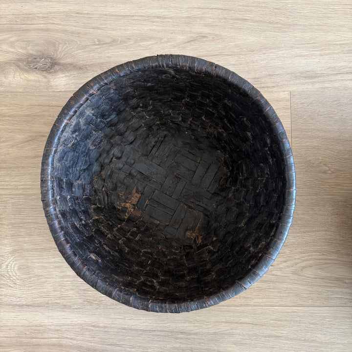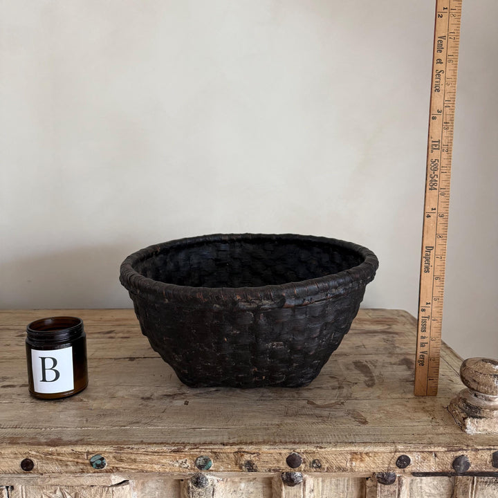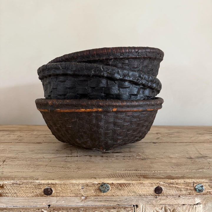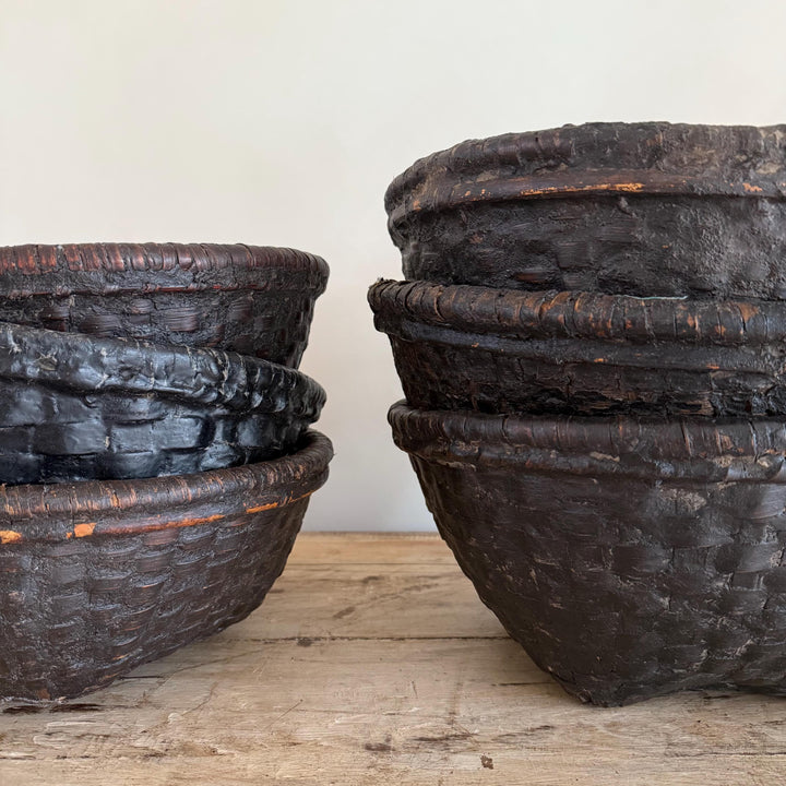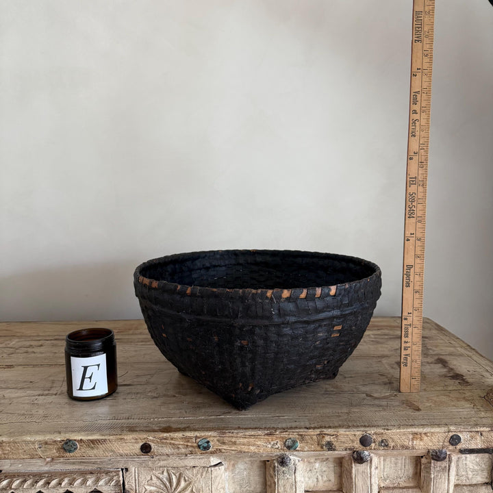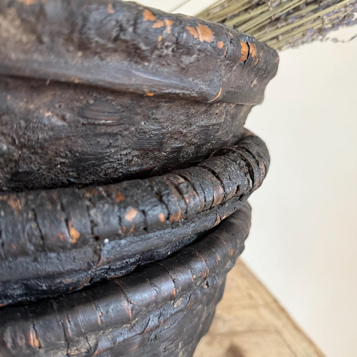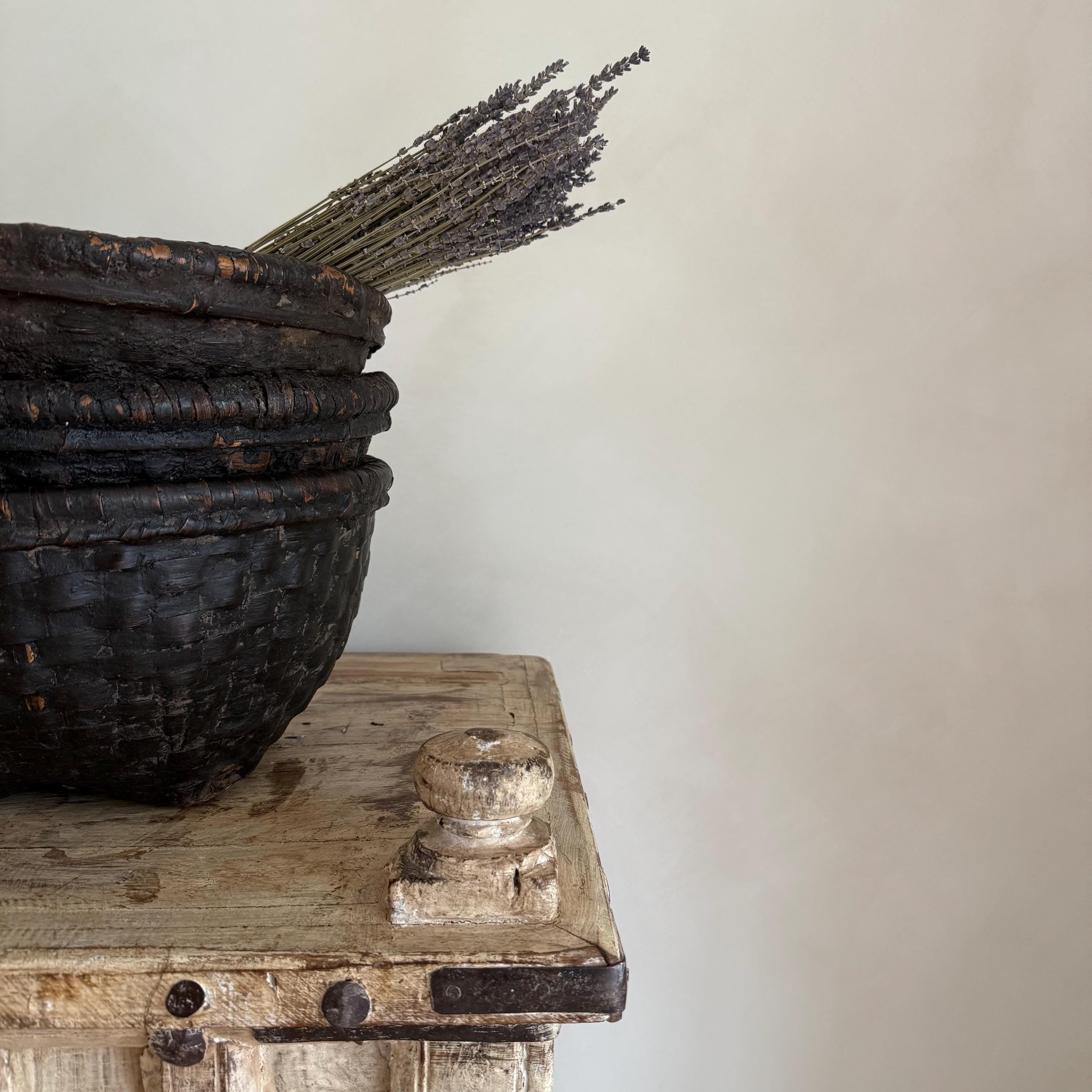 Whether styled alone or stacked with other black stacking baskets, this antique woven basket adds a grounded, earthy feel to your décor — ideal for farmhouse, rustic, boho, or Japanese wabi-sabi interiors.