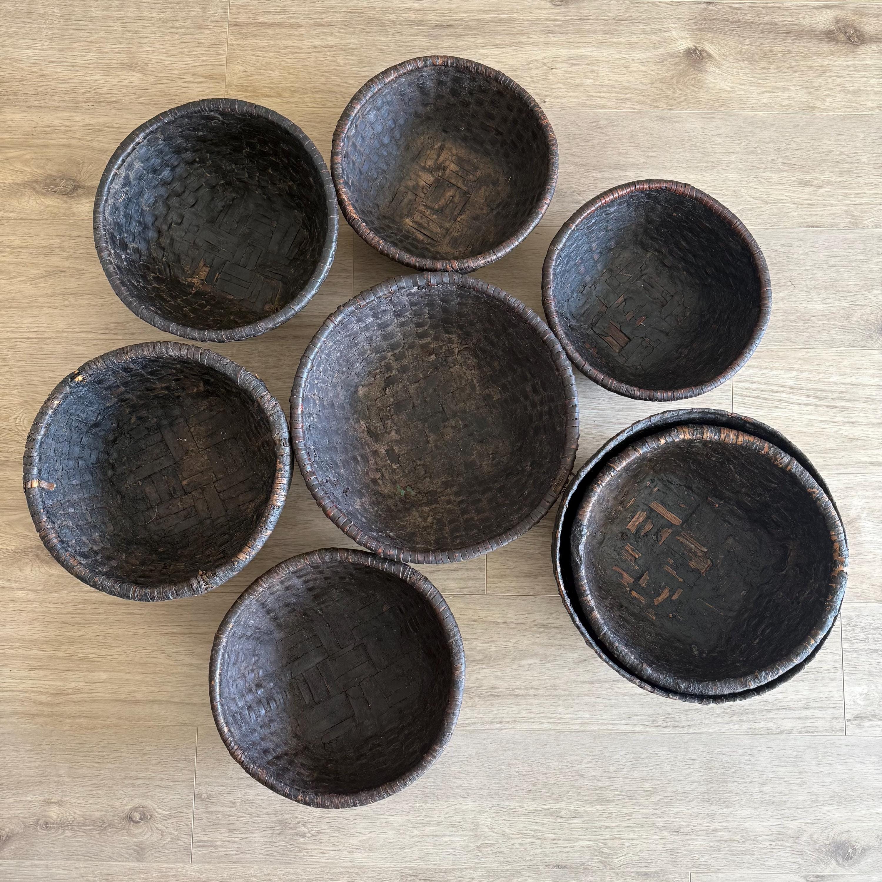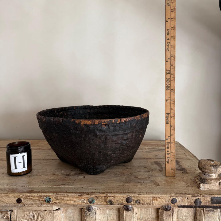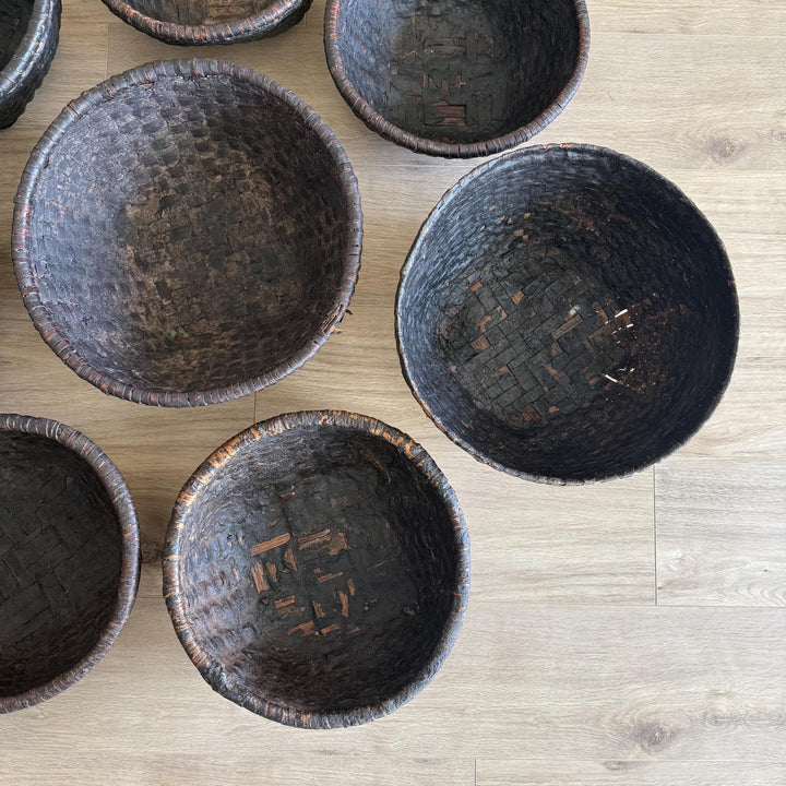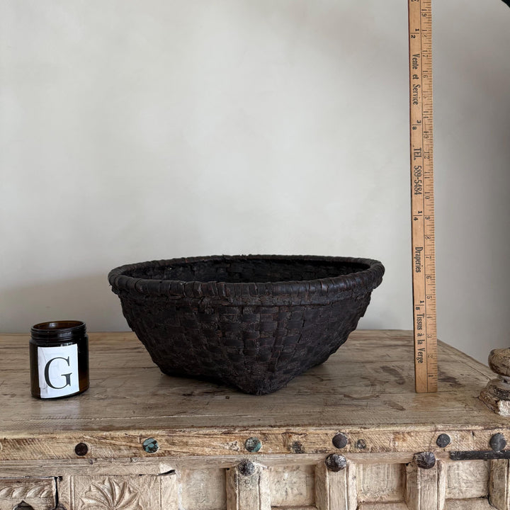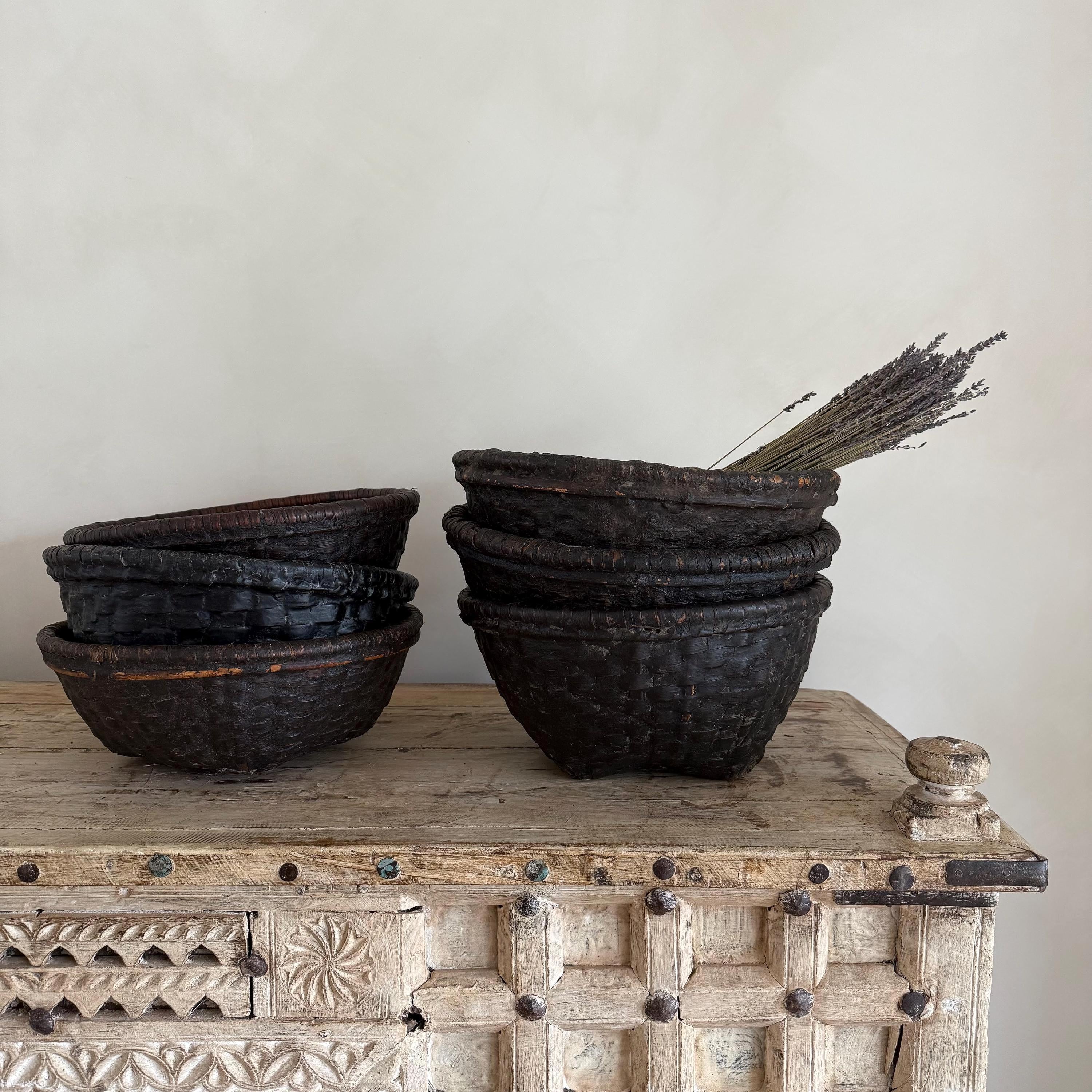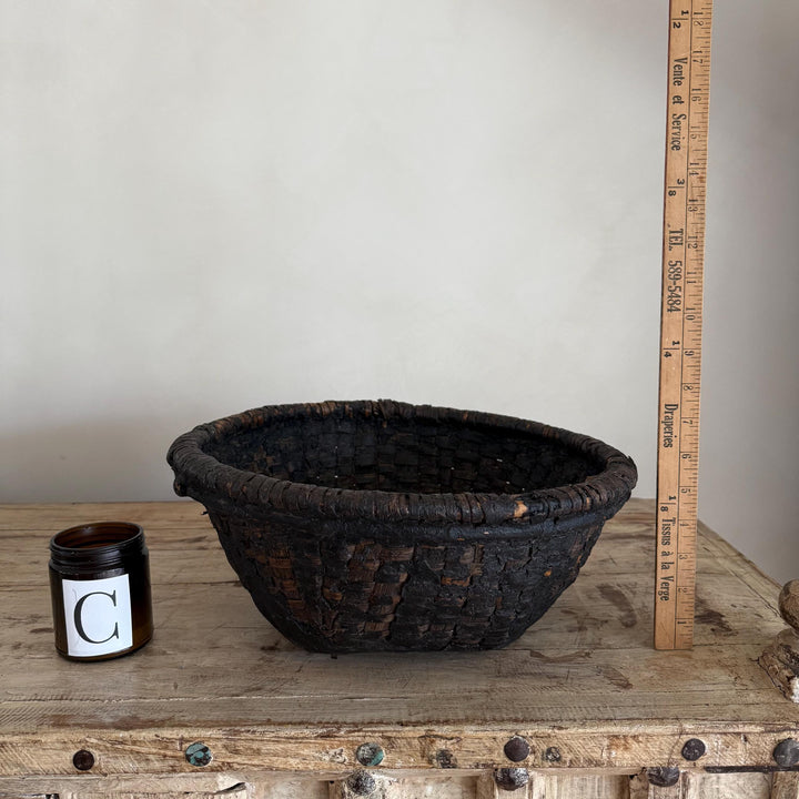 Whether styled alone or stacked with other black stacking baskets, this antique woven basket adds a grounded, earthy feel to your décor — ideal for farmhouse, rustic, boho, or Japanese wabi-sabi interiors.