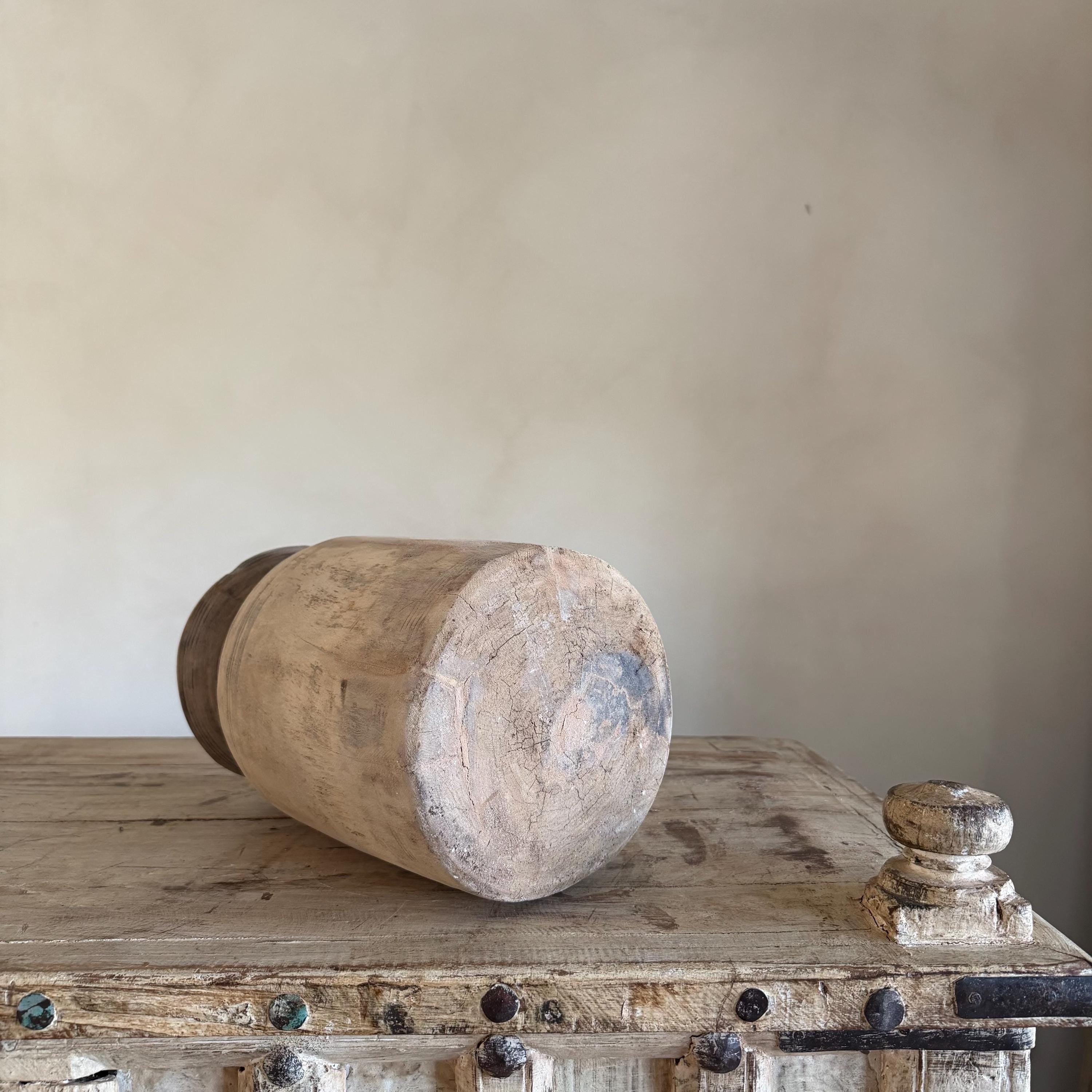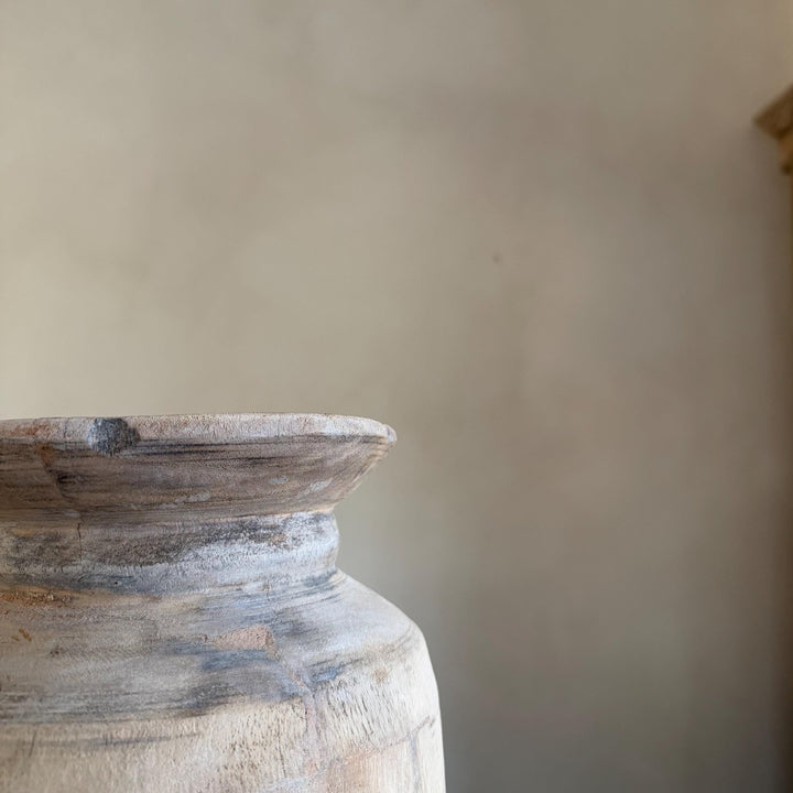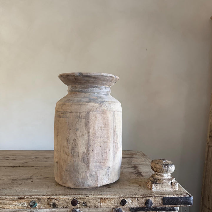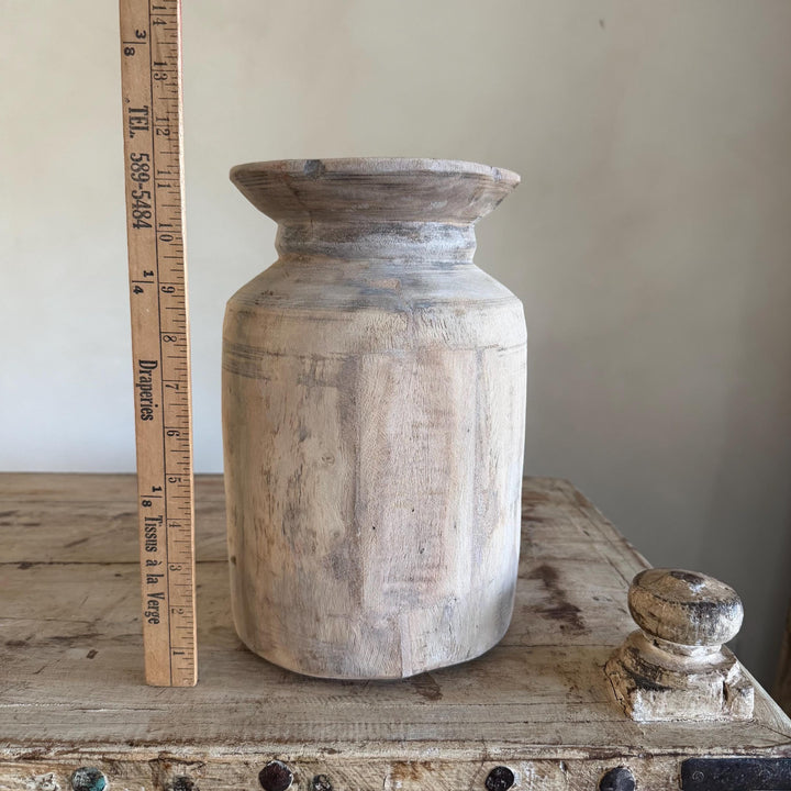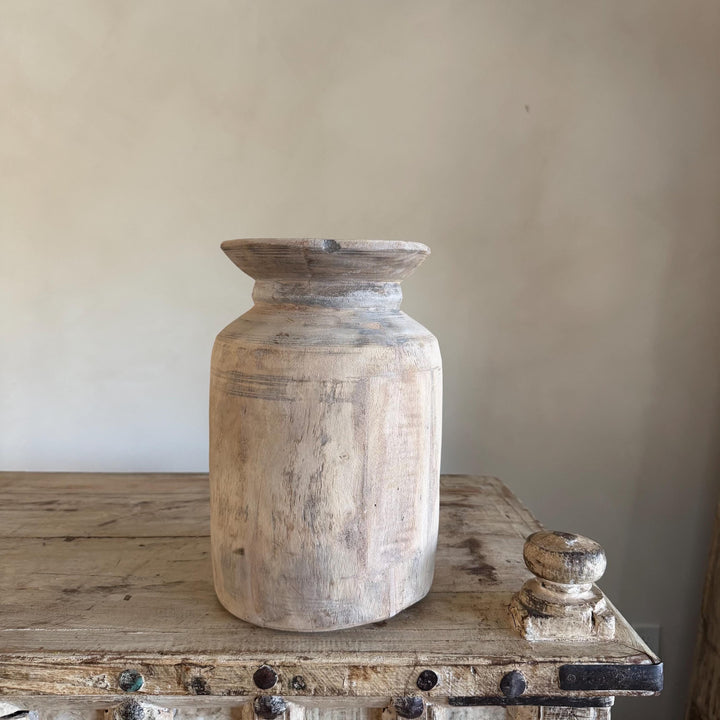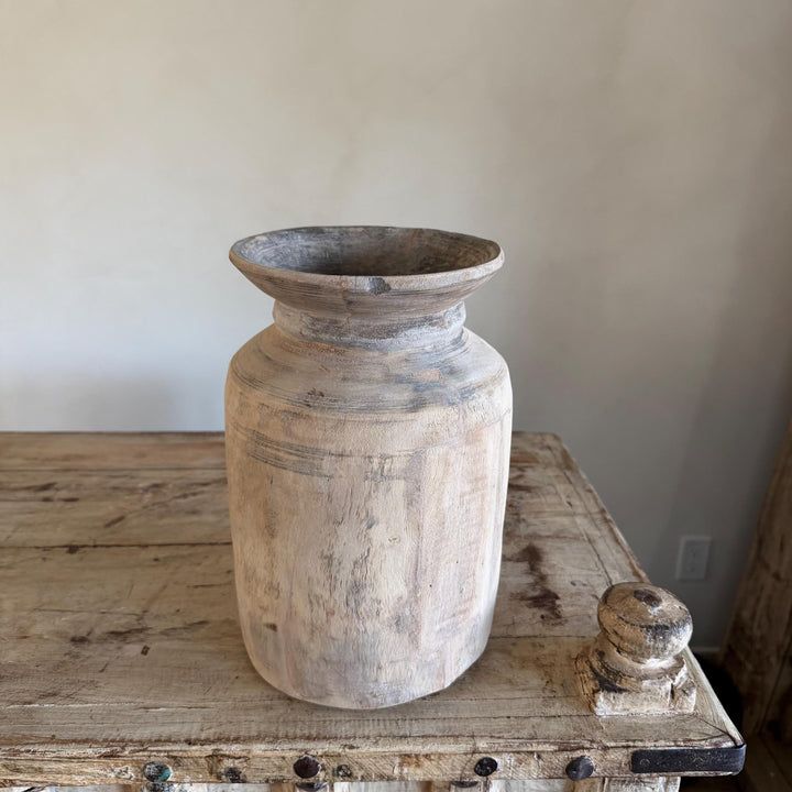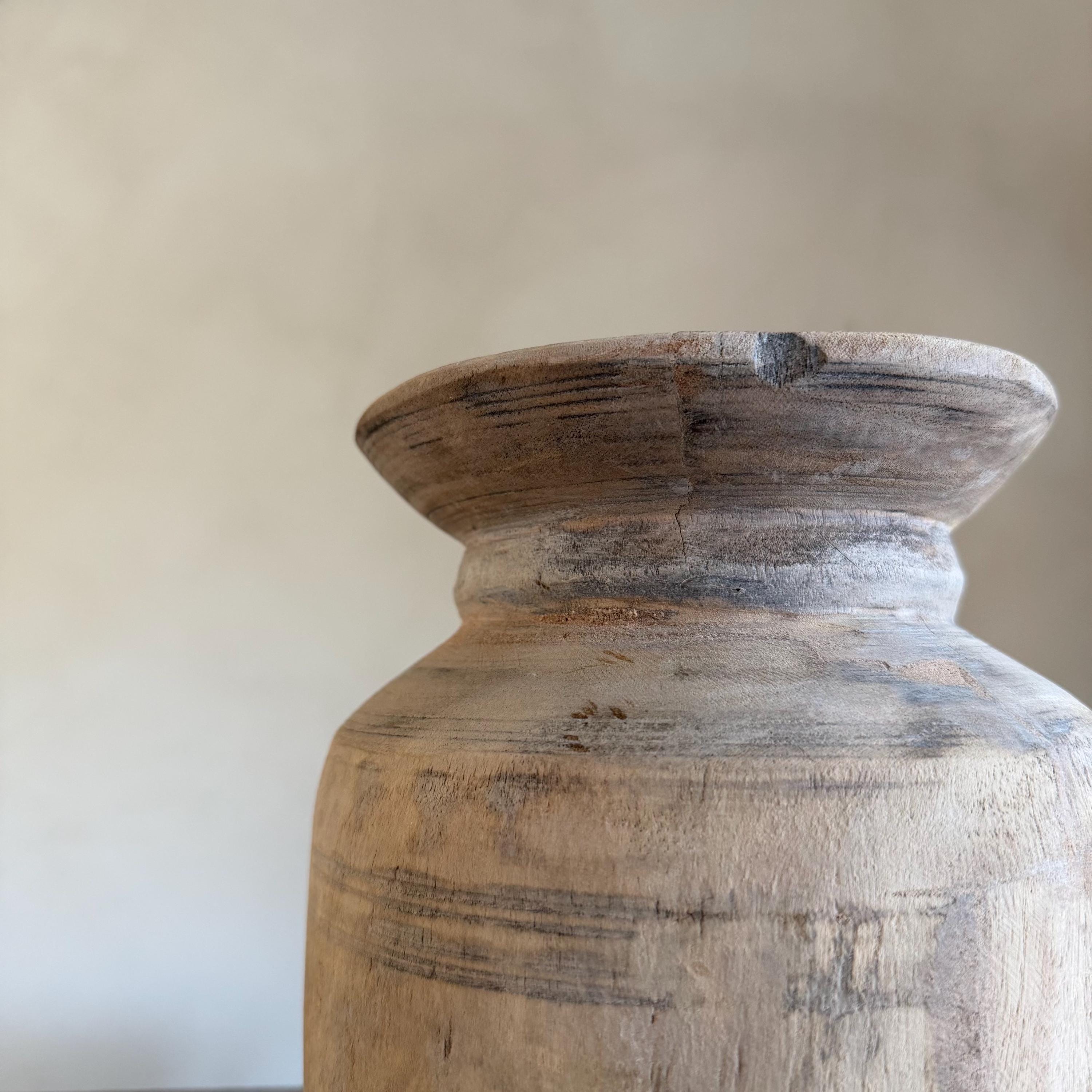 Large Antique Teak Wood Vase 11.5" | Vintage Bleached Vessel | Hand Carved Wabi Sabi Jar