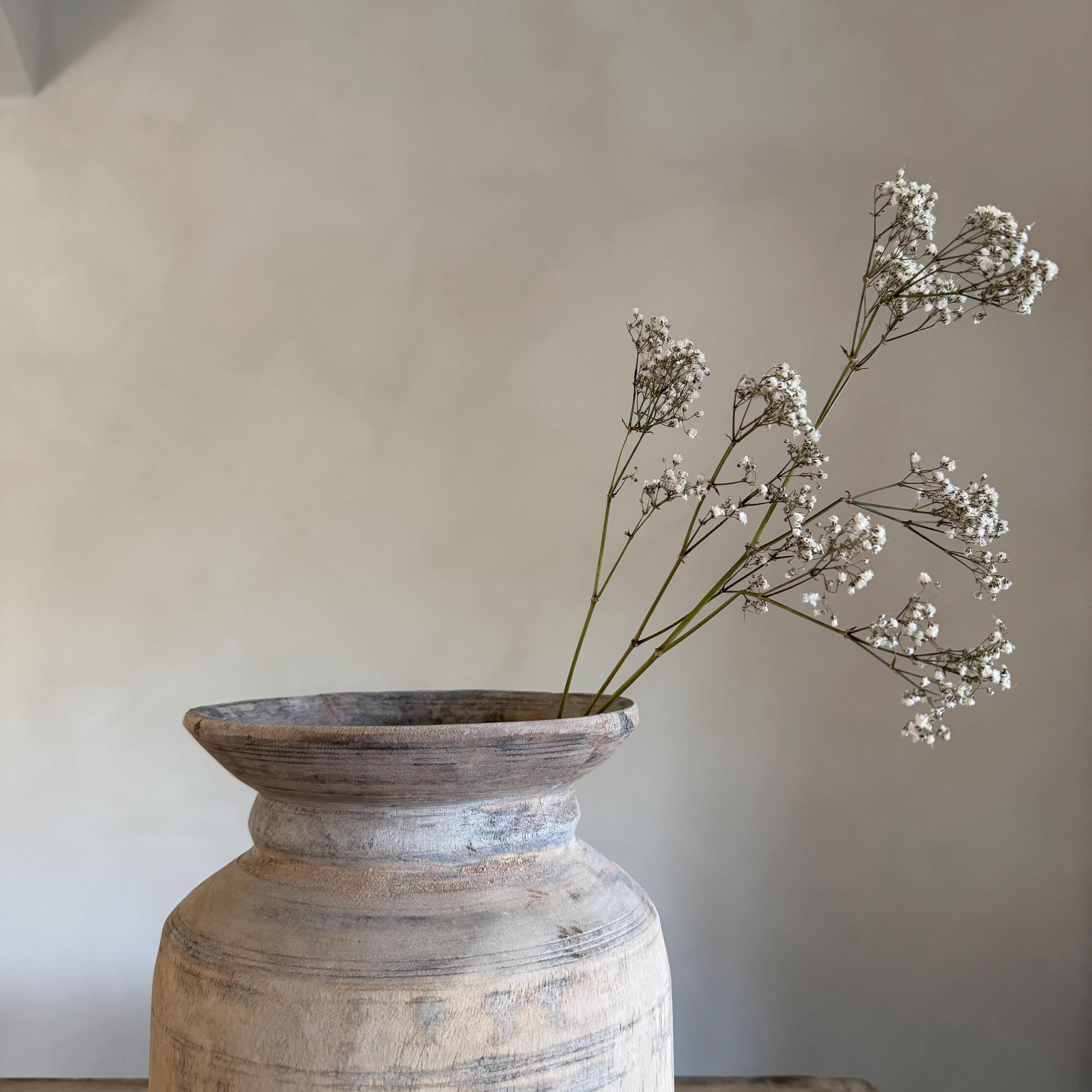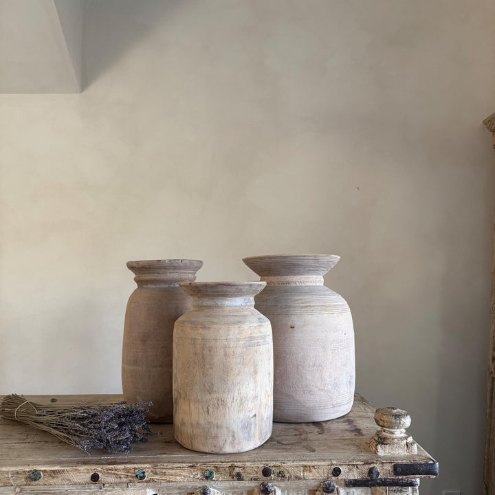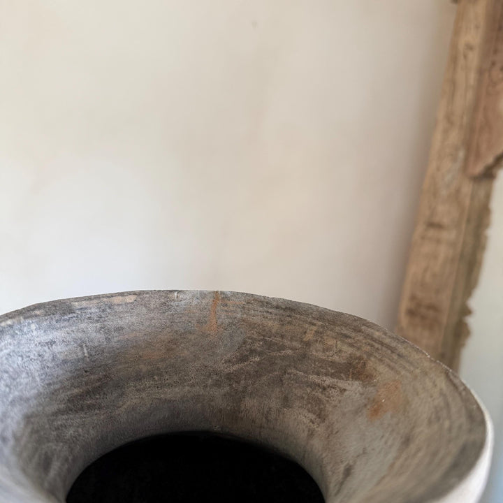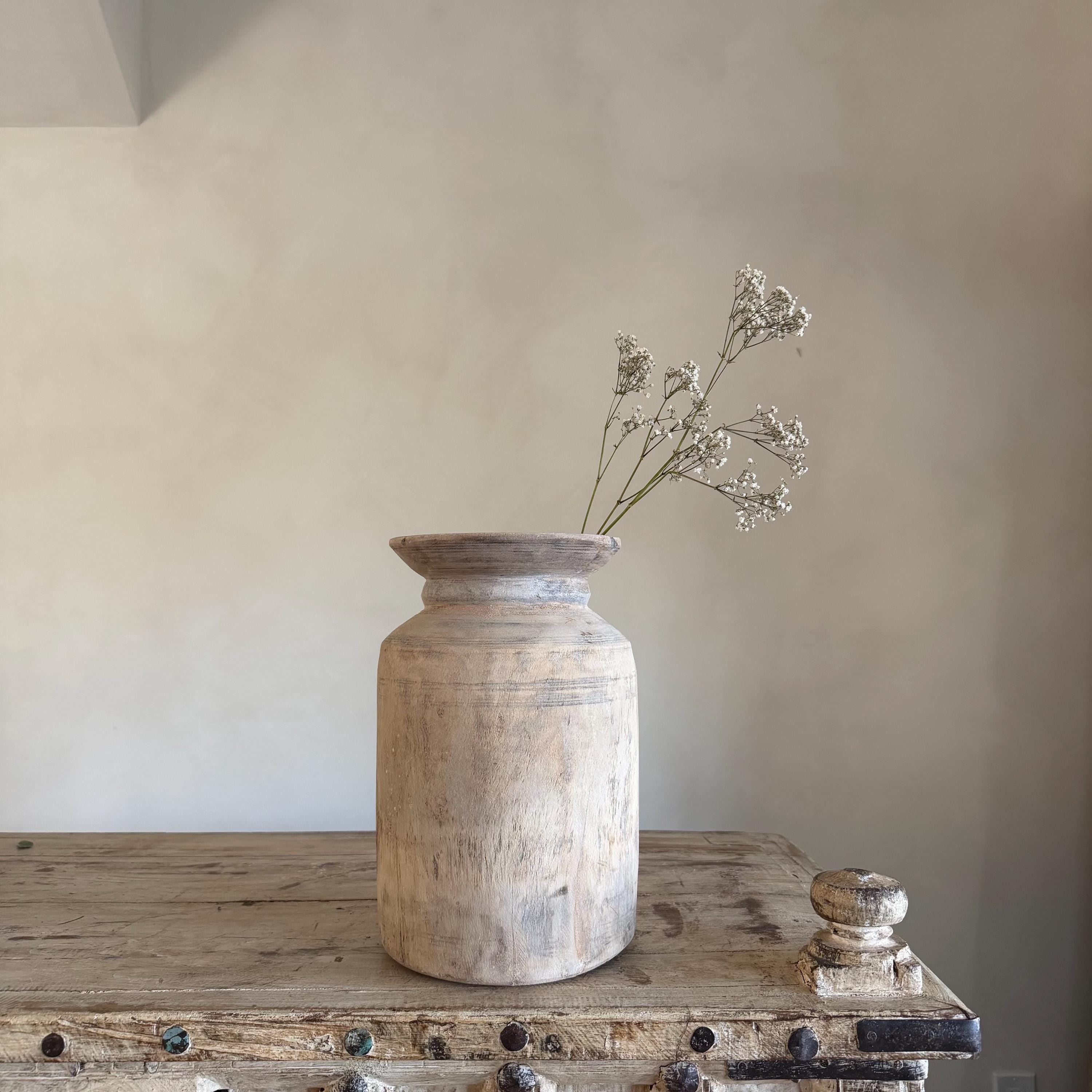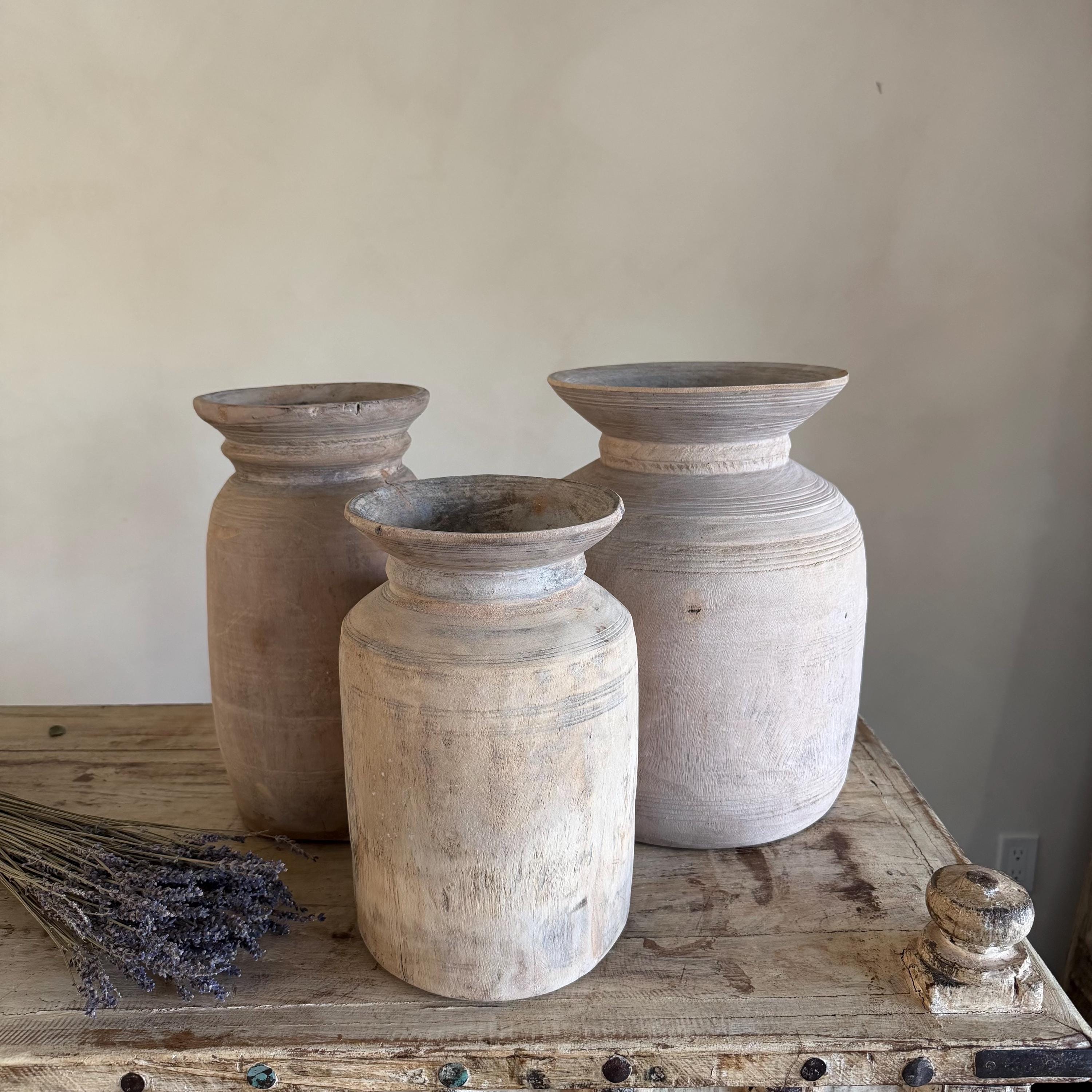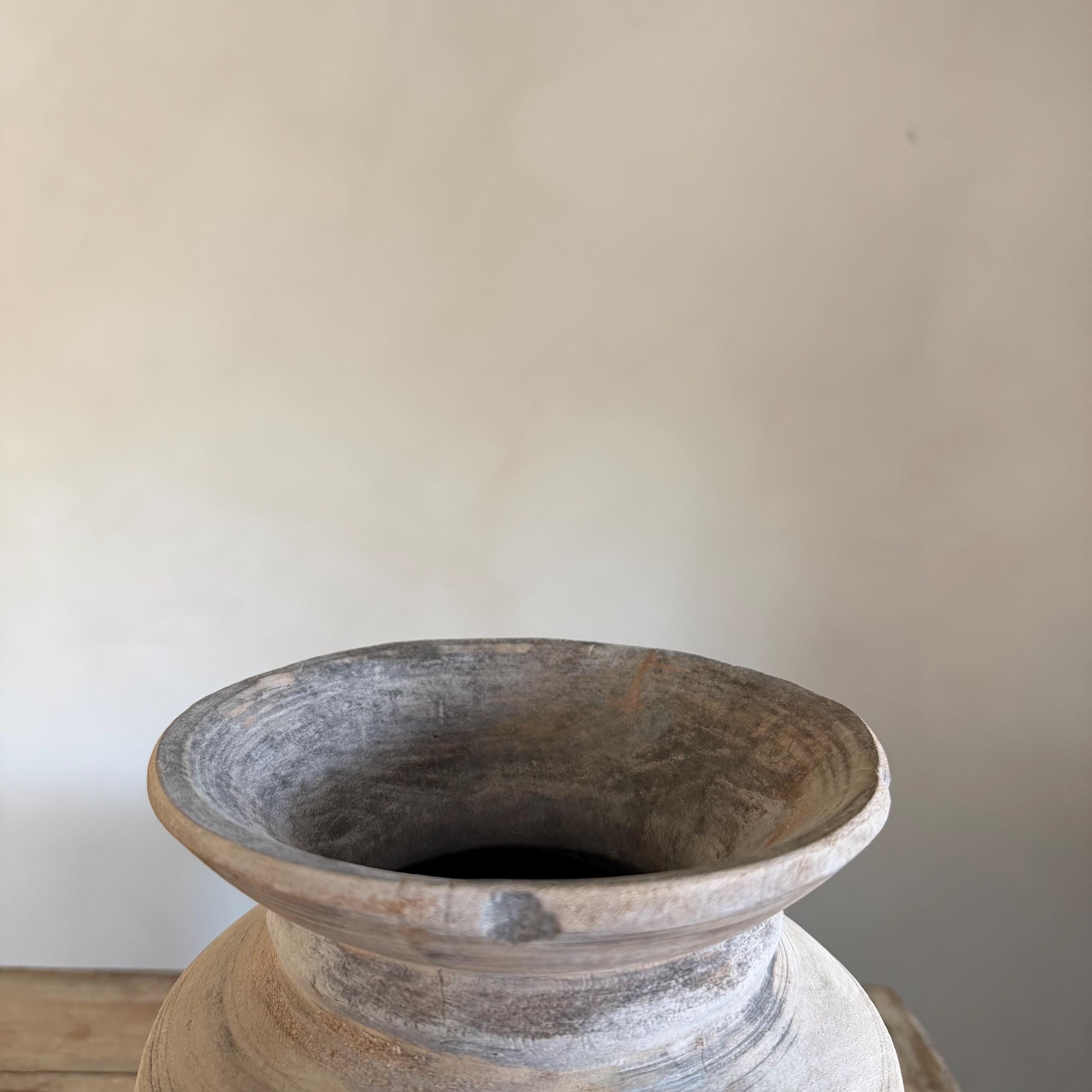 Large Antique Teak Wood Vase 11.5" | Vintage Bleached Vessel | Hand Carved Wabi Sabi Jar
