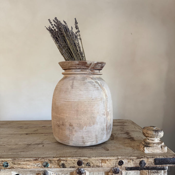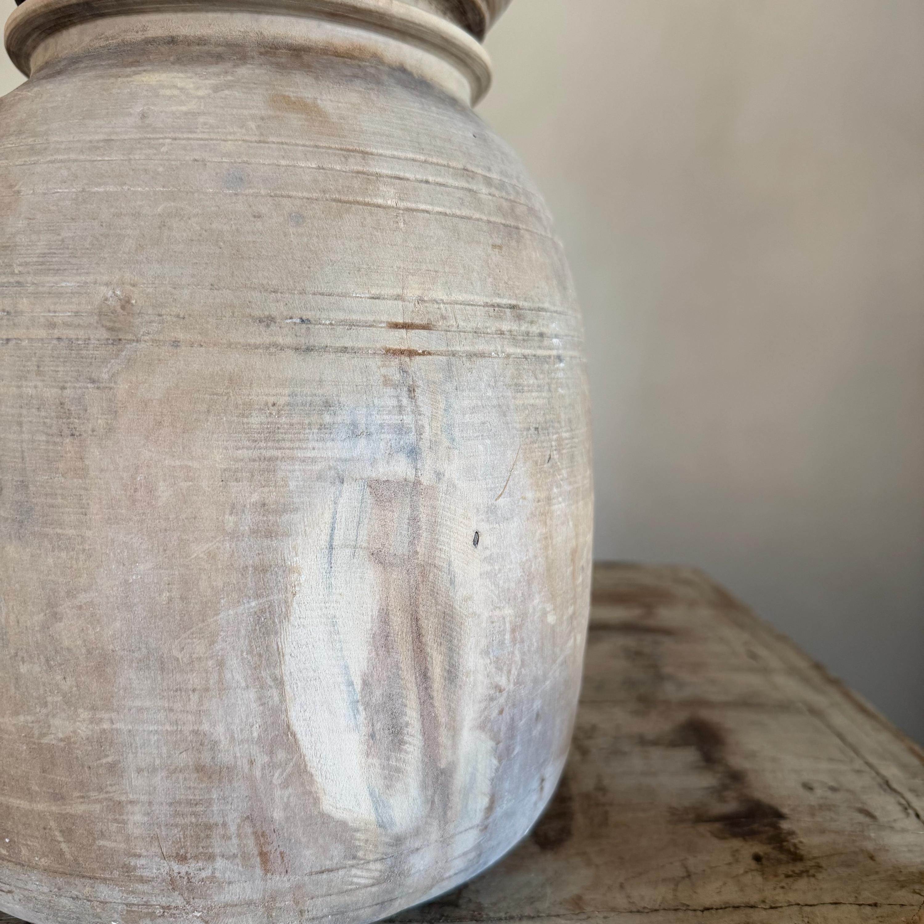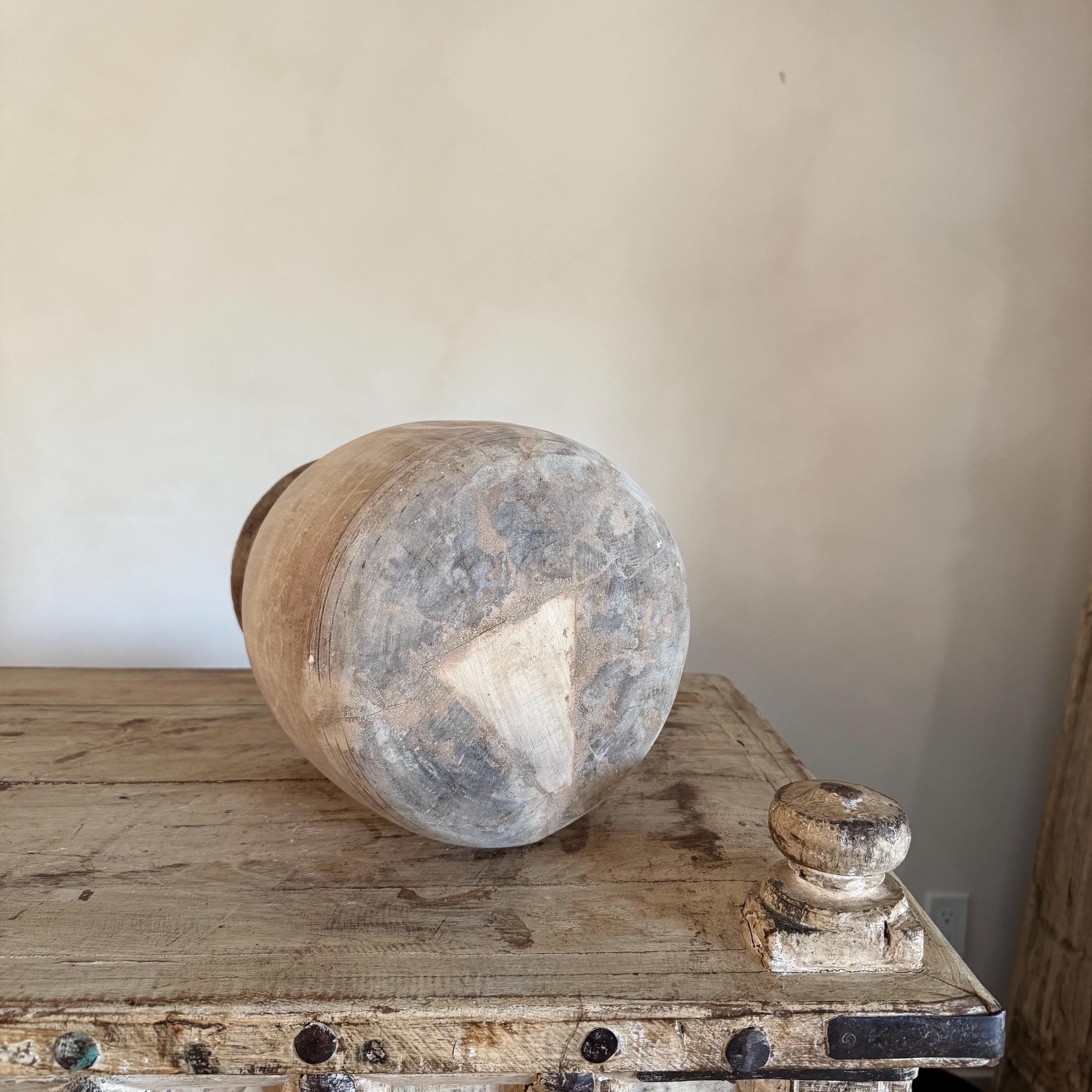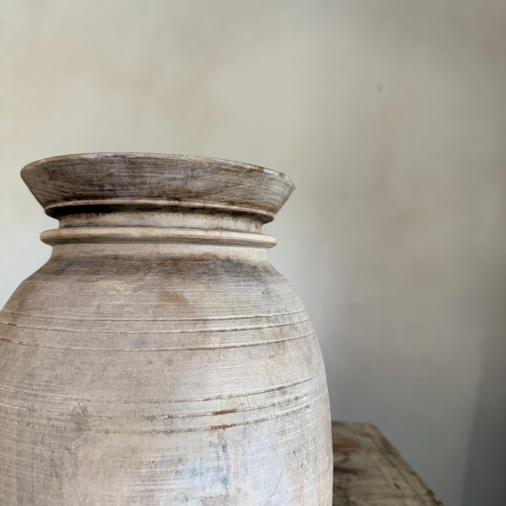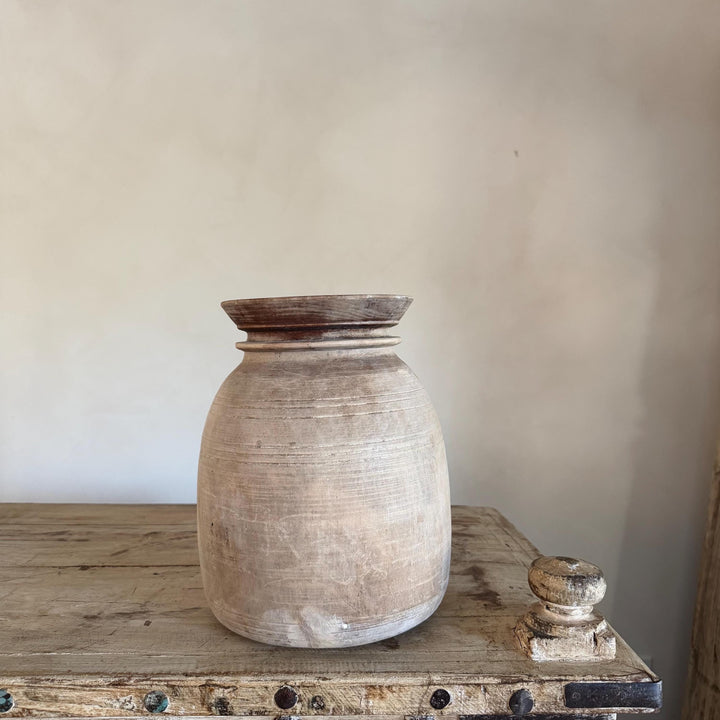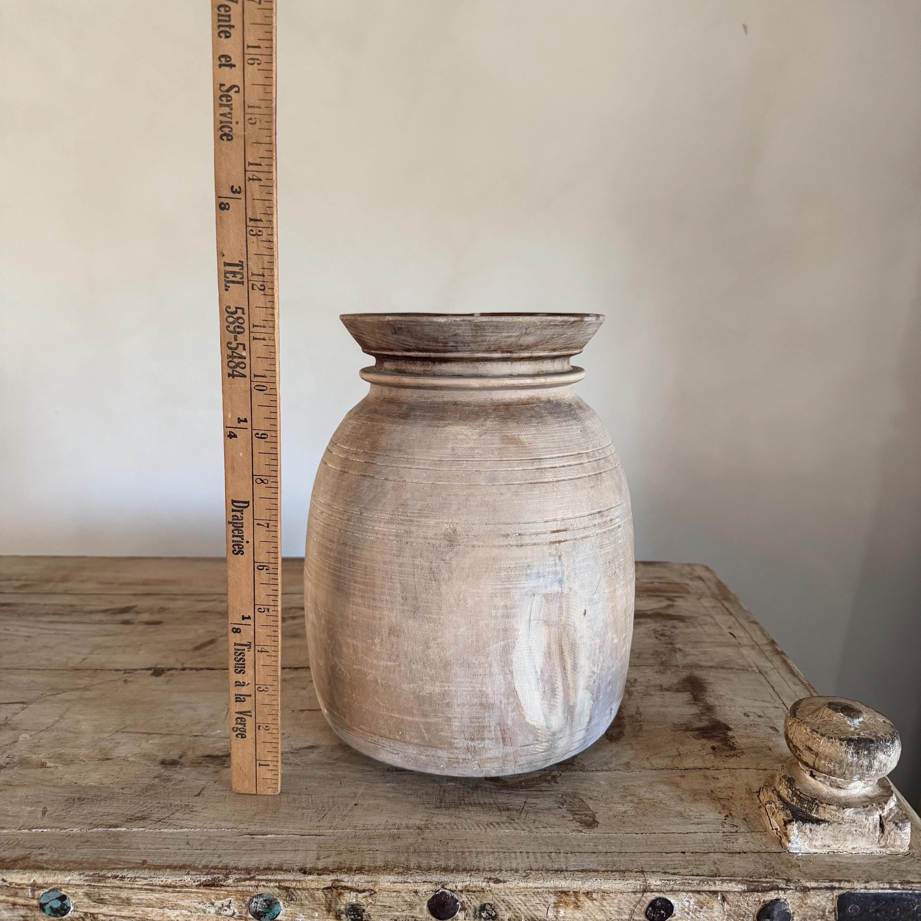 Large Antique Teak Wood Vase 11.5" | Vintage Bleached Vessel | Hand Carved Wabi Sabi Jar