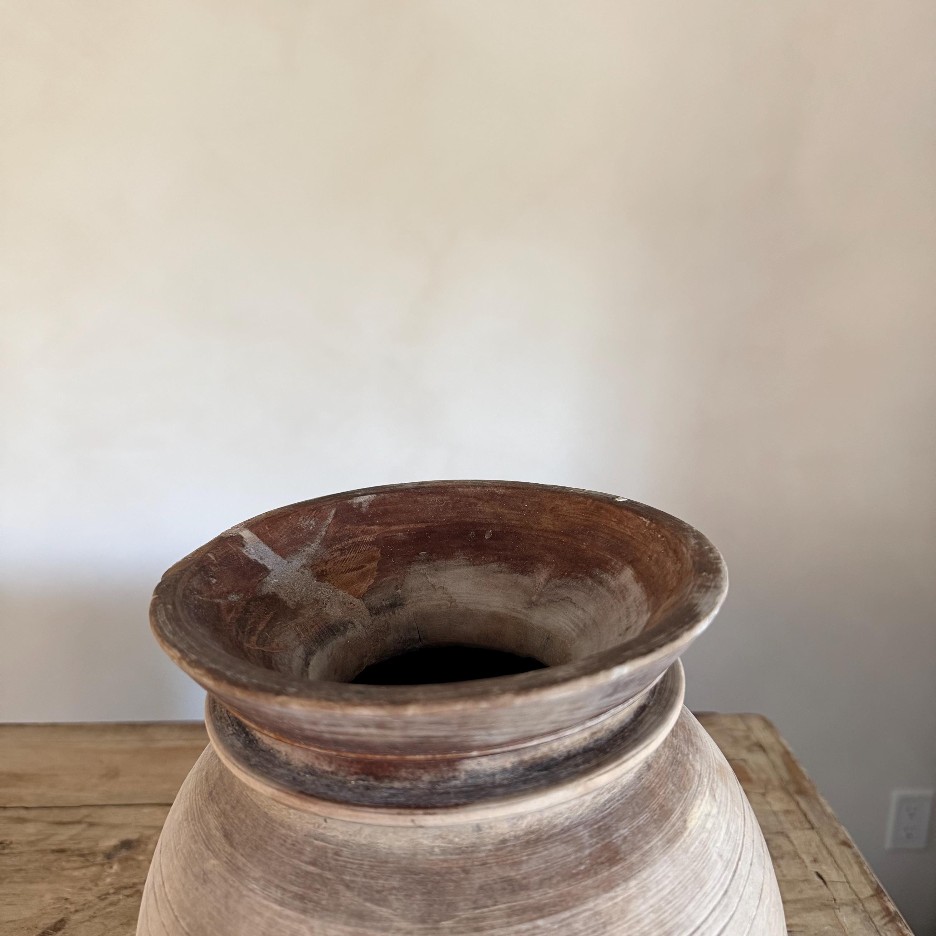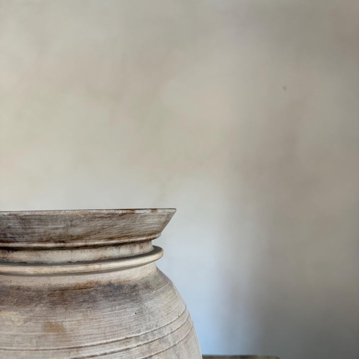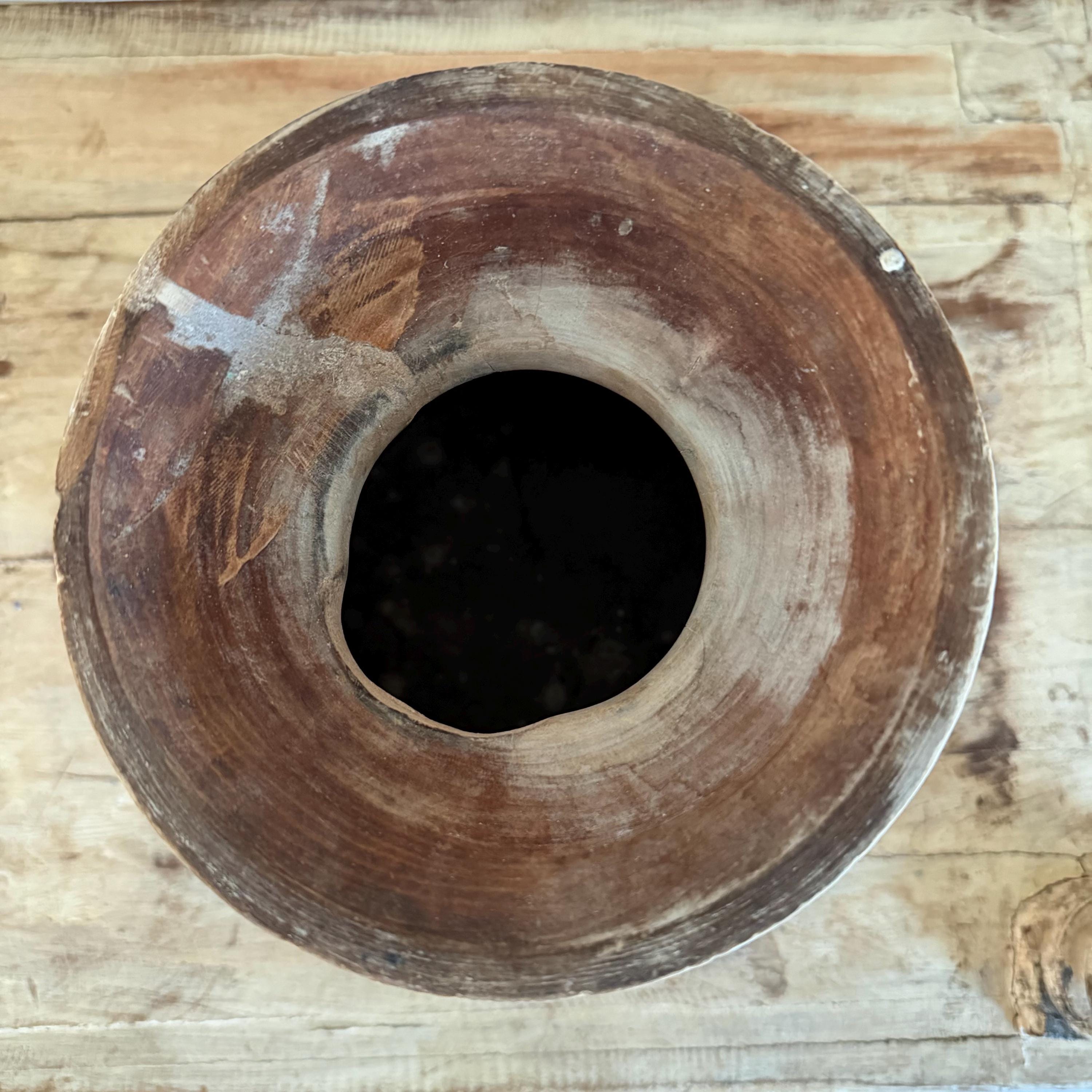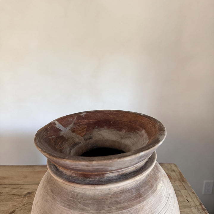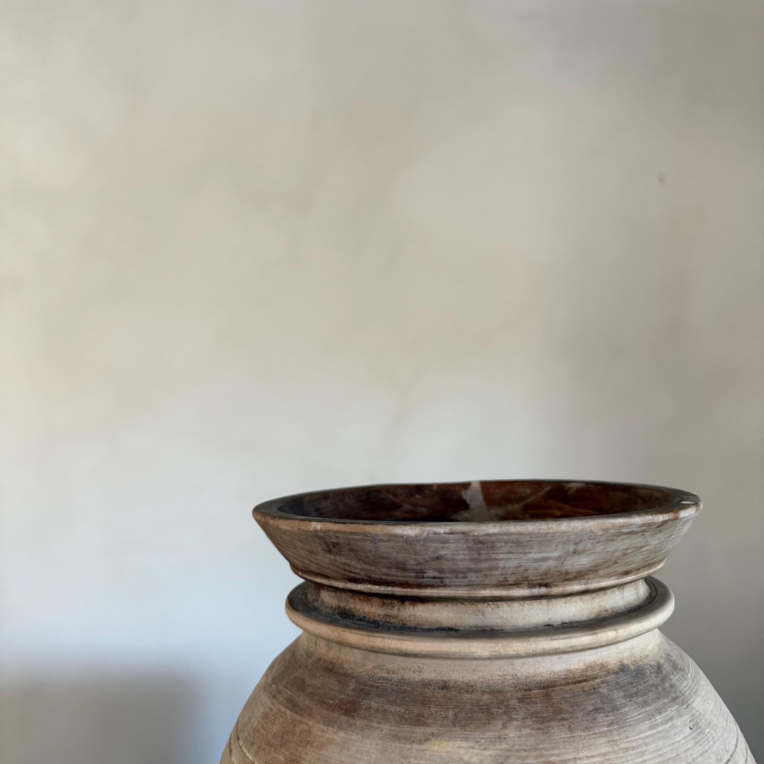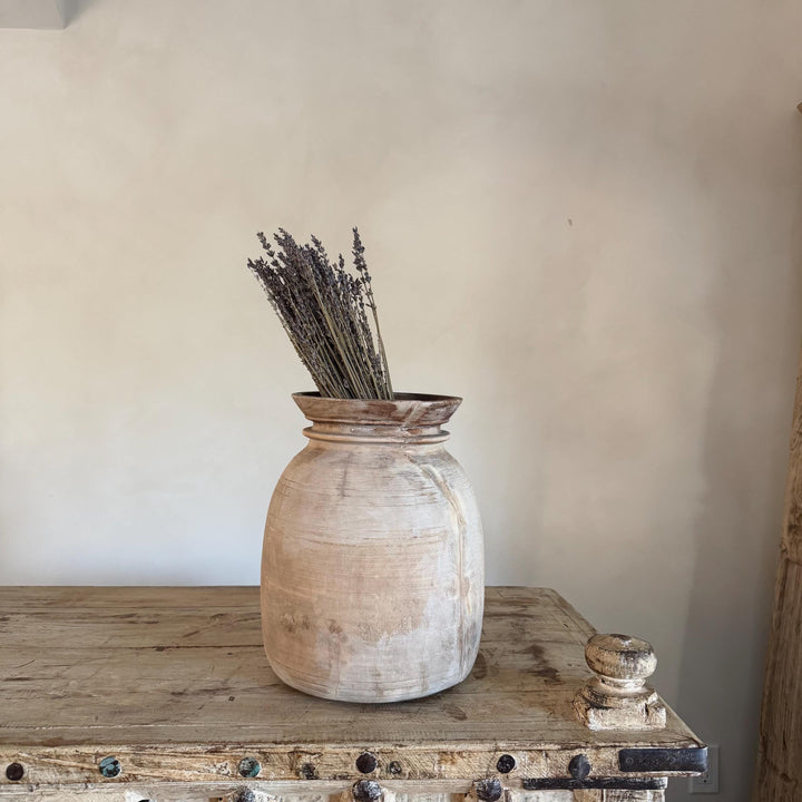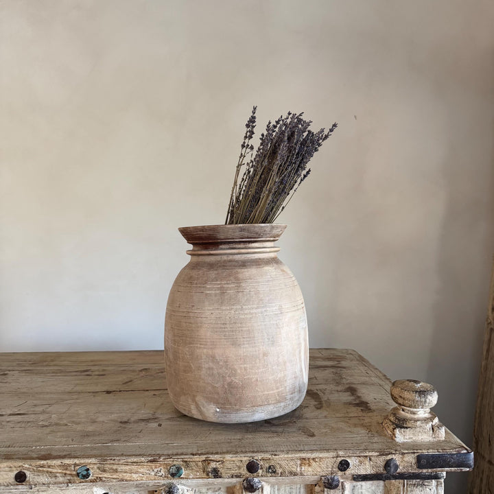 Large Antique Teak Wood Vase 11.5" | Vintage Bleached Vessel | Hand Carved Wabi Sabi Jar