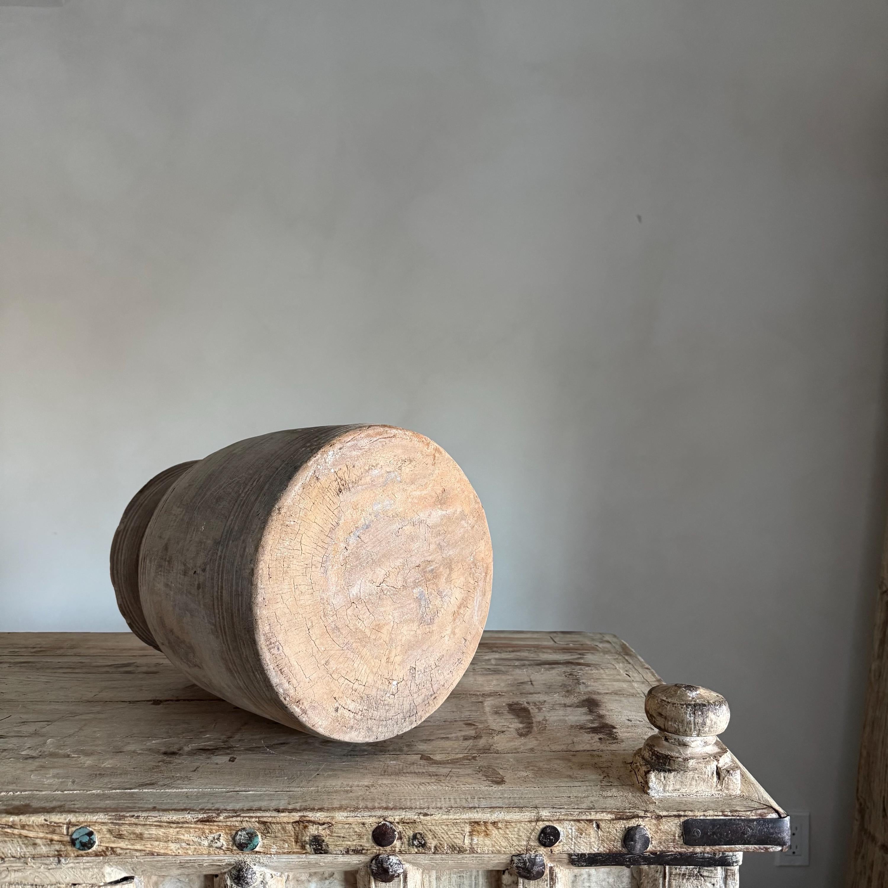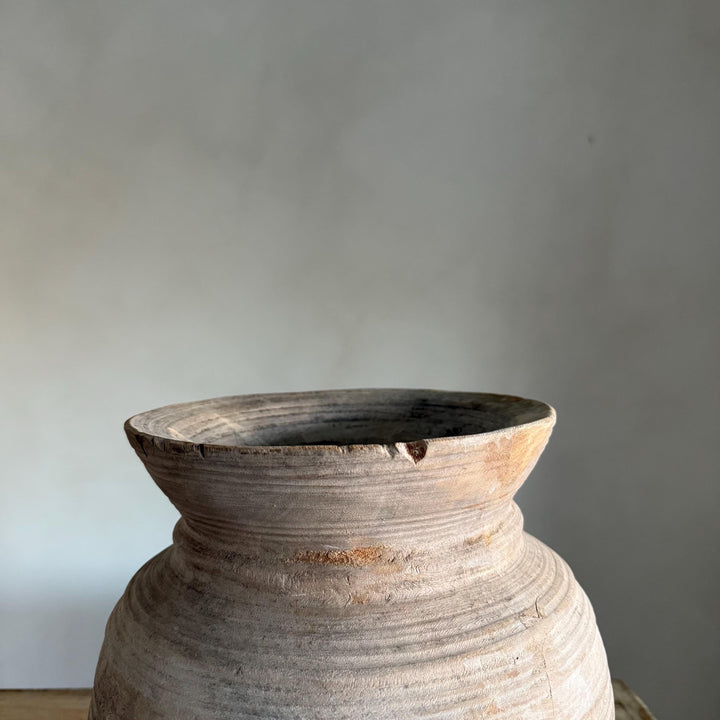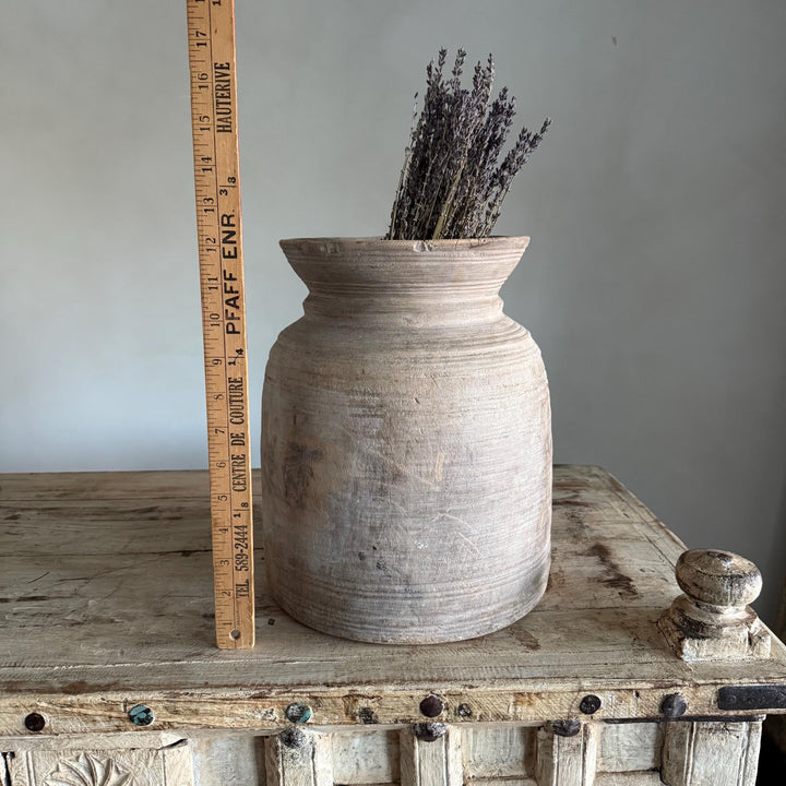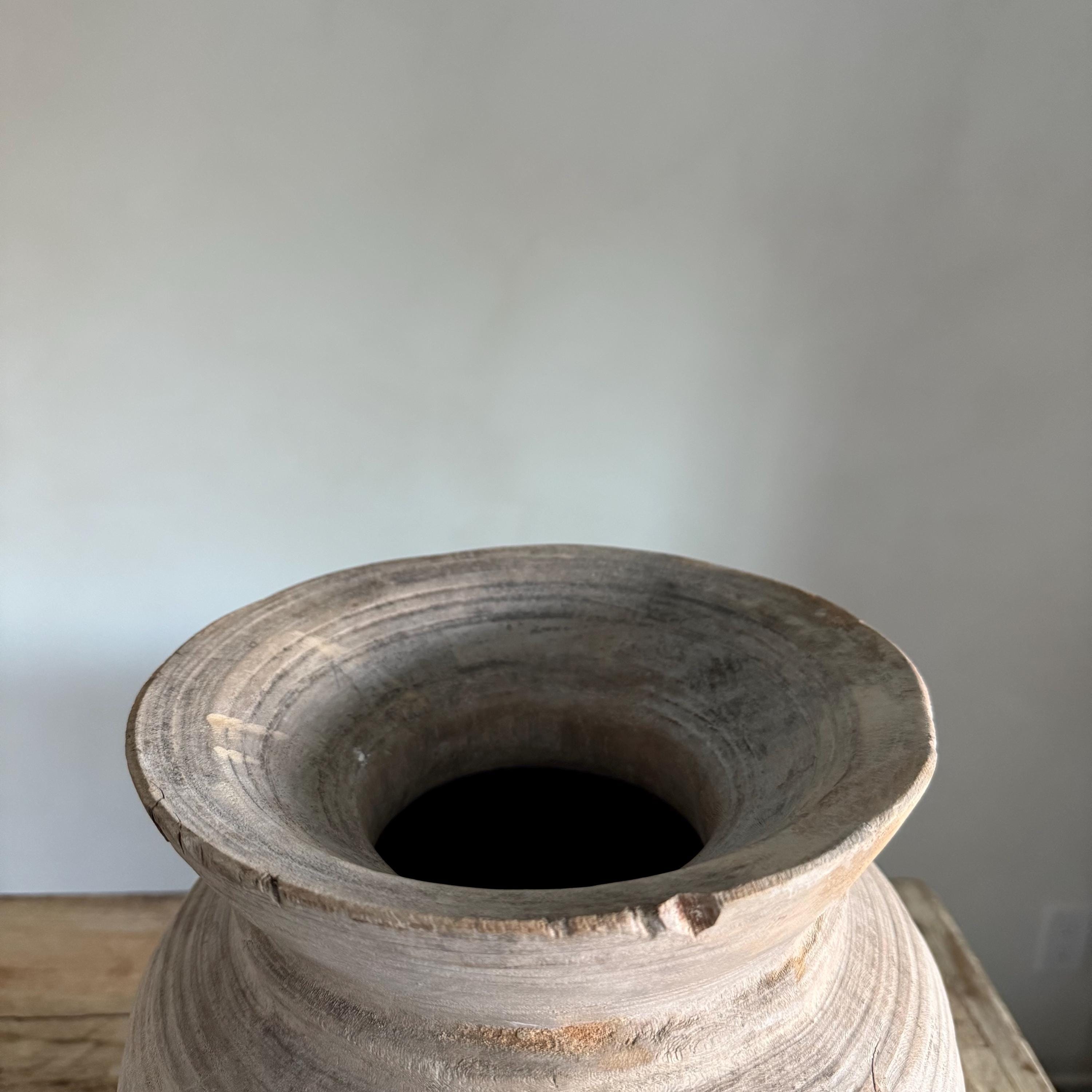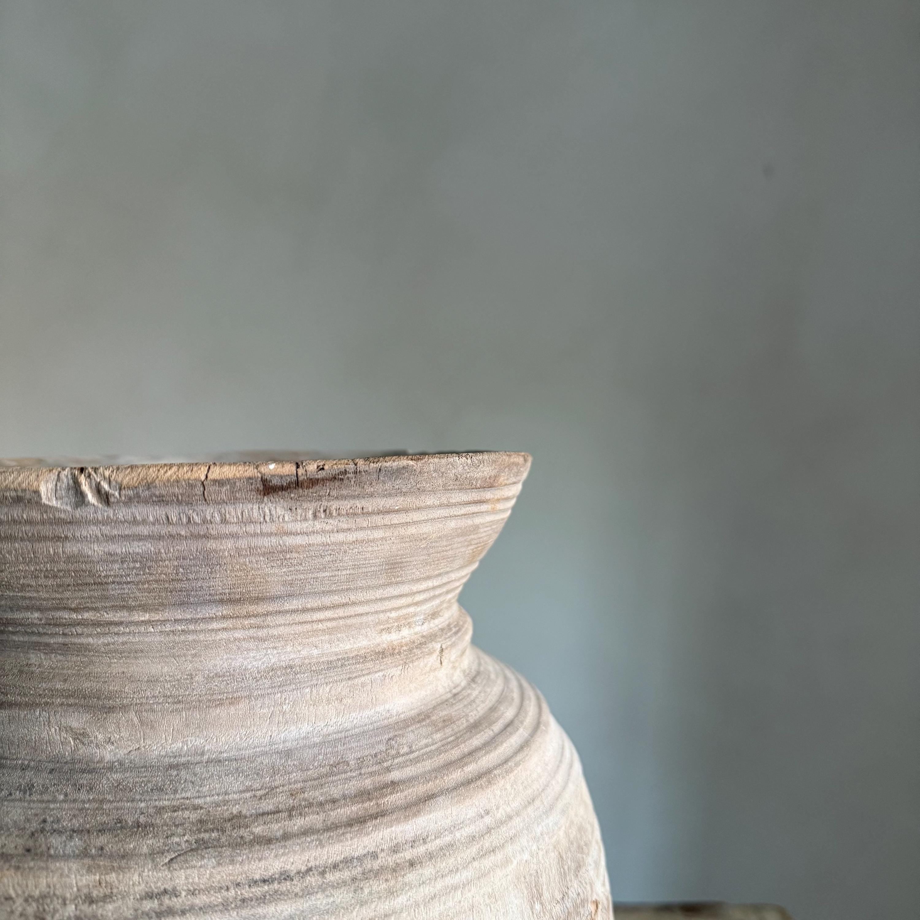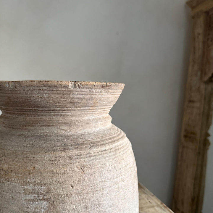 Large Antique Teak Wood Vase 12.5" | Vintage Bleached Vessel | Hand Carved Wabi Sabi Jar