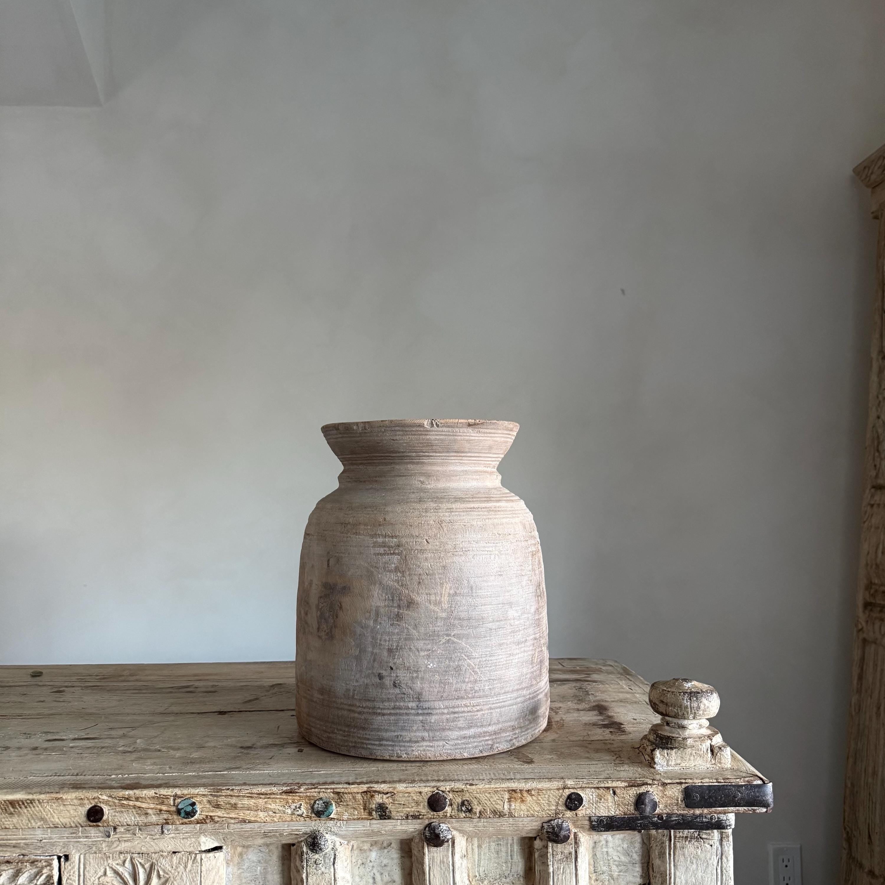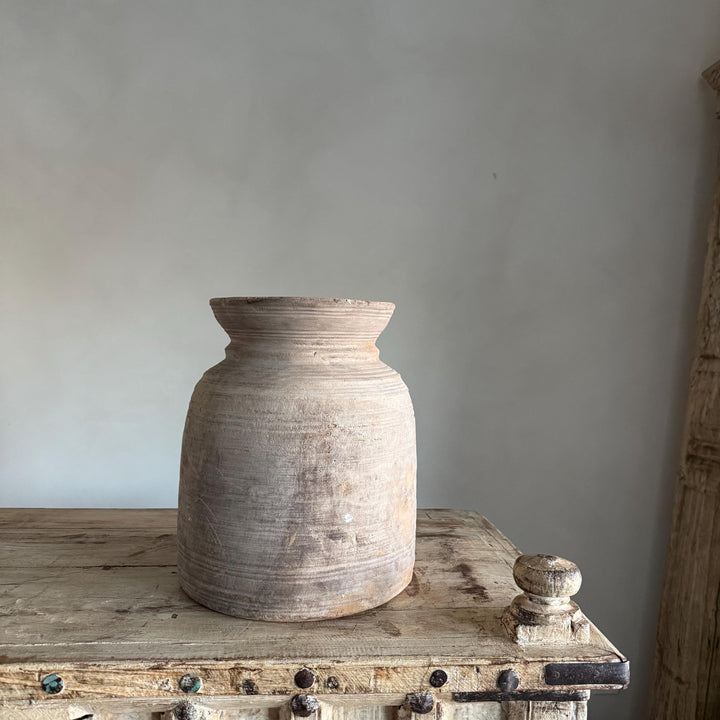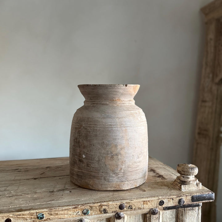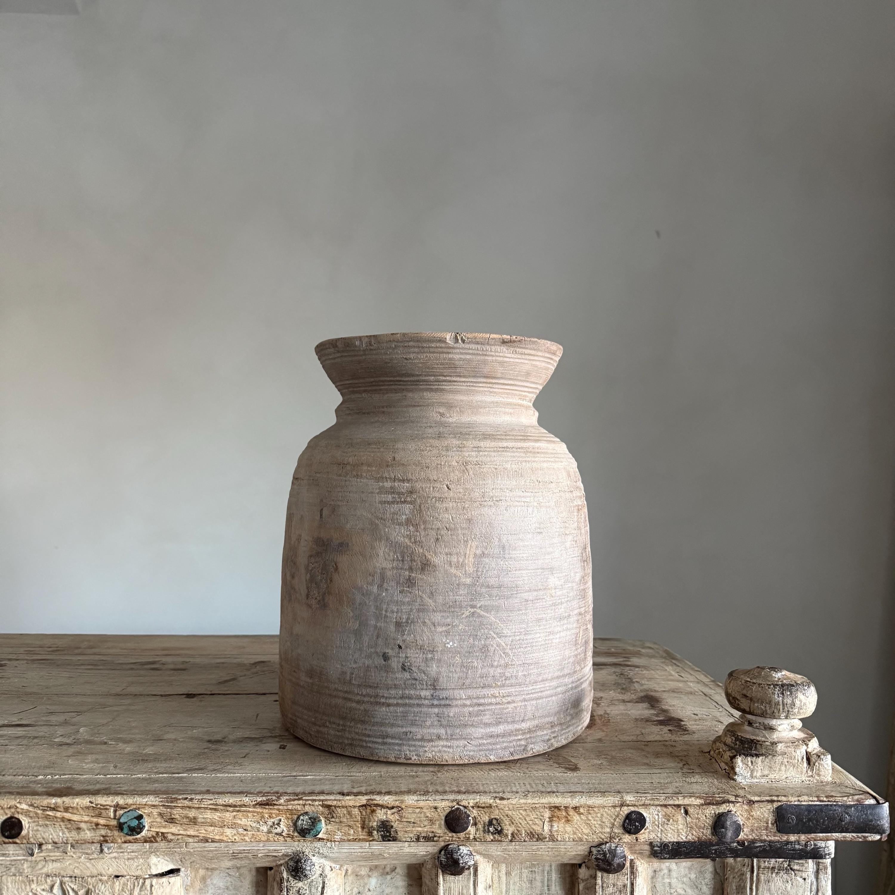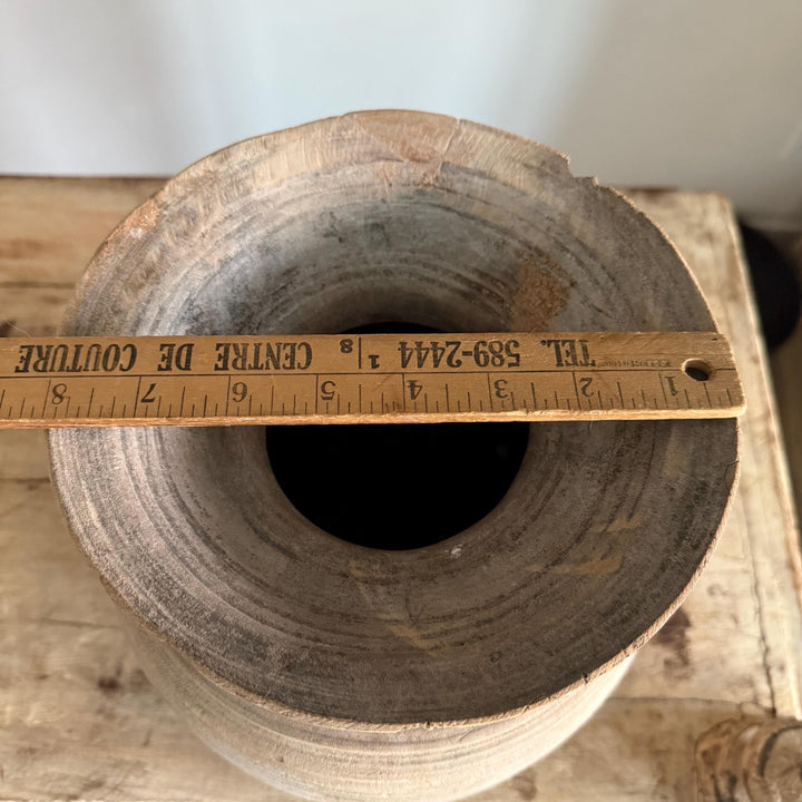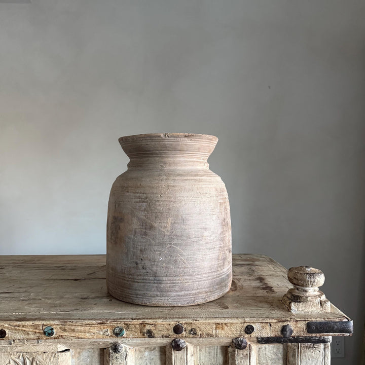 Large Antique Teak Wood Vase 12.5" | Vintage Bleached Vessel | Hand Carved Wabi Sabi Jar
