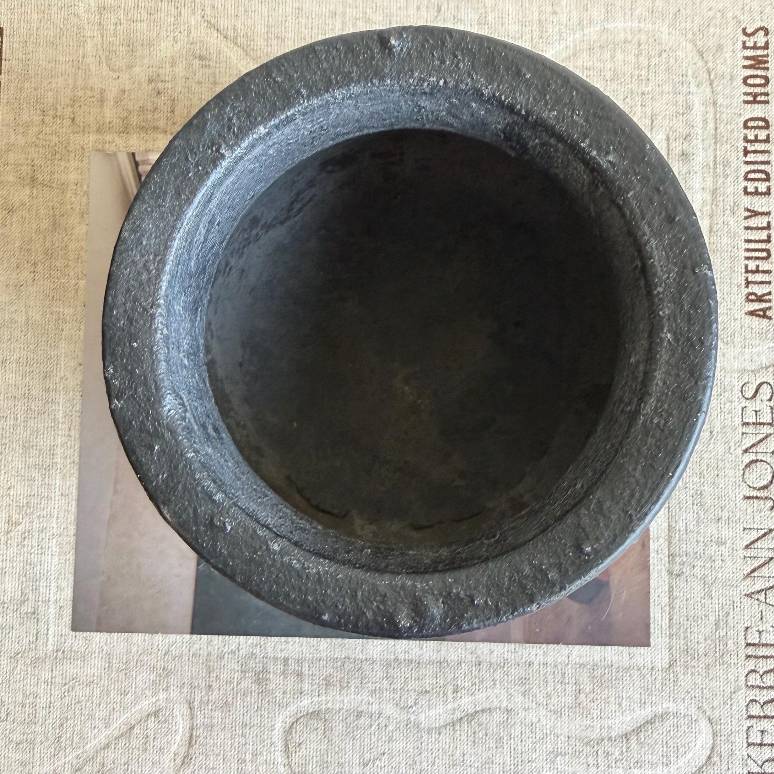 Crafted using traditional terracotta techniques, these vintage clay pots from Karnataka, India were handmade in the 1950s. They are rustic earthen vessels featuring a naturally aged patina and handcrafted imperfections that make each piece unique.