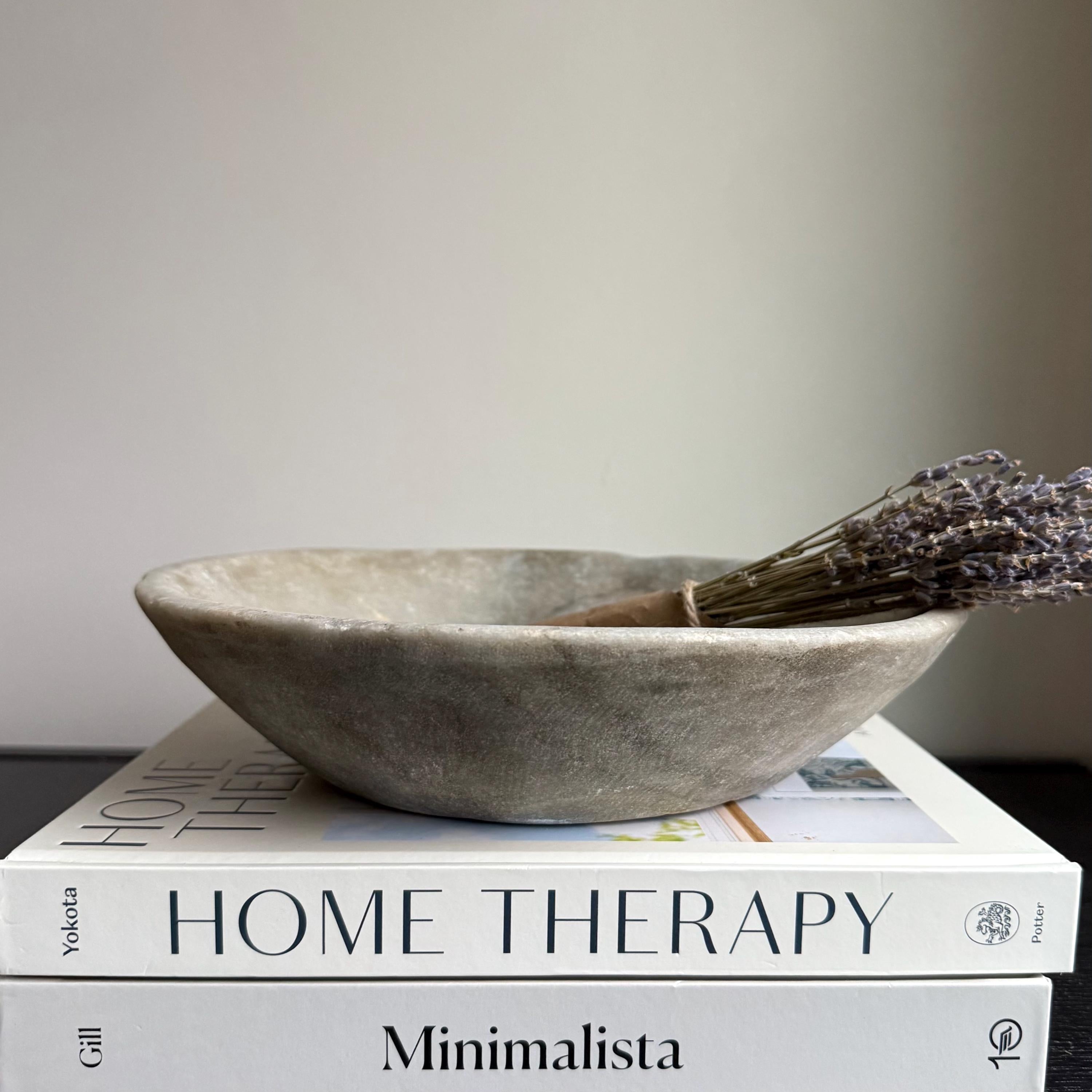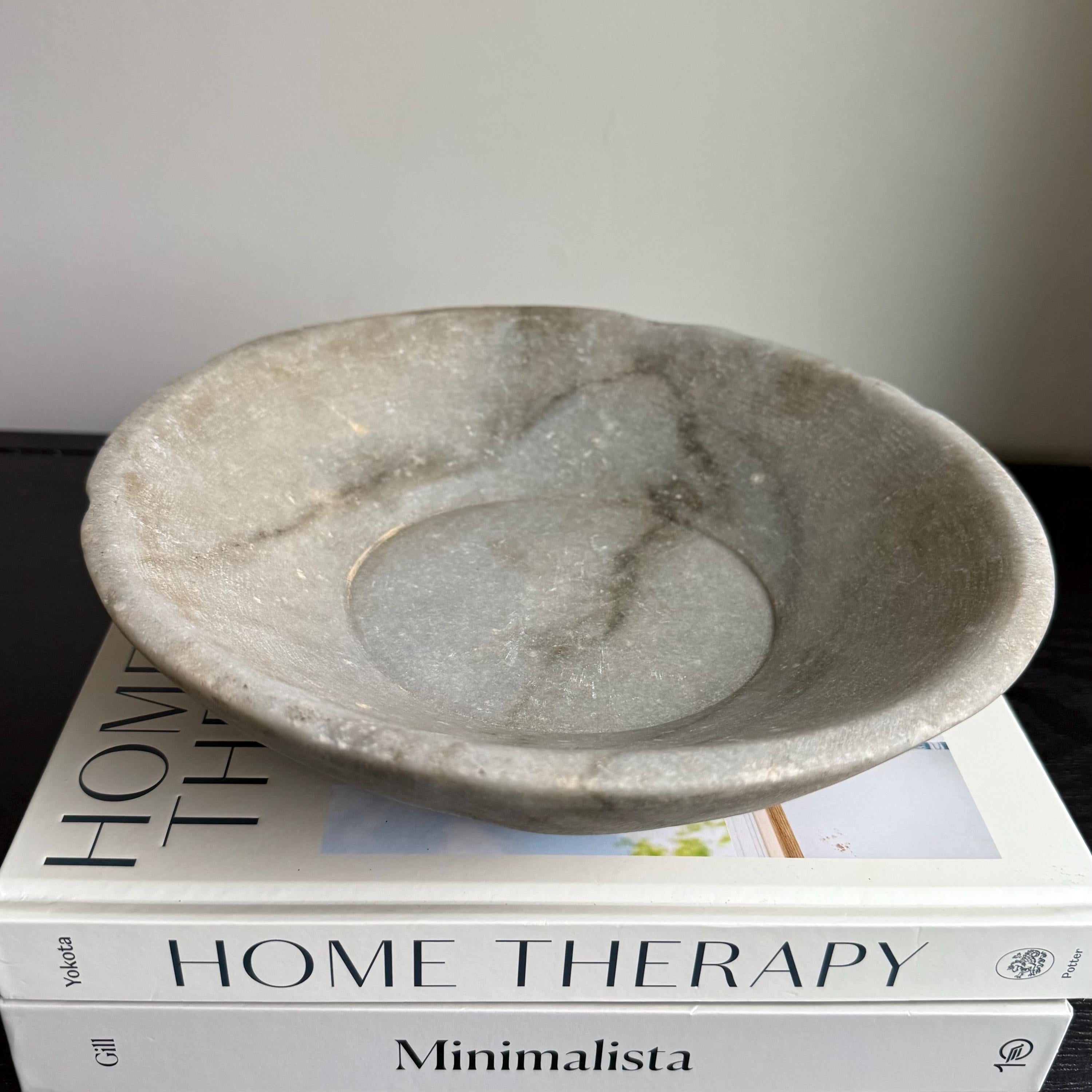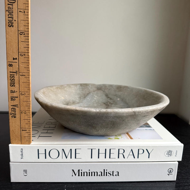 Vintage Hand-Carved Stone Bowl 9.2" | Rustic Marble Catchall Dish