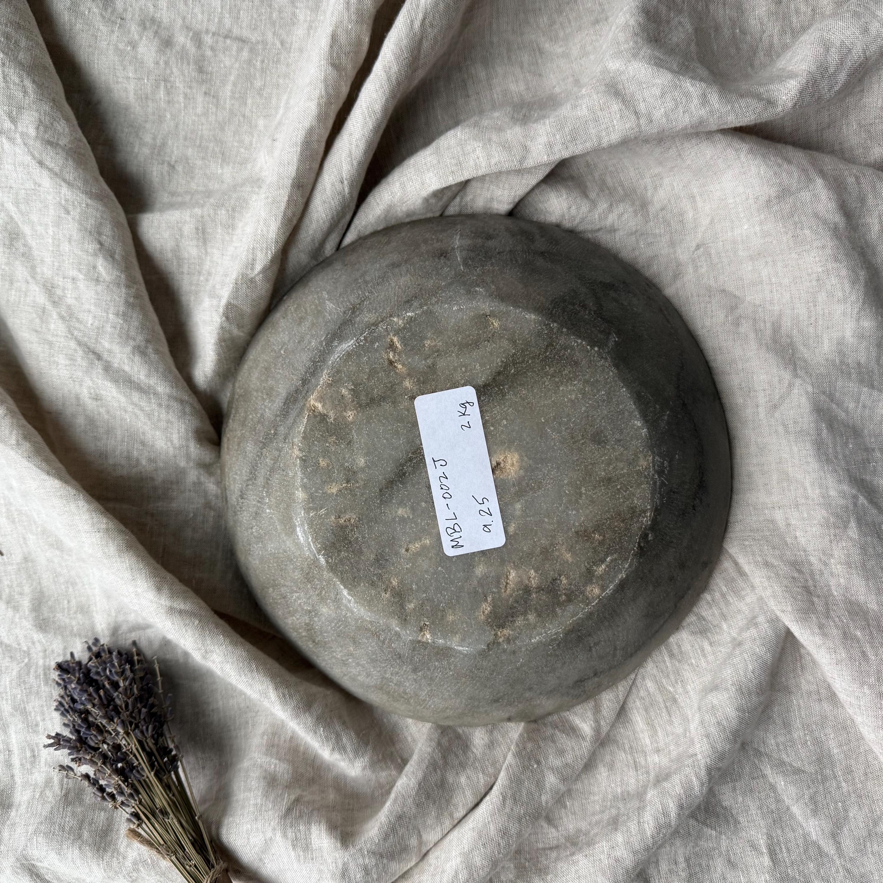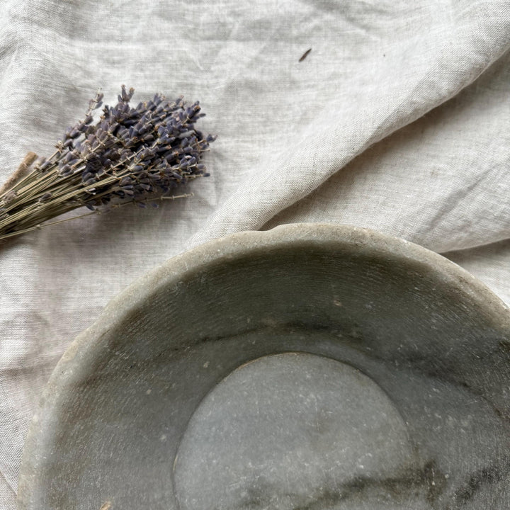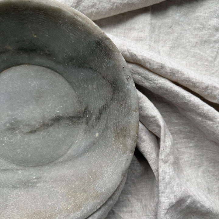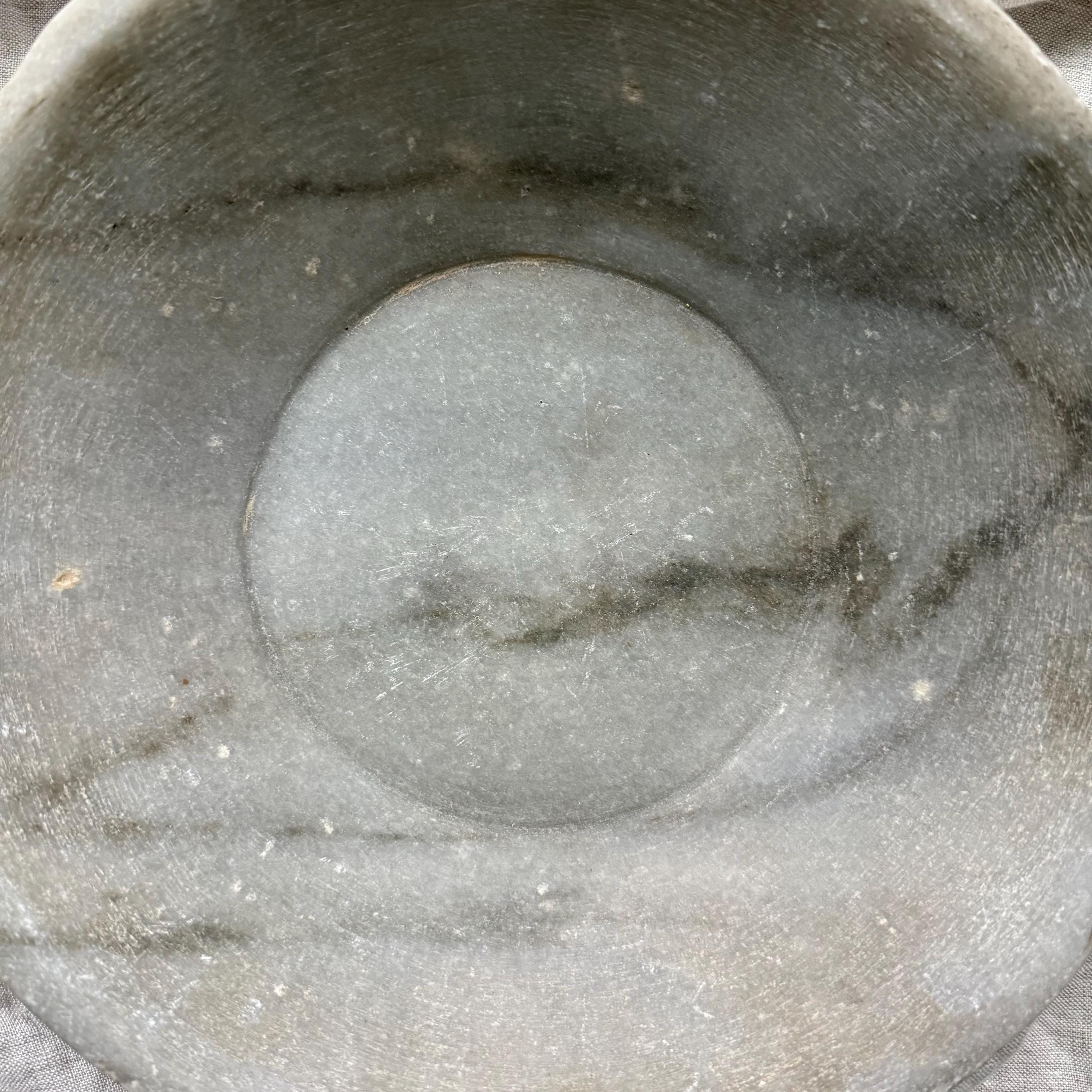 Vintage Hand-Carved Stone Bowl 9.2" | Rustic Marble Catchall Dish