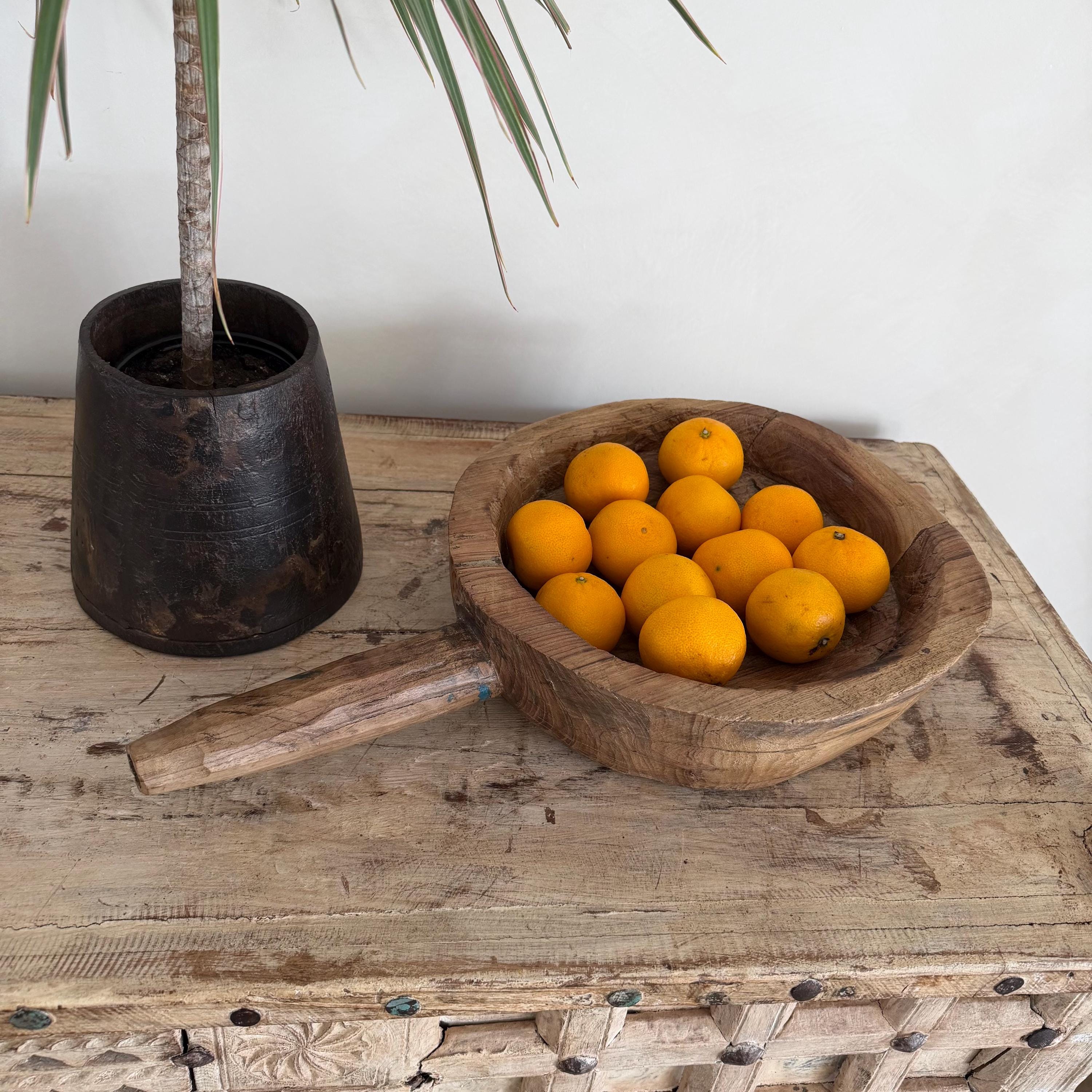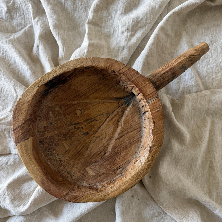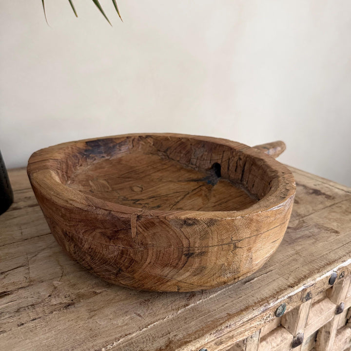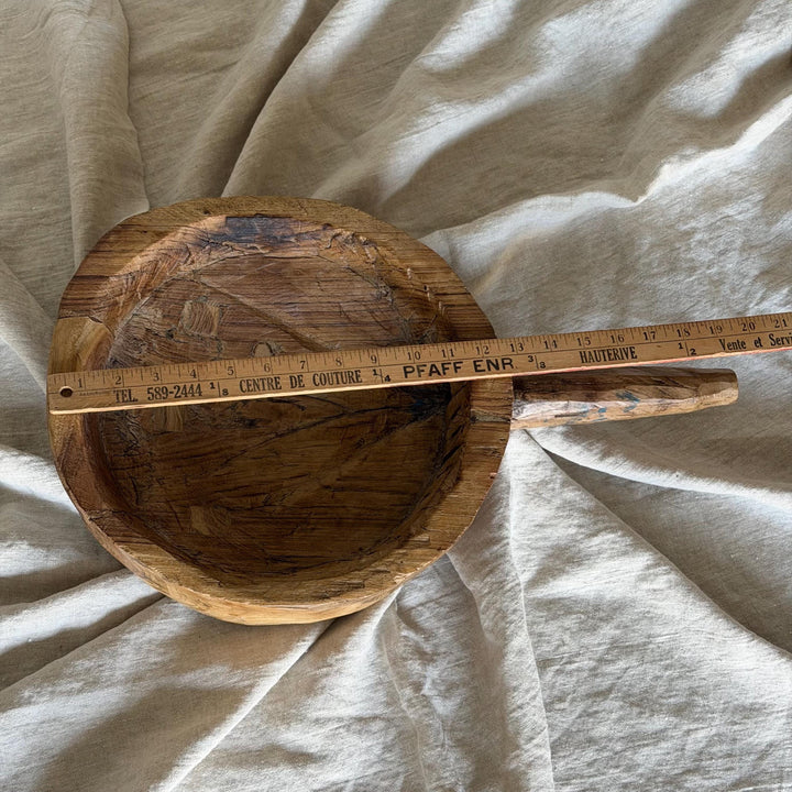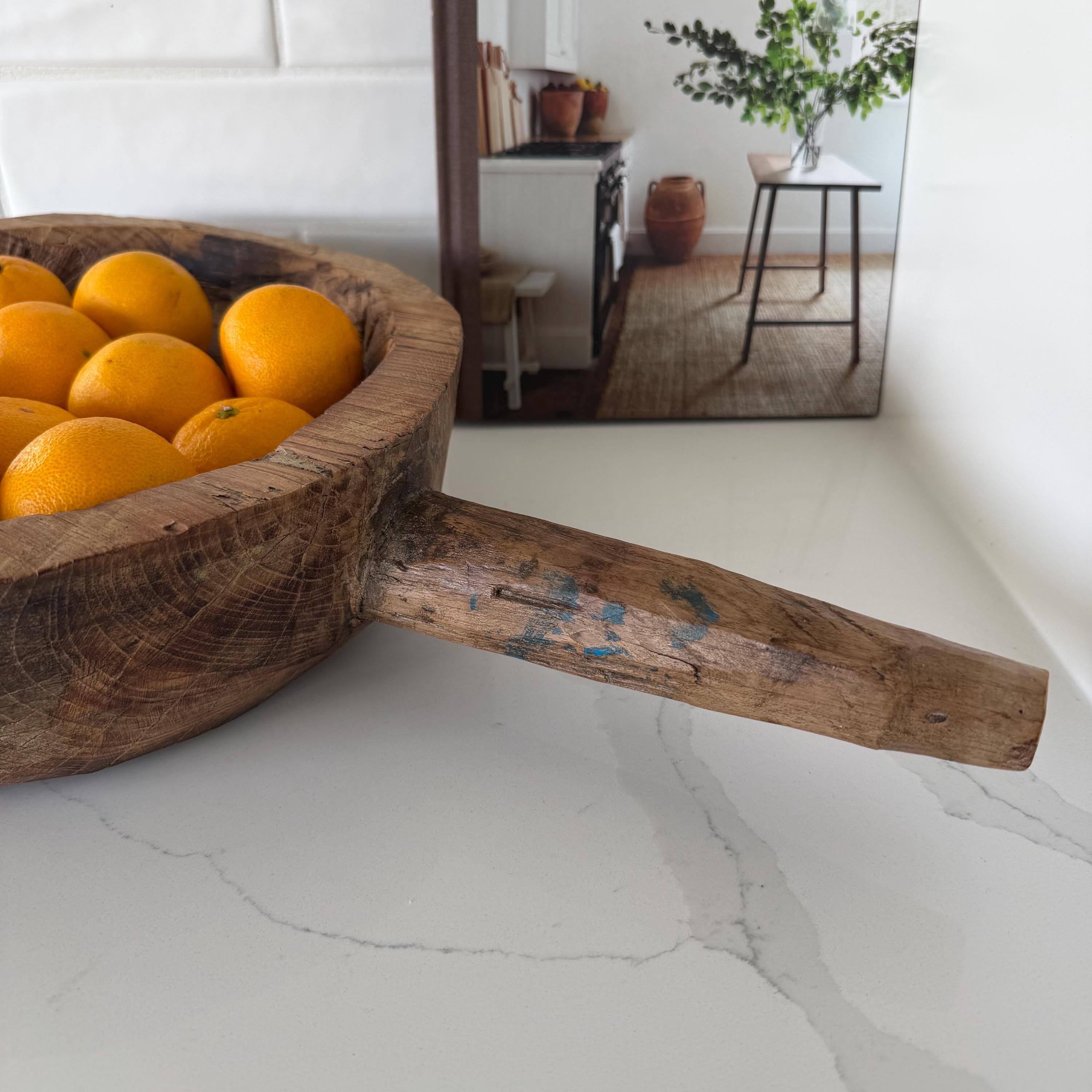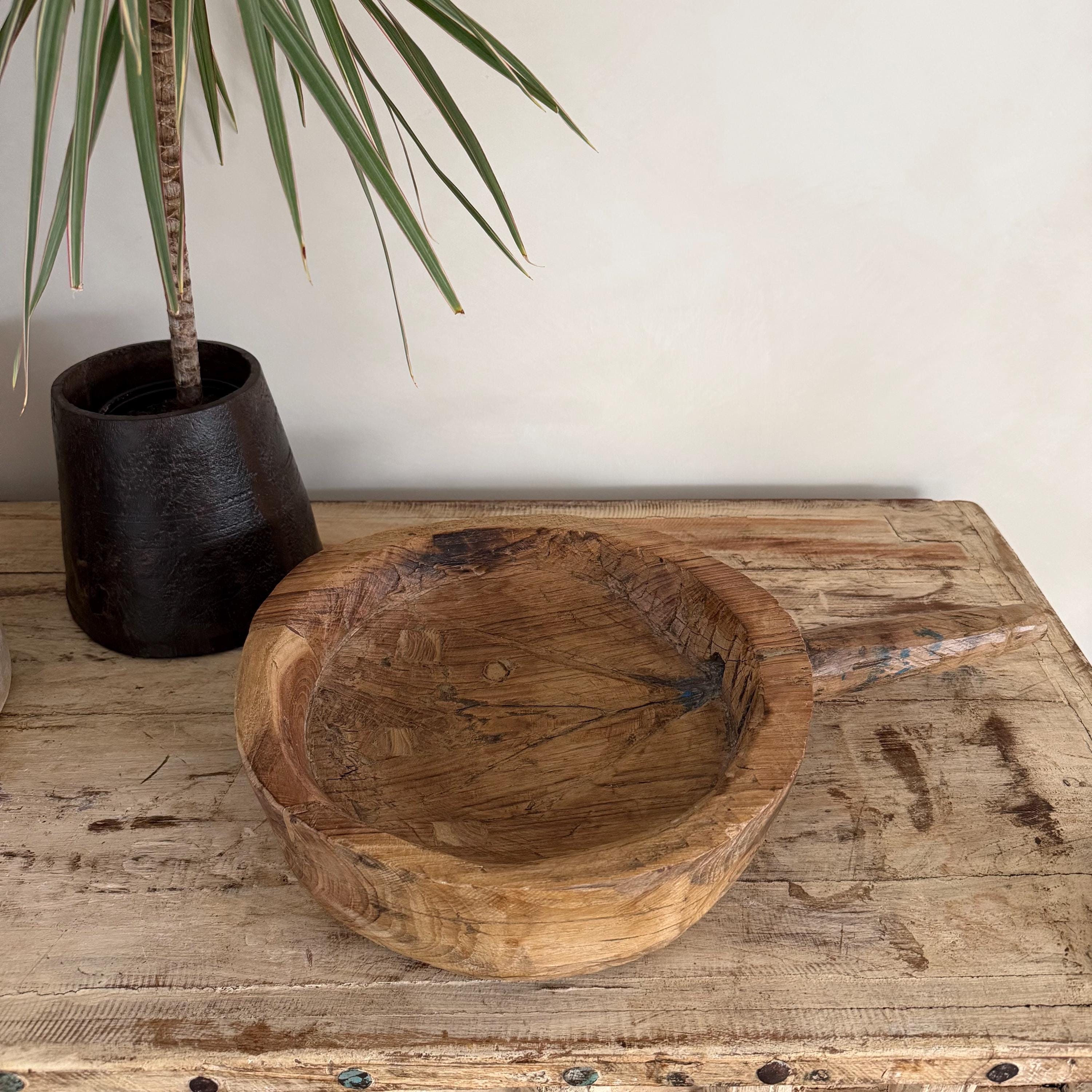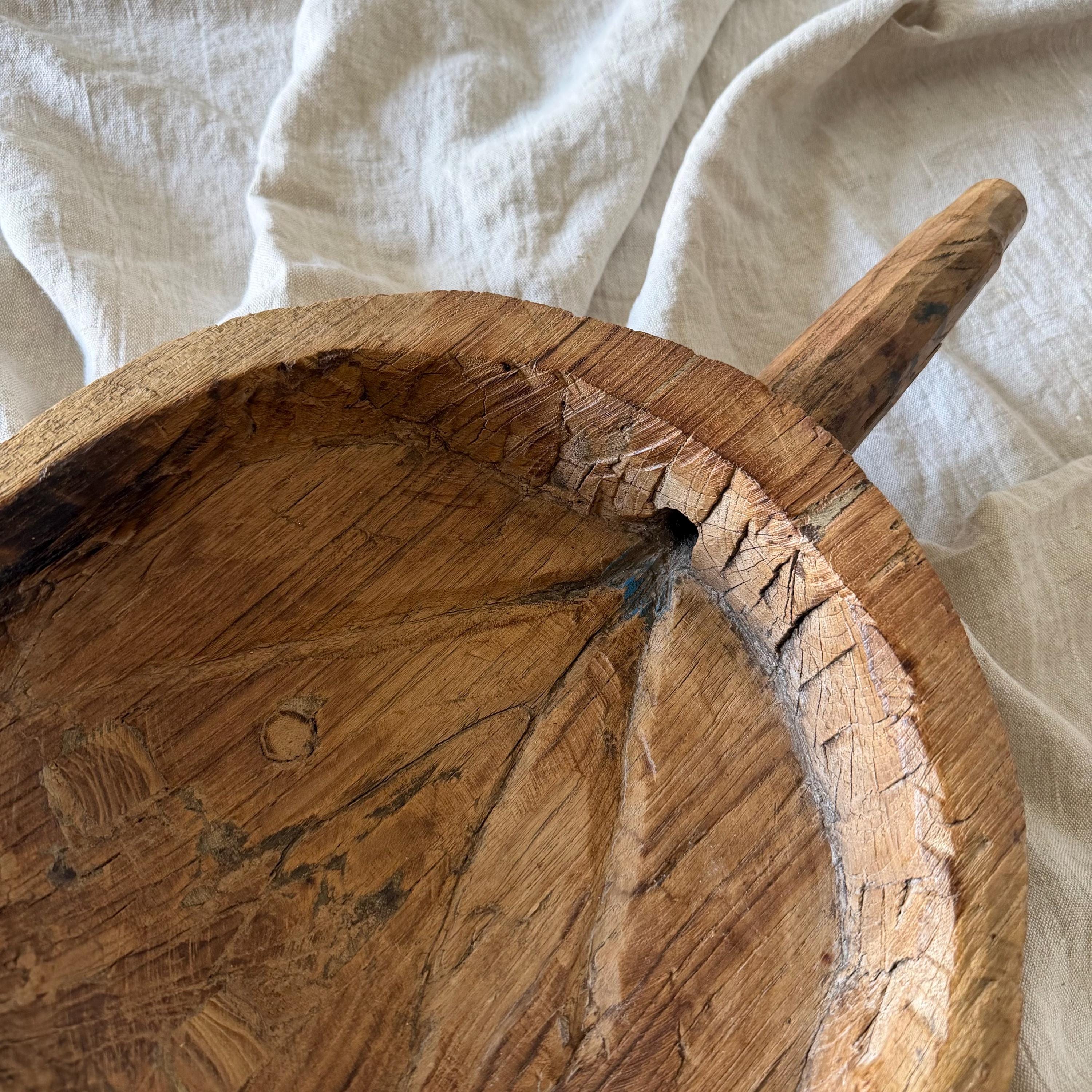 Vintage Hand Carved Teak Wood Dough Bowl with Handle | Rustic Parat Tray 19"