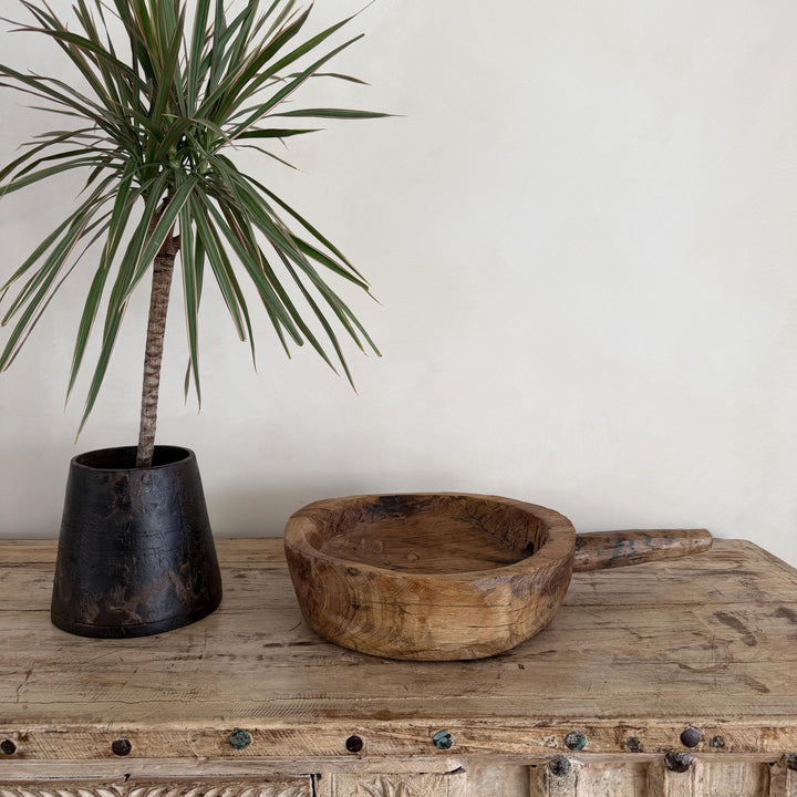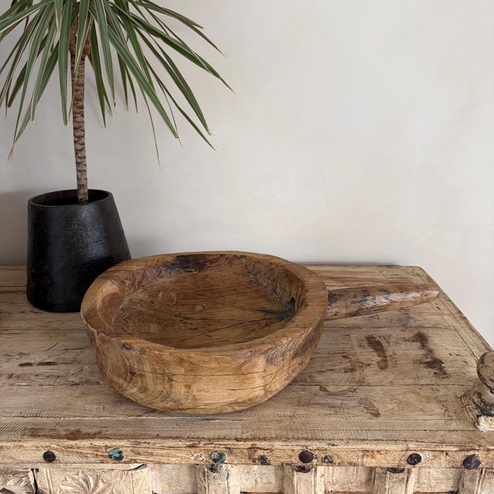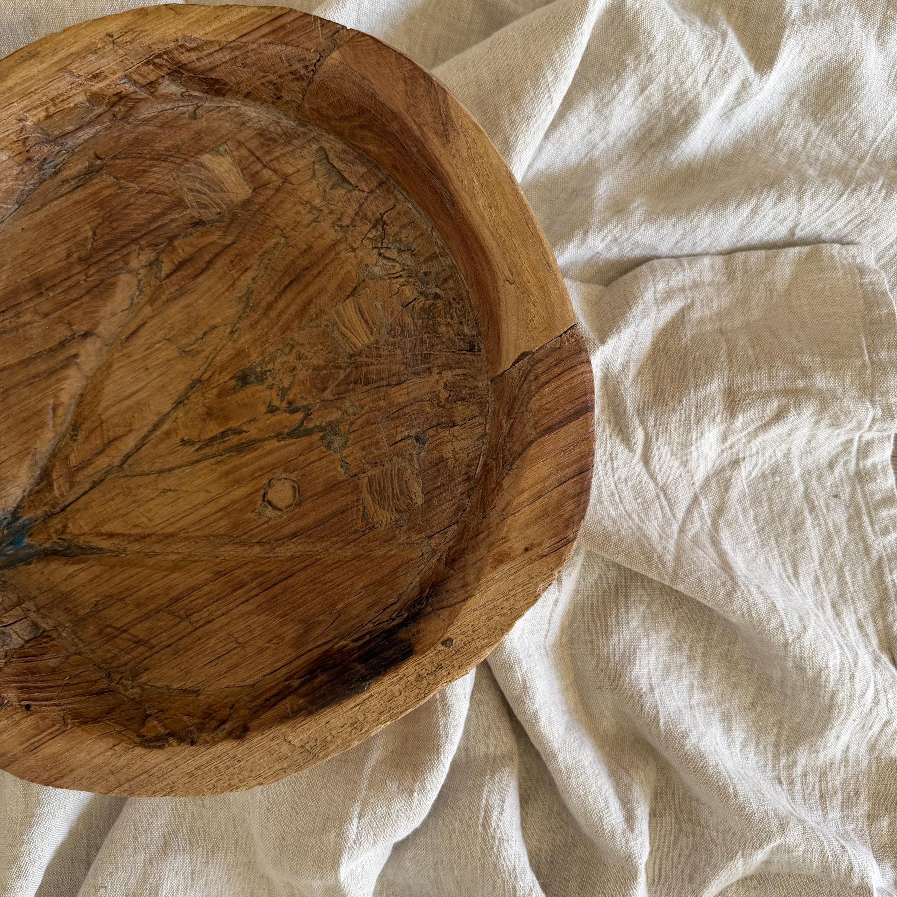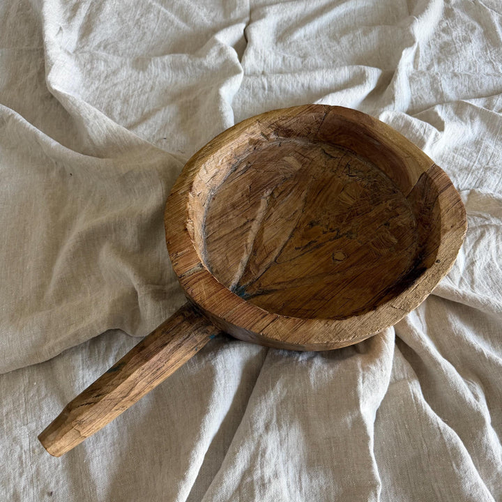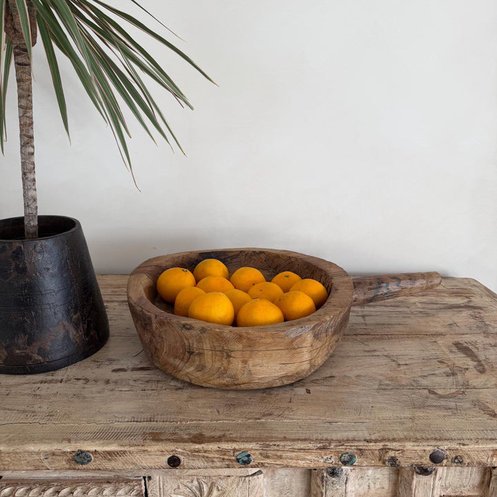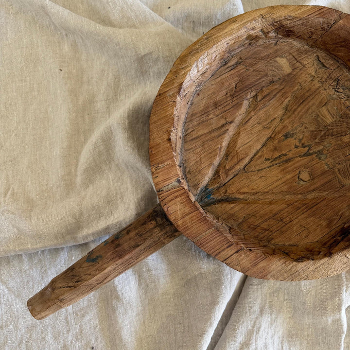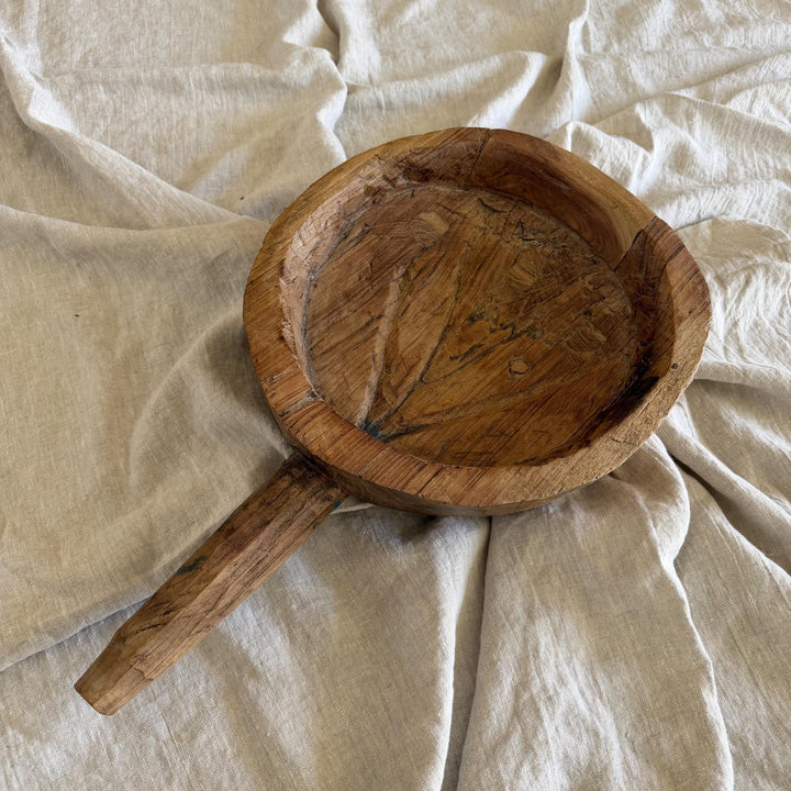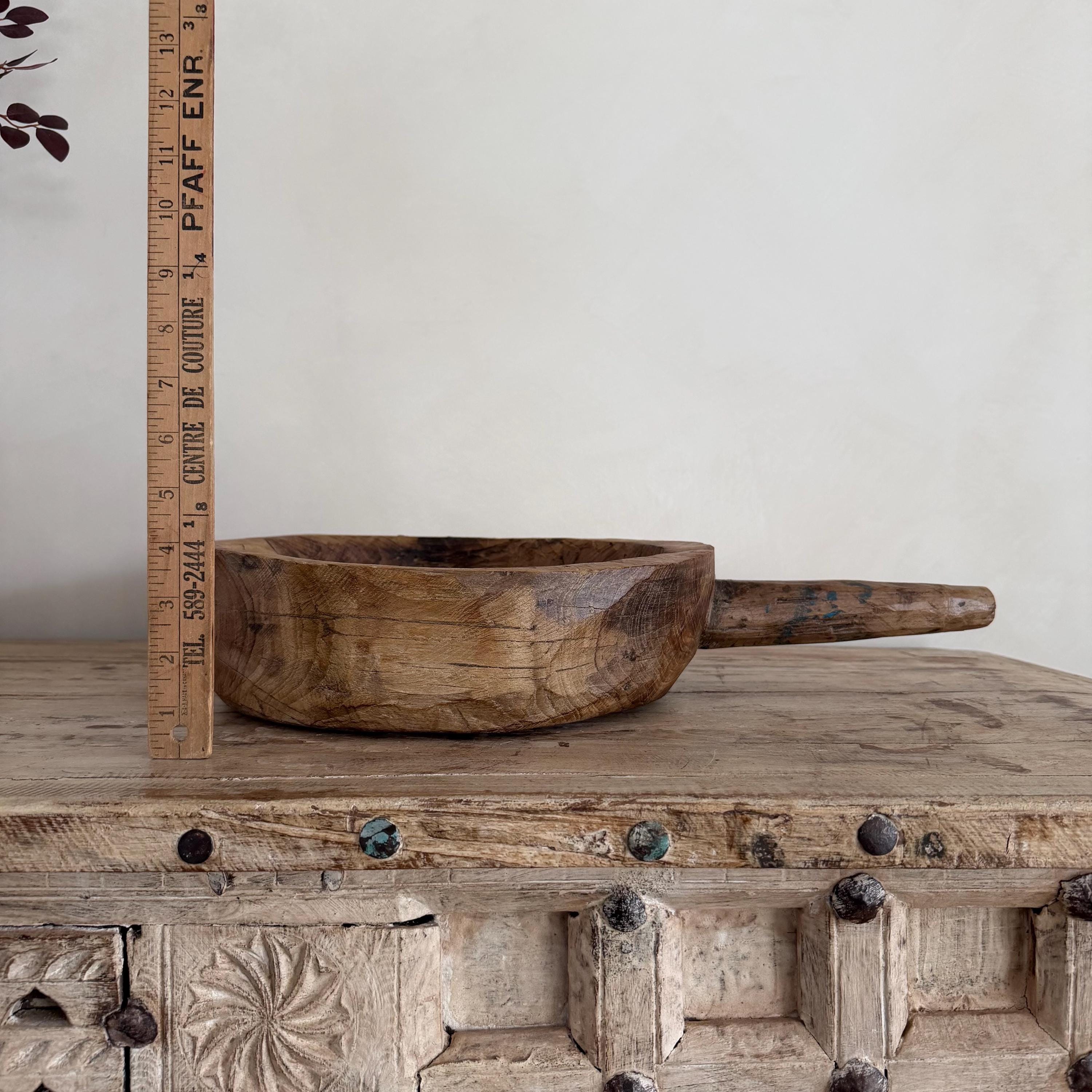 Vintage Hand Carved Teak Wood Dough Bowl with Handle | Rustic Parat Tray 19"