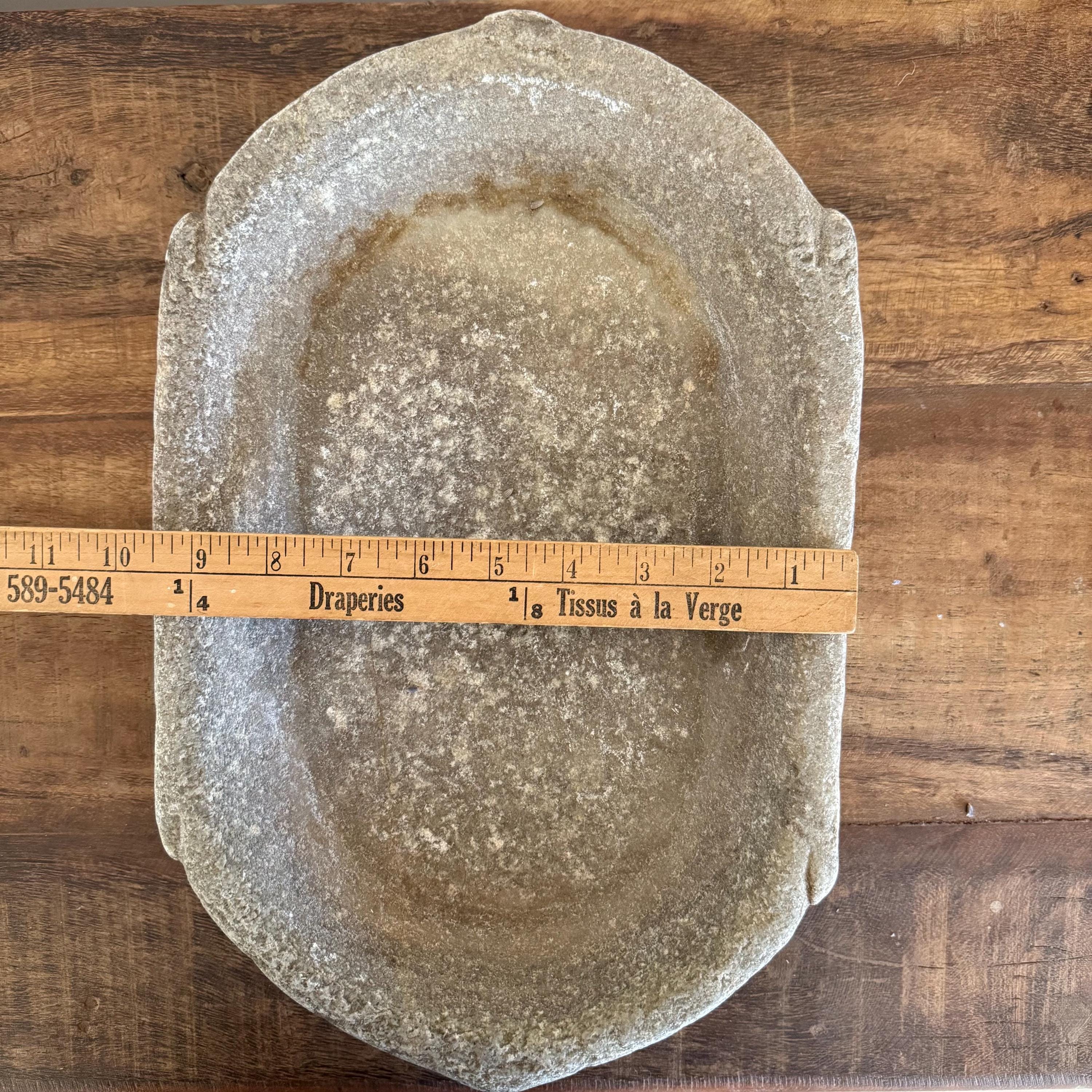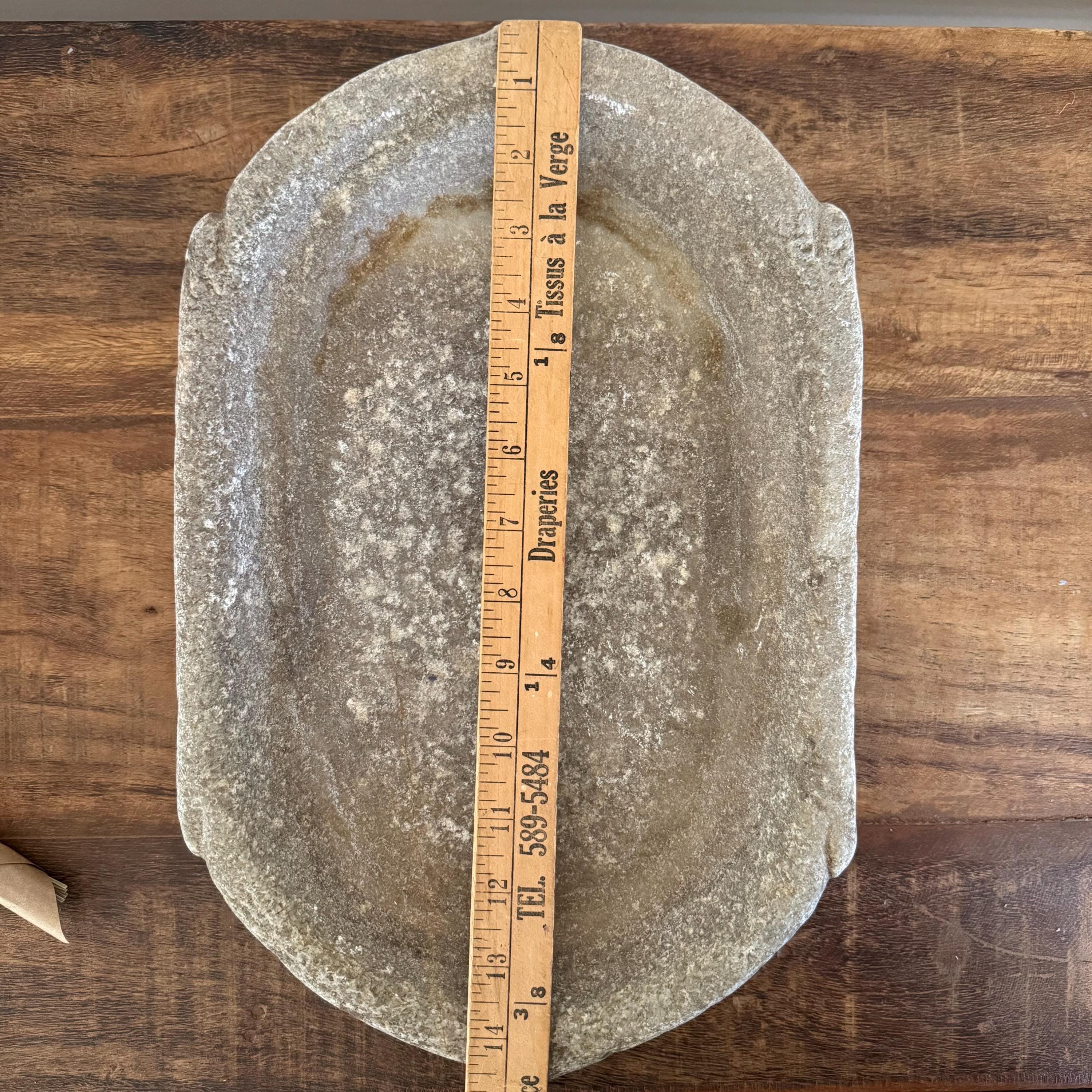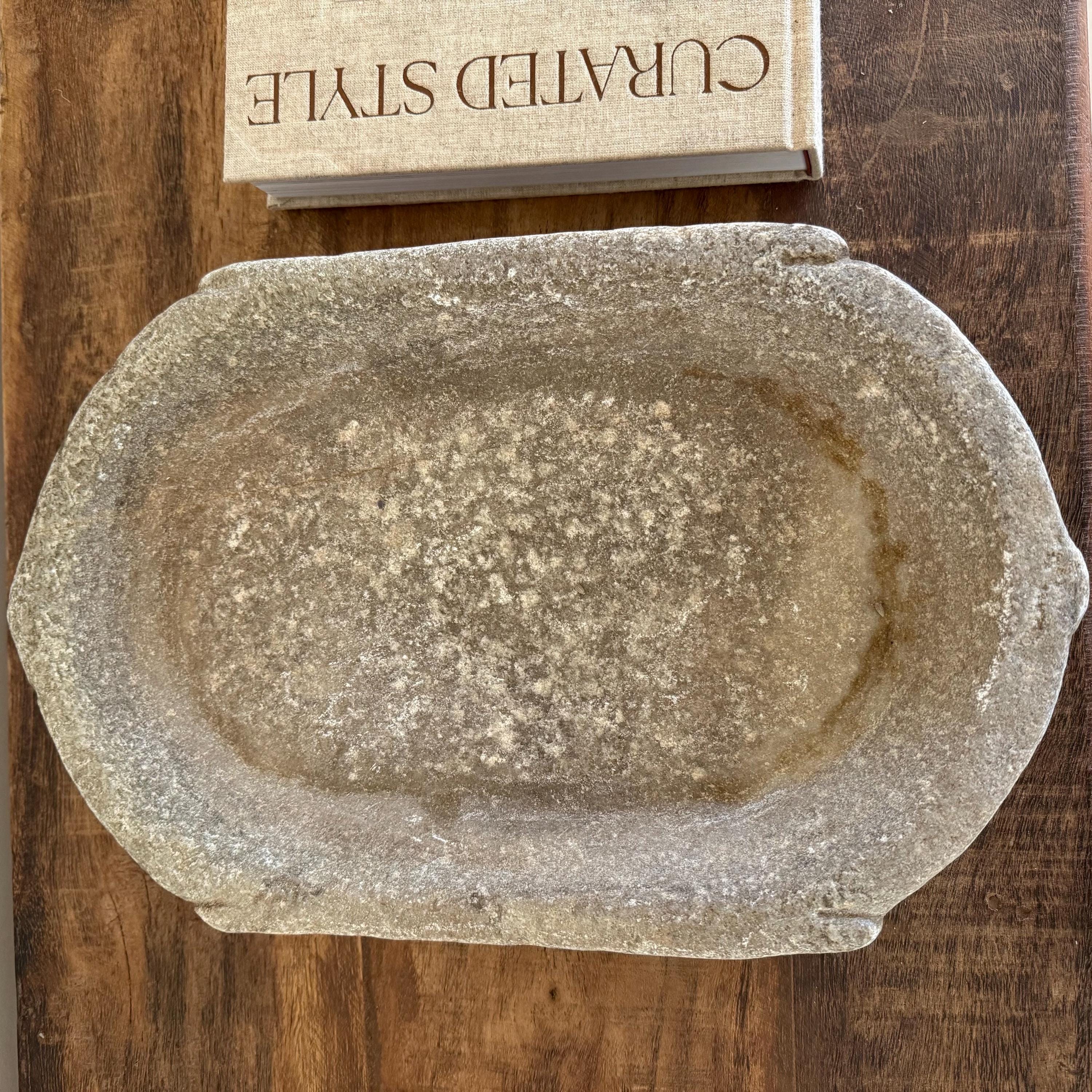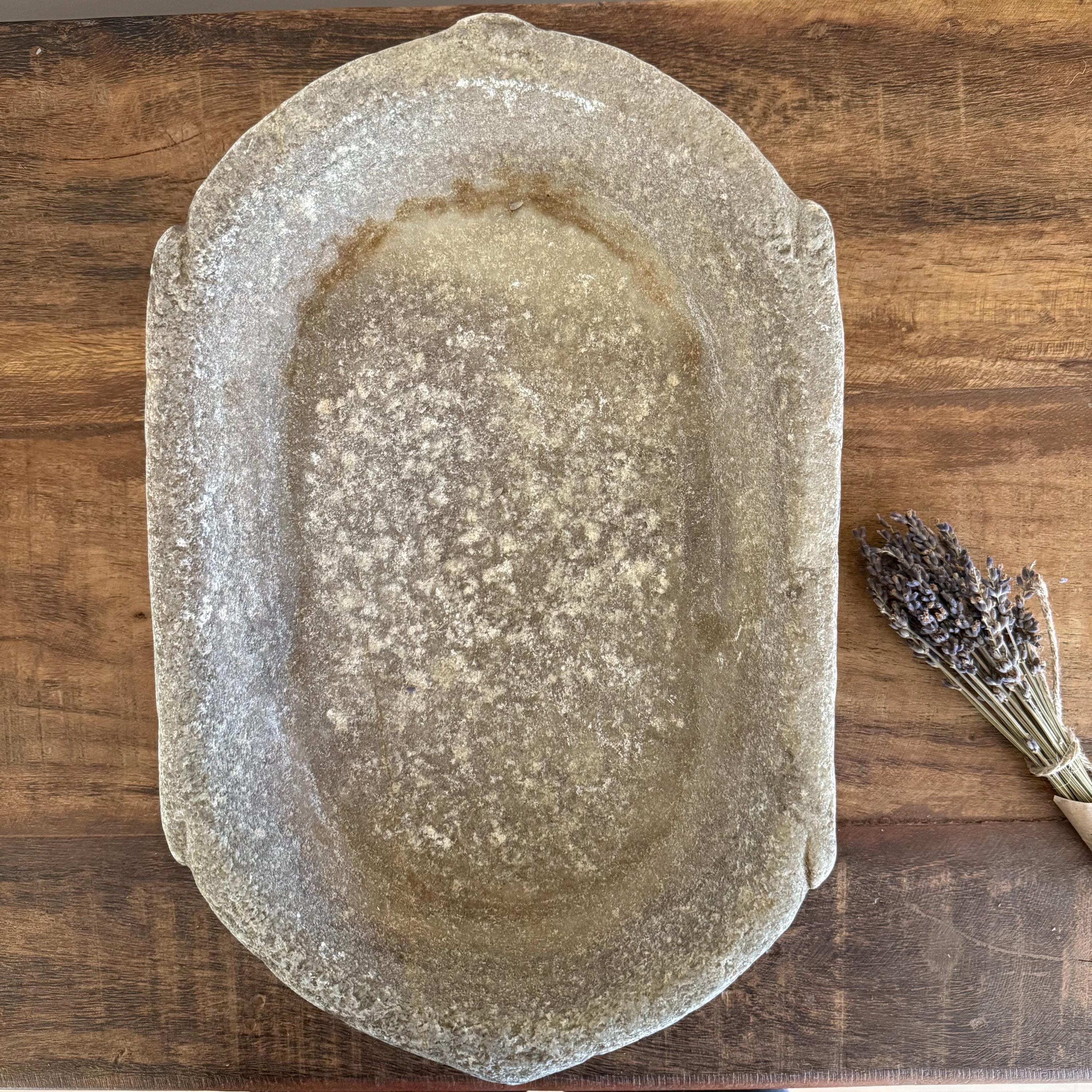 Vintage Marble Kharal Stone Tray, Antique Limestone Carved Oval Tray, Primitive Marble Centerpiece