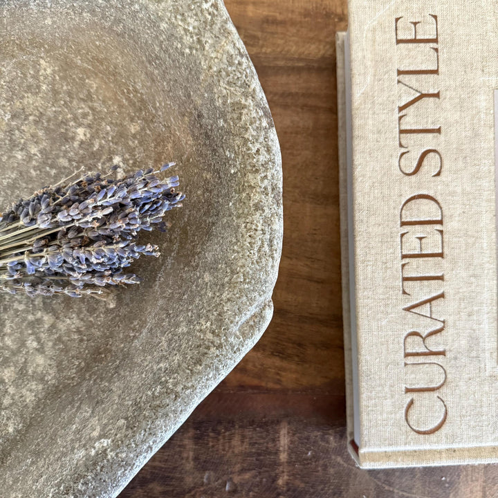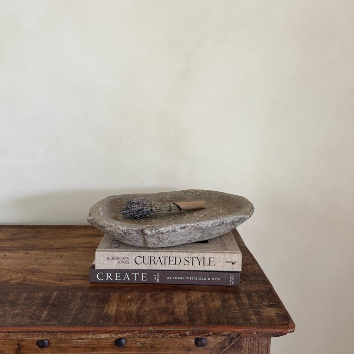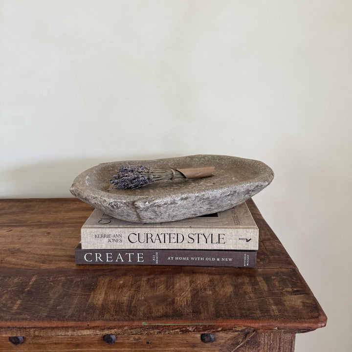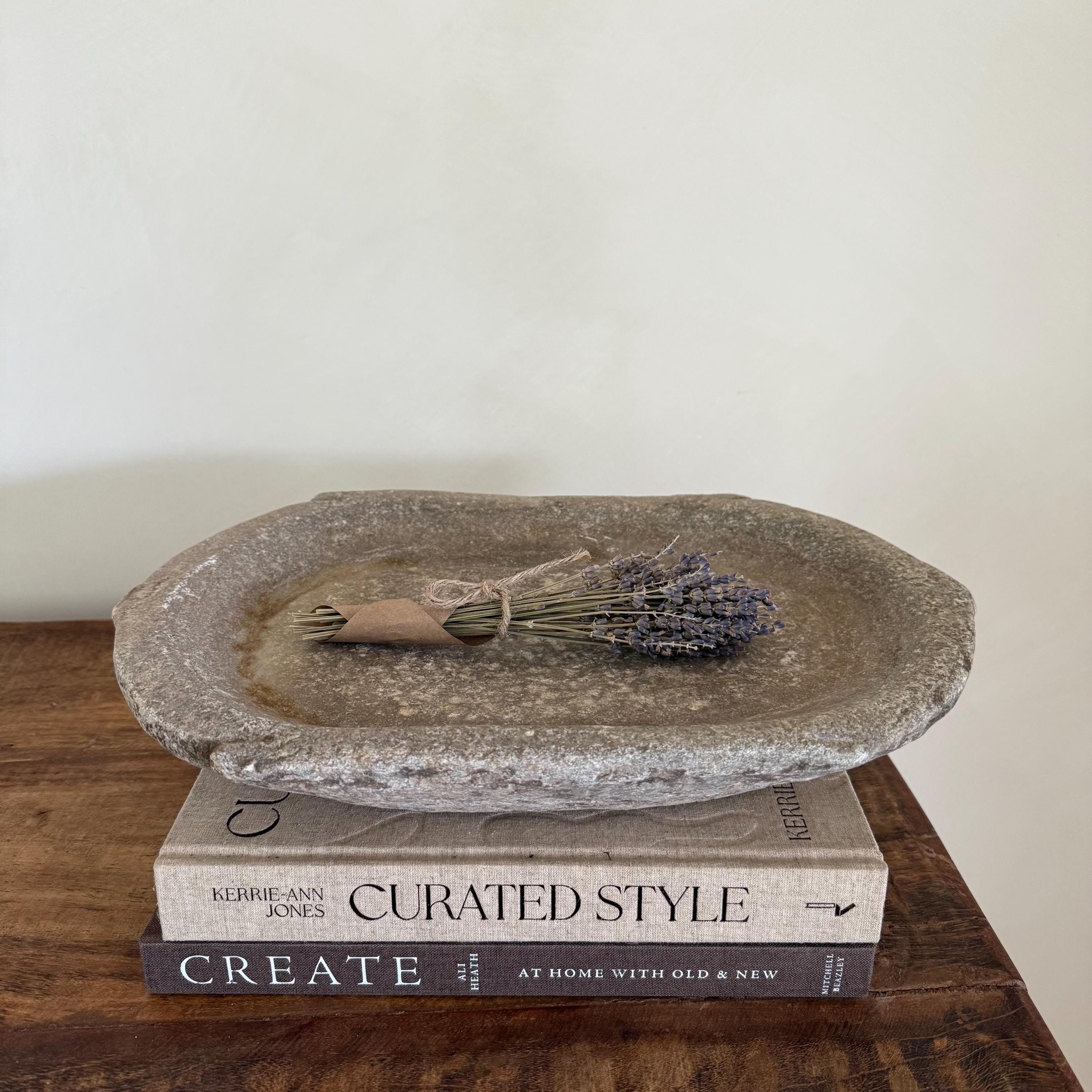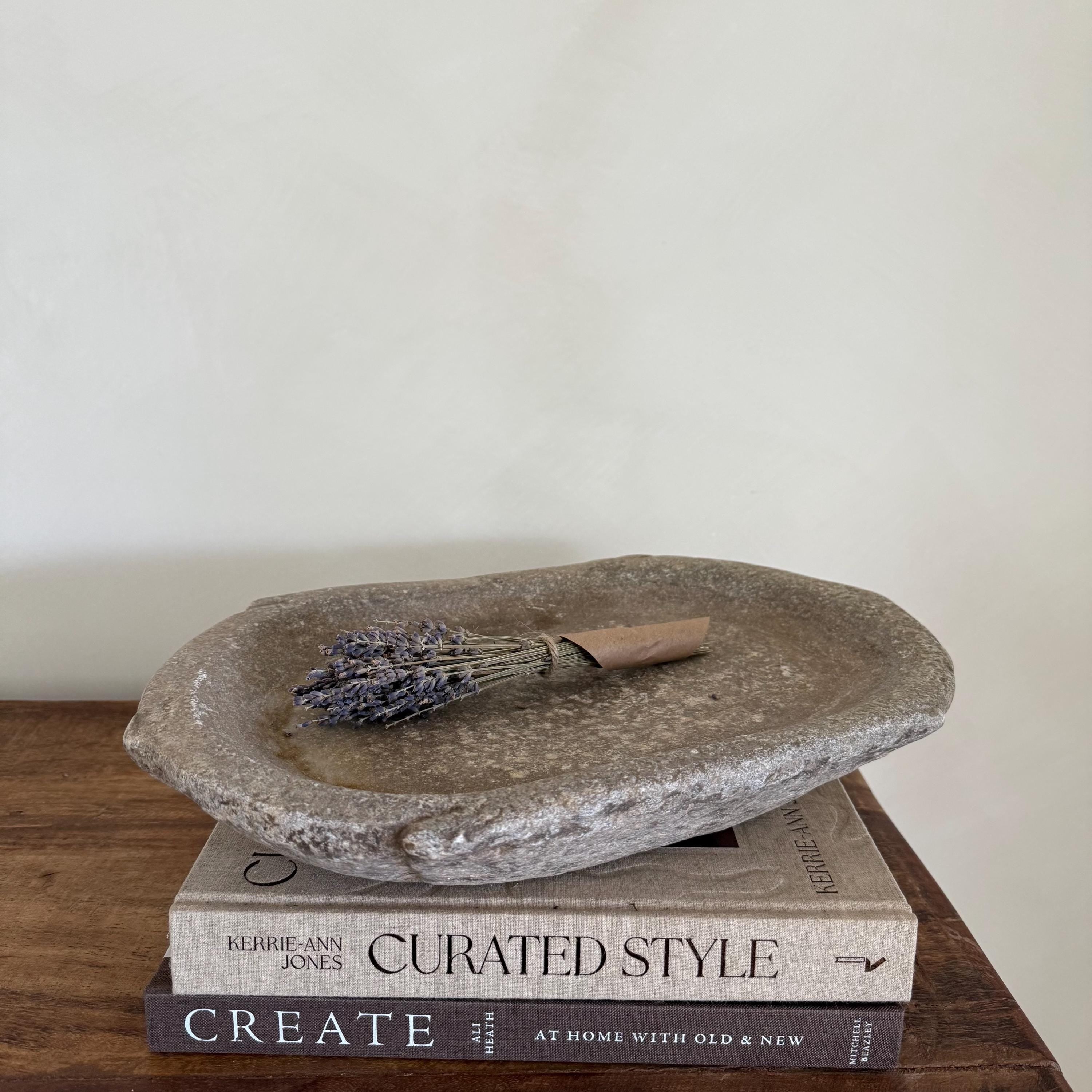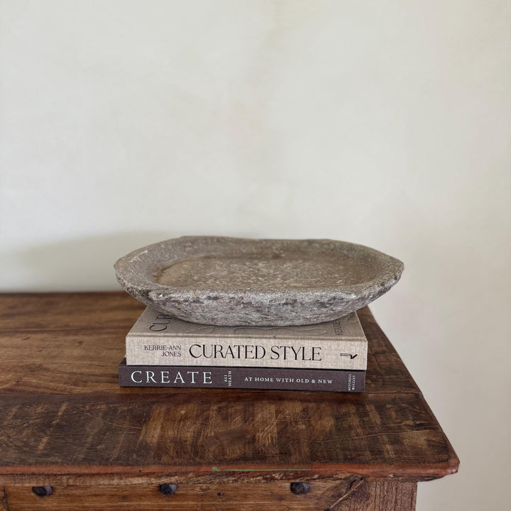 Vintage Marble Kharal Stone Tray, Antique Limestone Carved Oval Tray, Primitive Marble Centerpiece