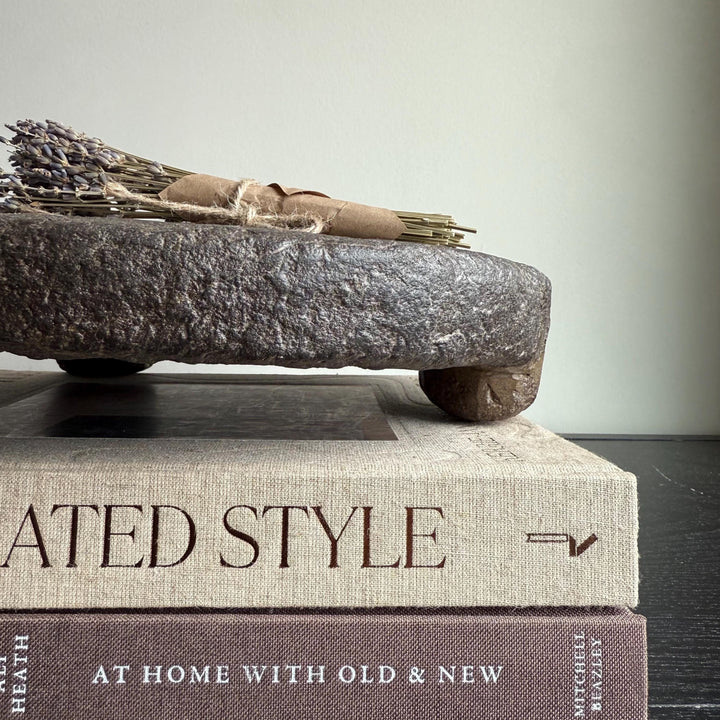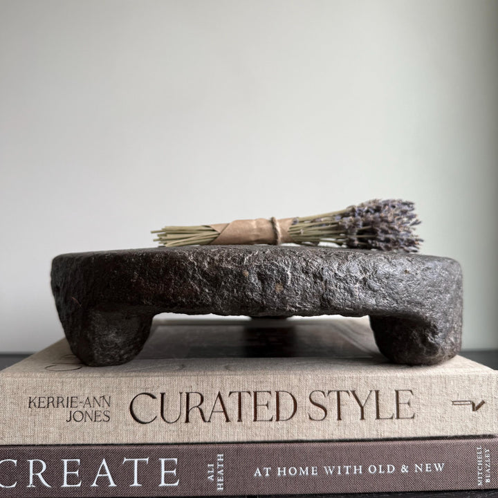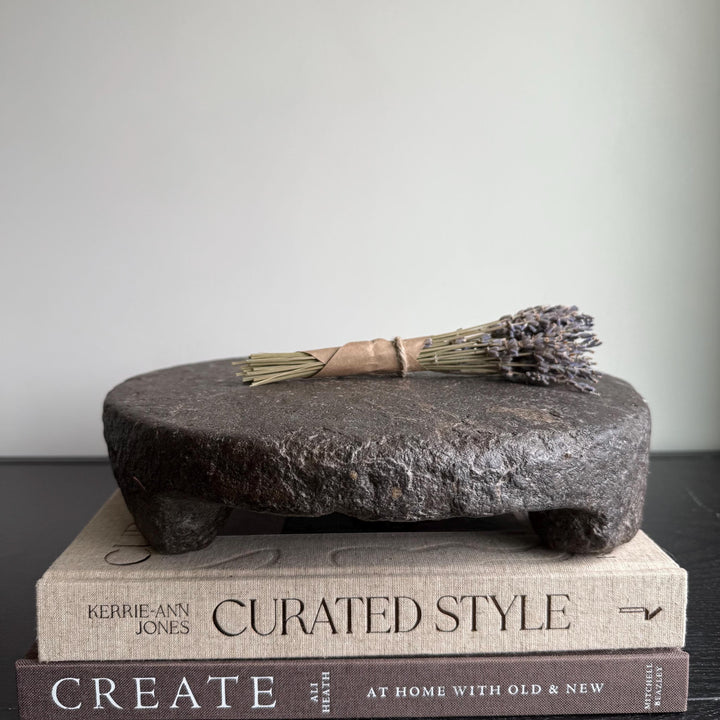 Once used in traditional Indian kitchens for rolling flatbread, this stone riser now serve as a timeless accent for styling and décor.