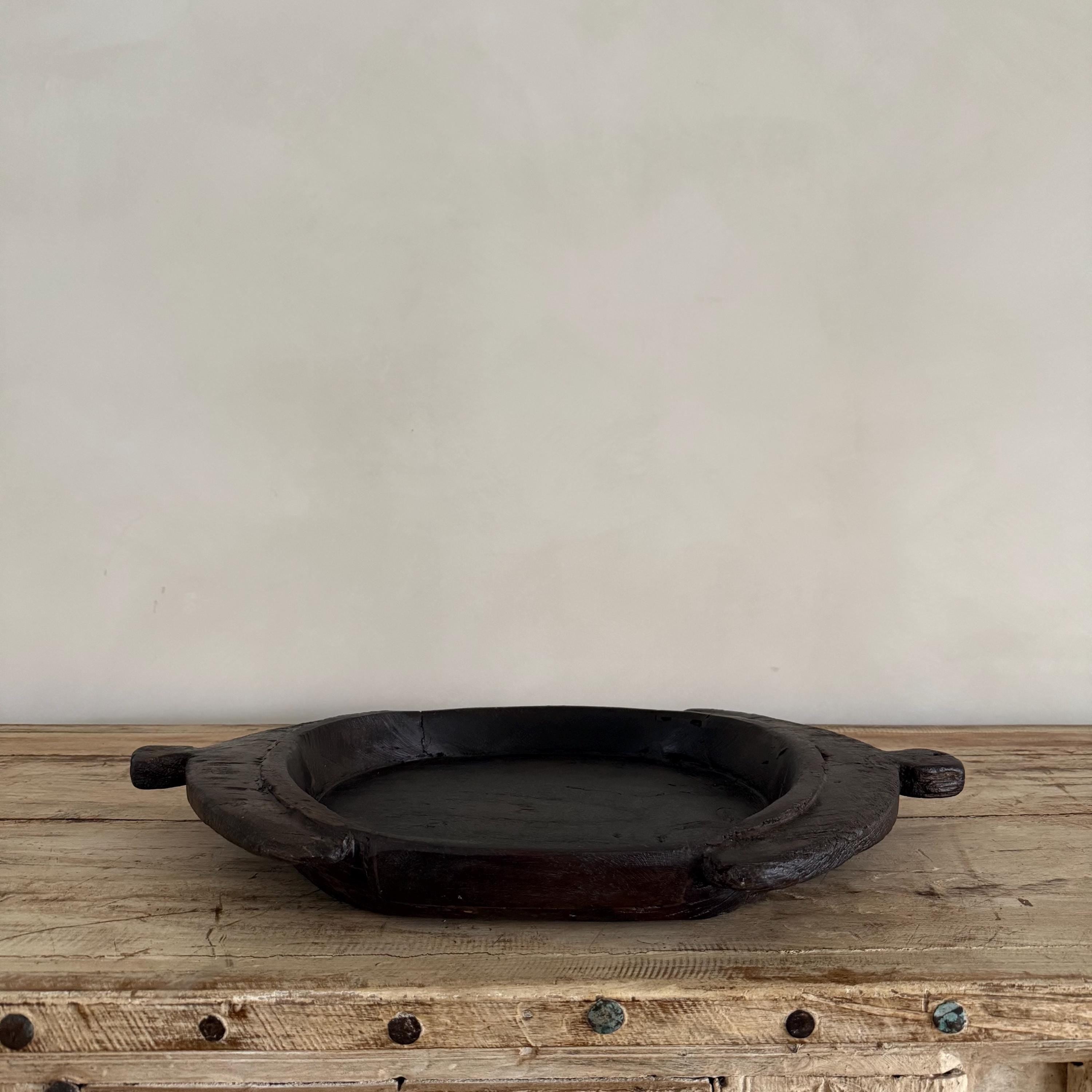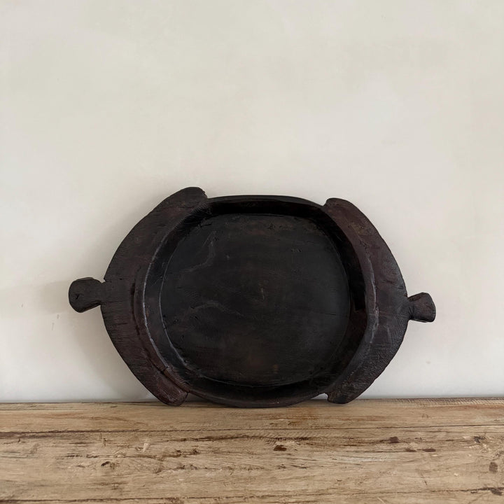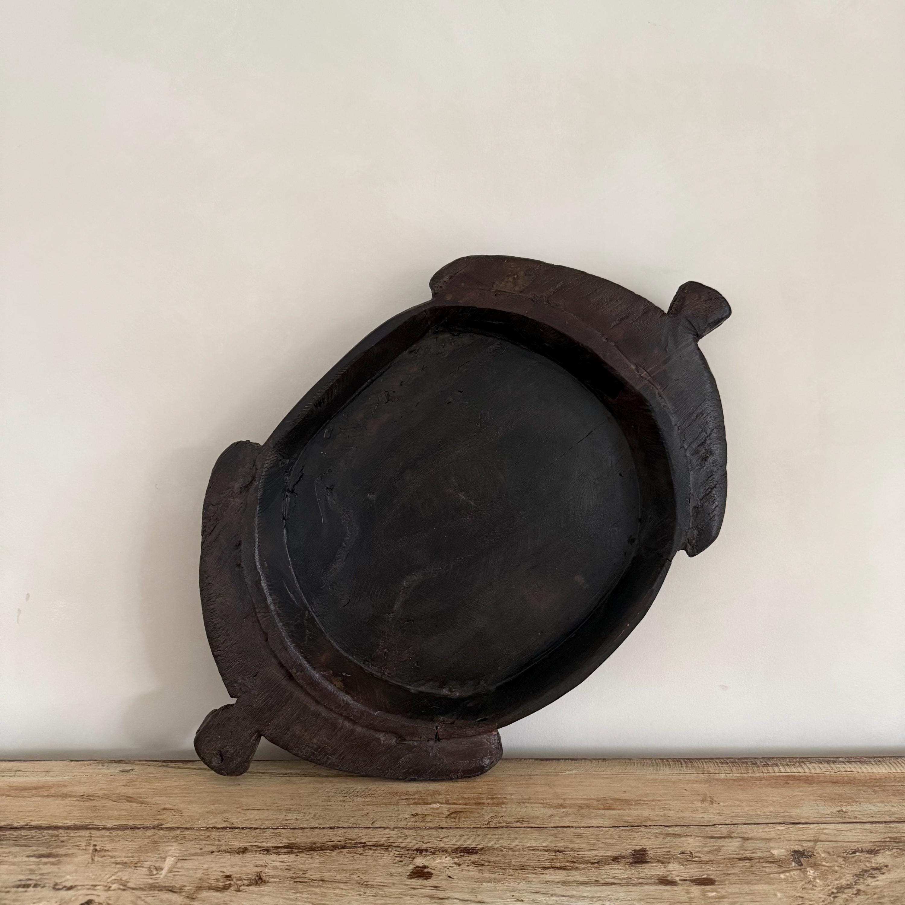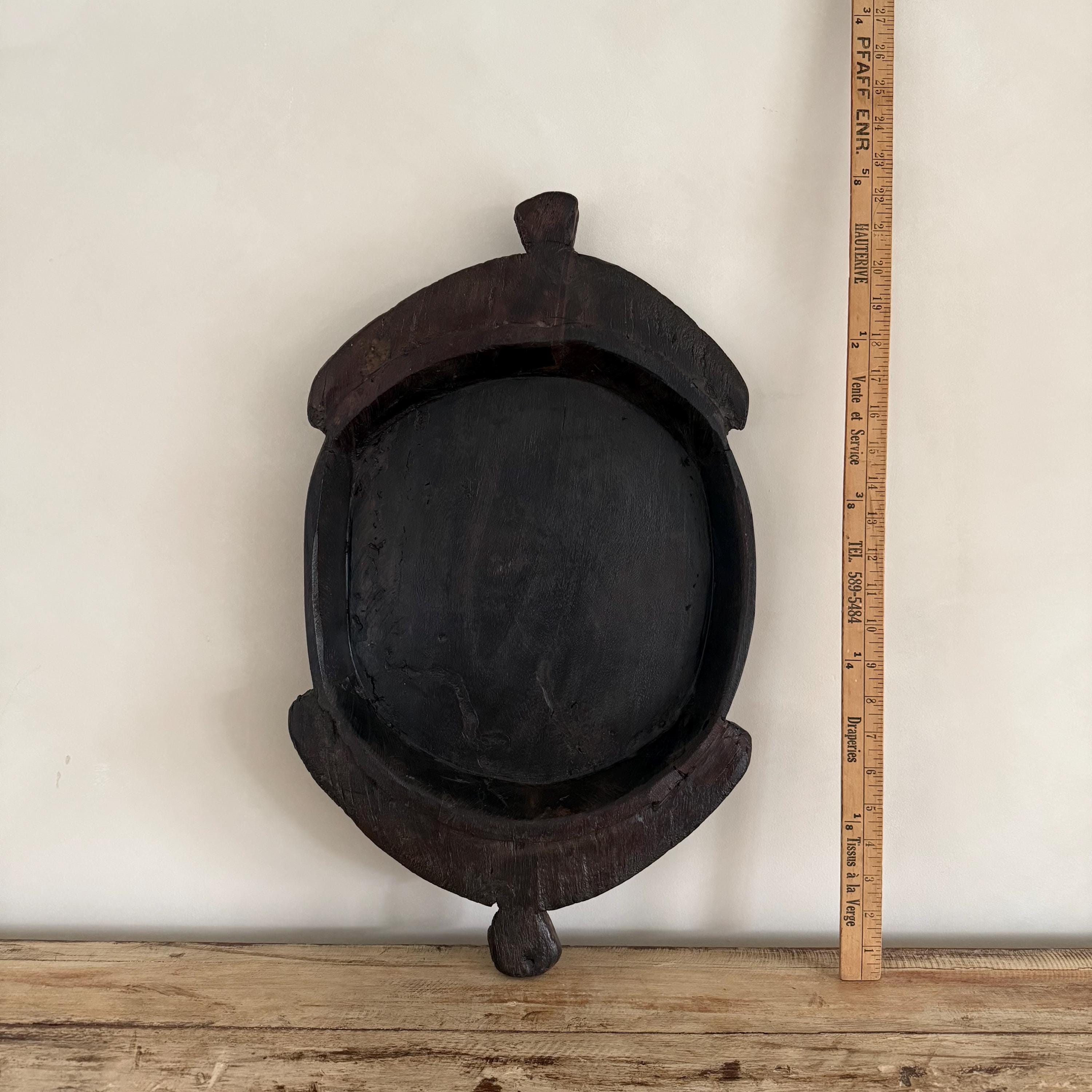 Vintage Teak Wood Dough Bowl | Dark Rustic Parat Tray 22