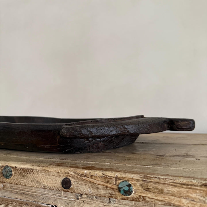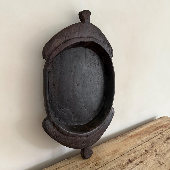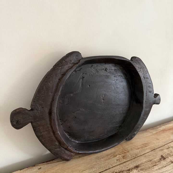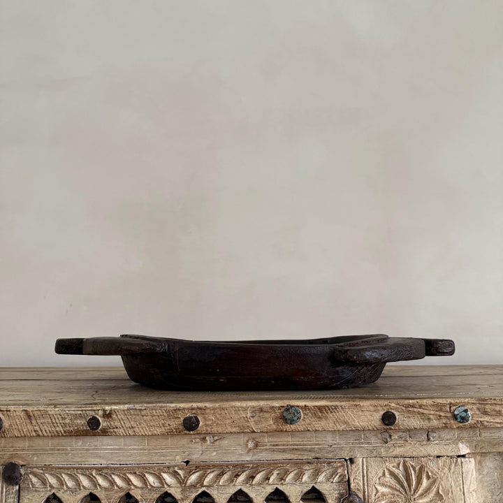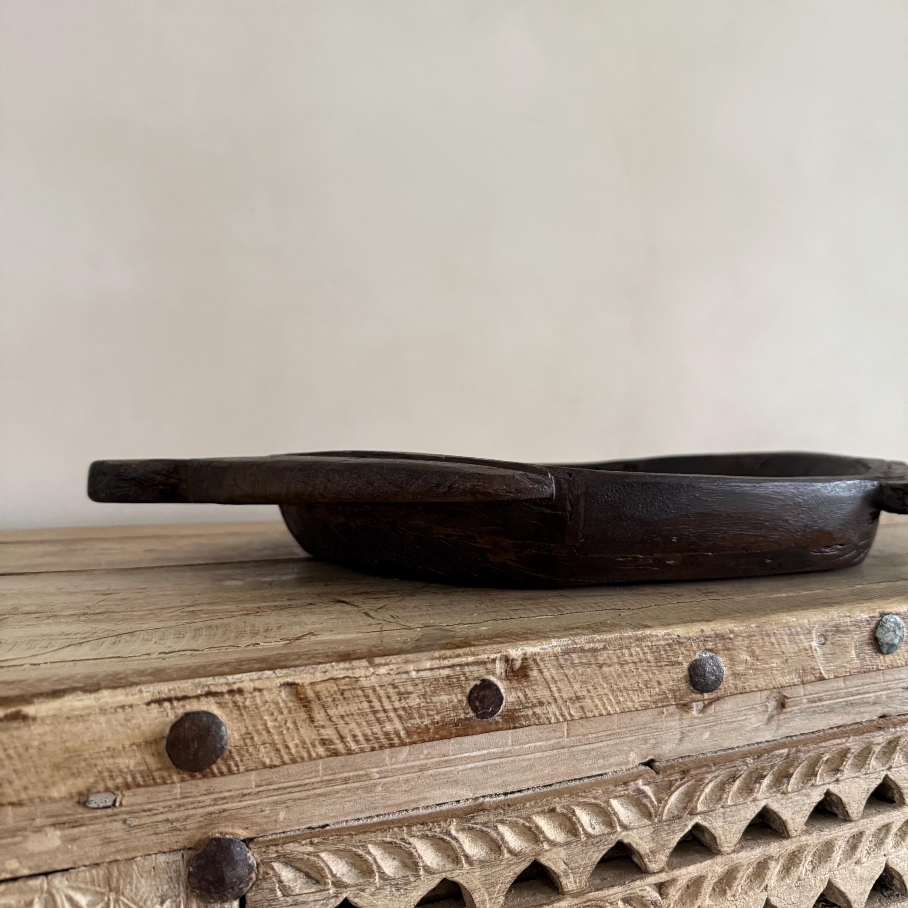 Vintage Teak Wood Dough Bowl | Dark Rustic Parat Tray 22