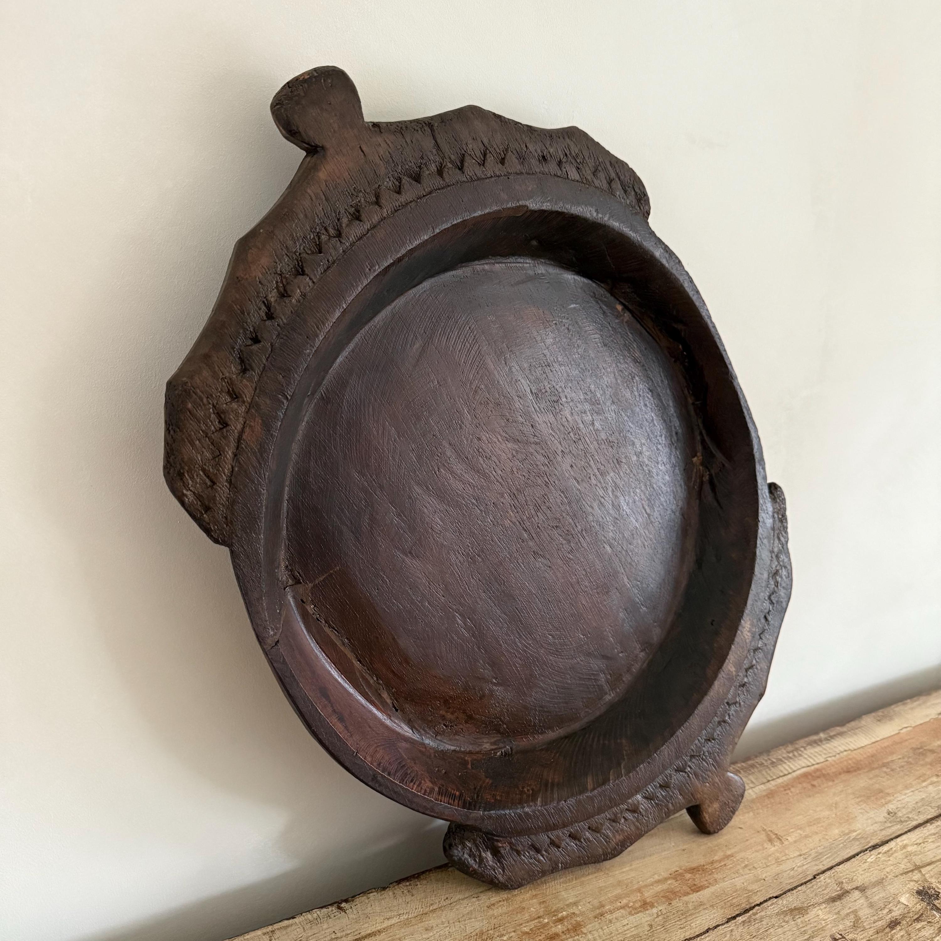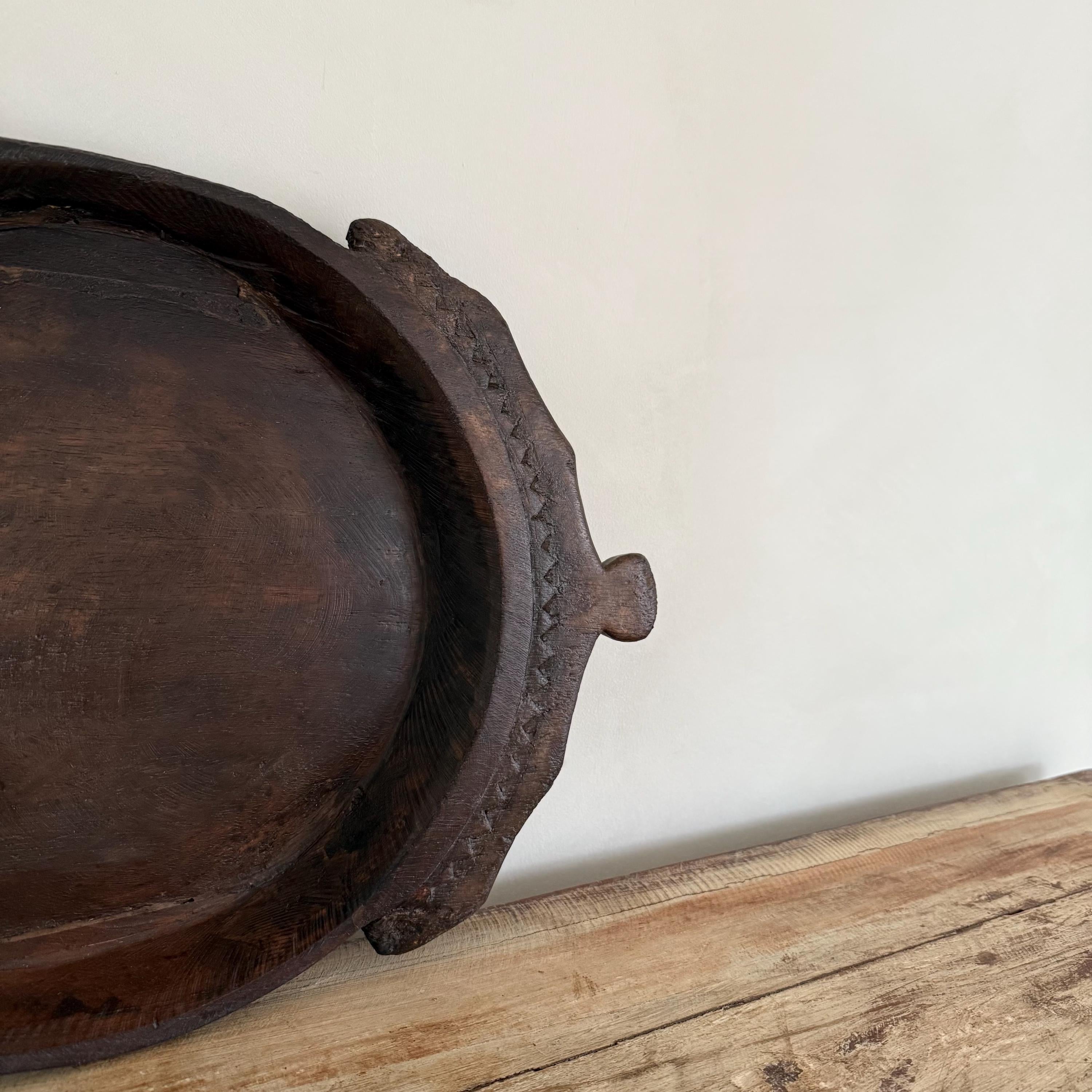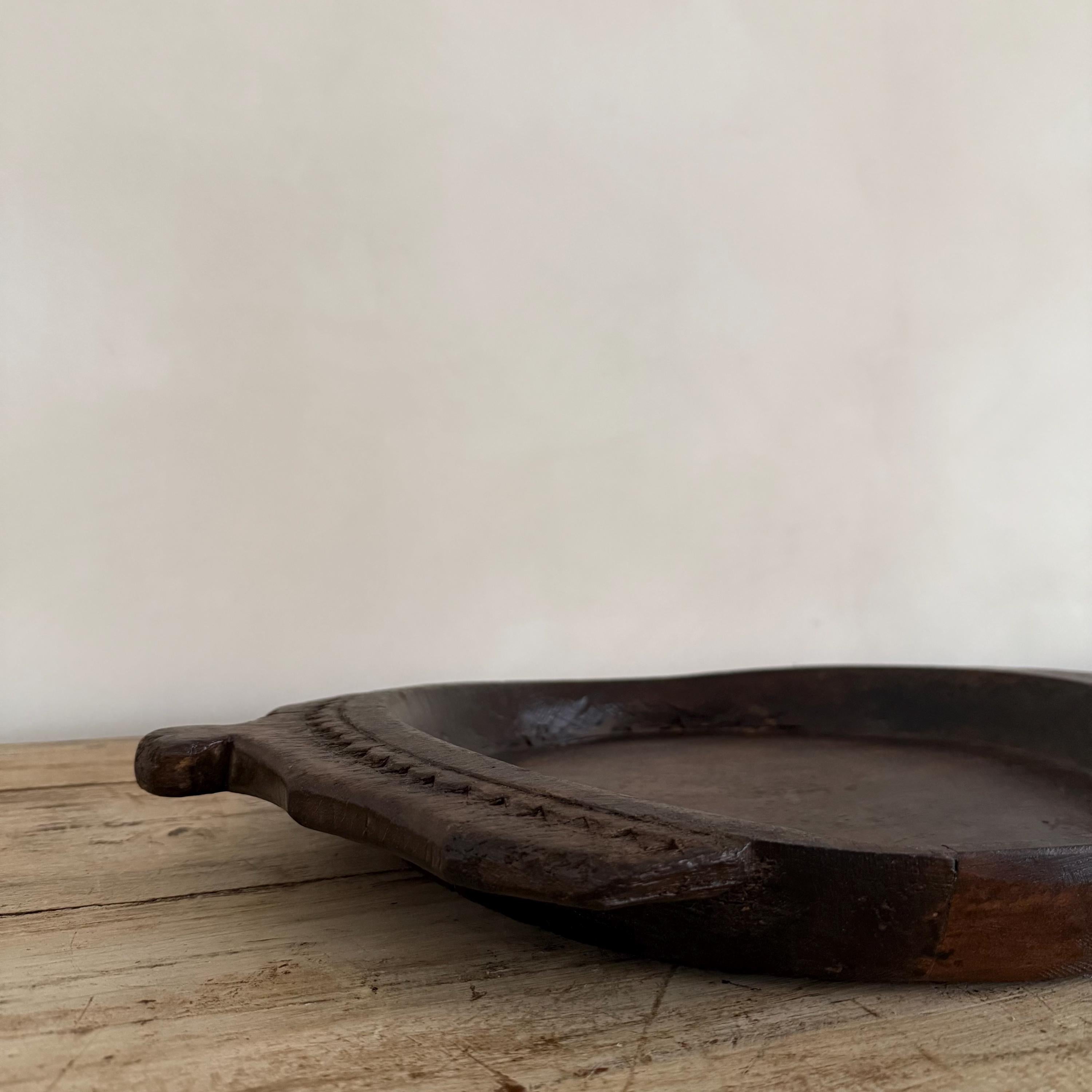 Vintage Teak Wood Dough Bowl | Dark Rustic Parat Tray 19”