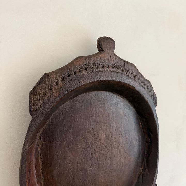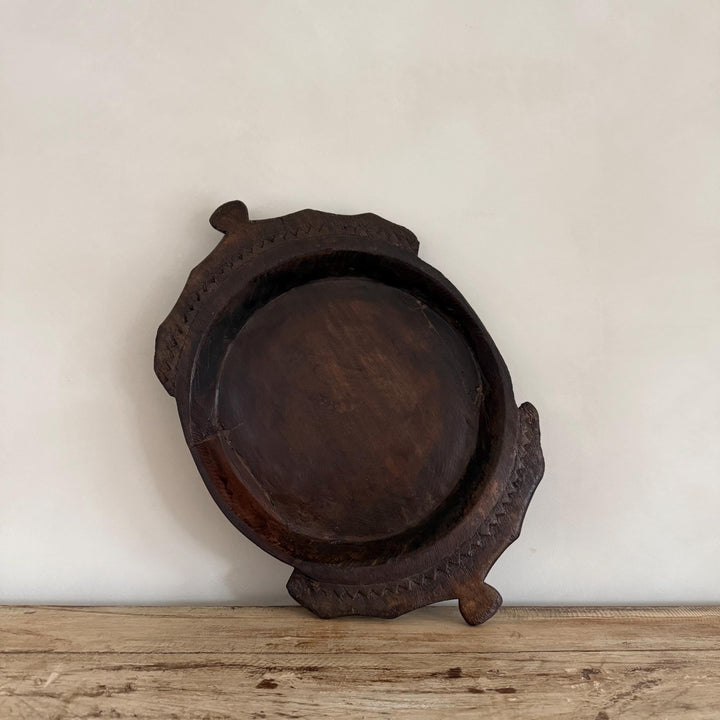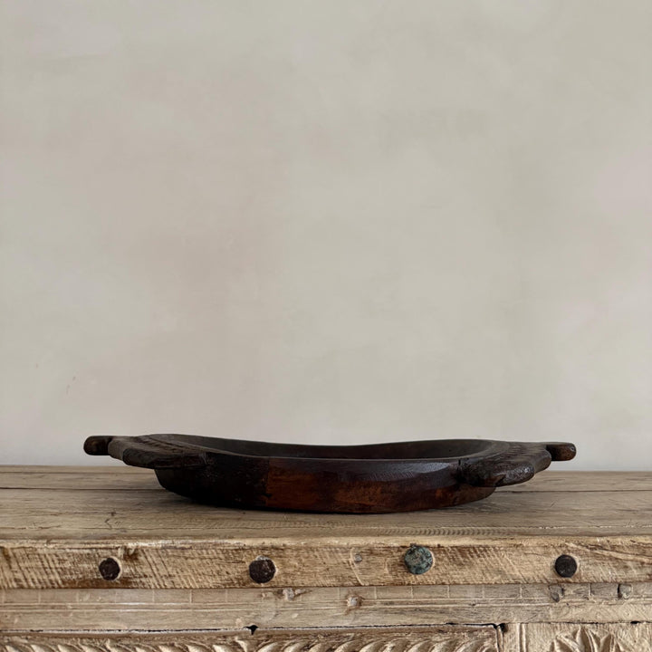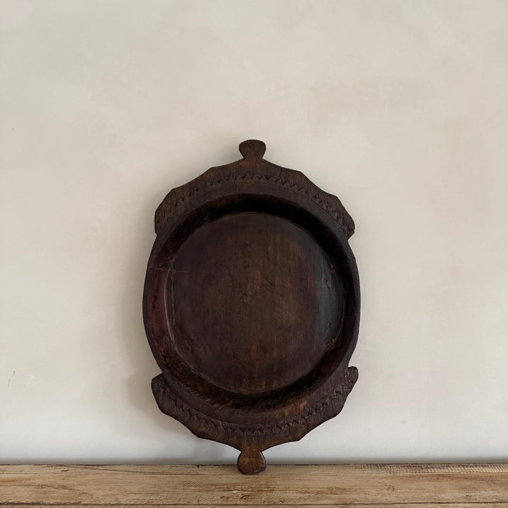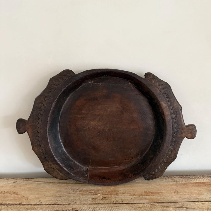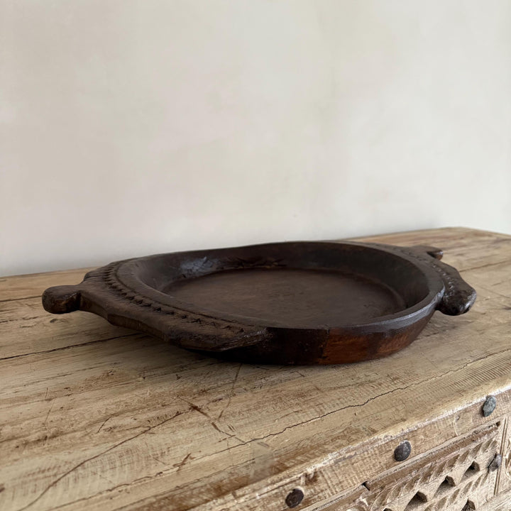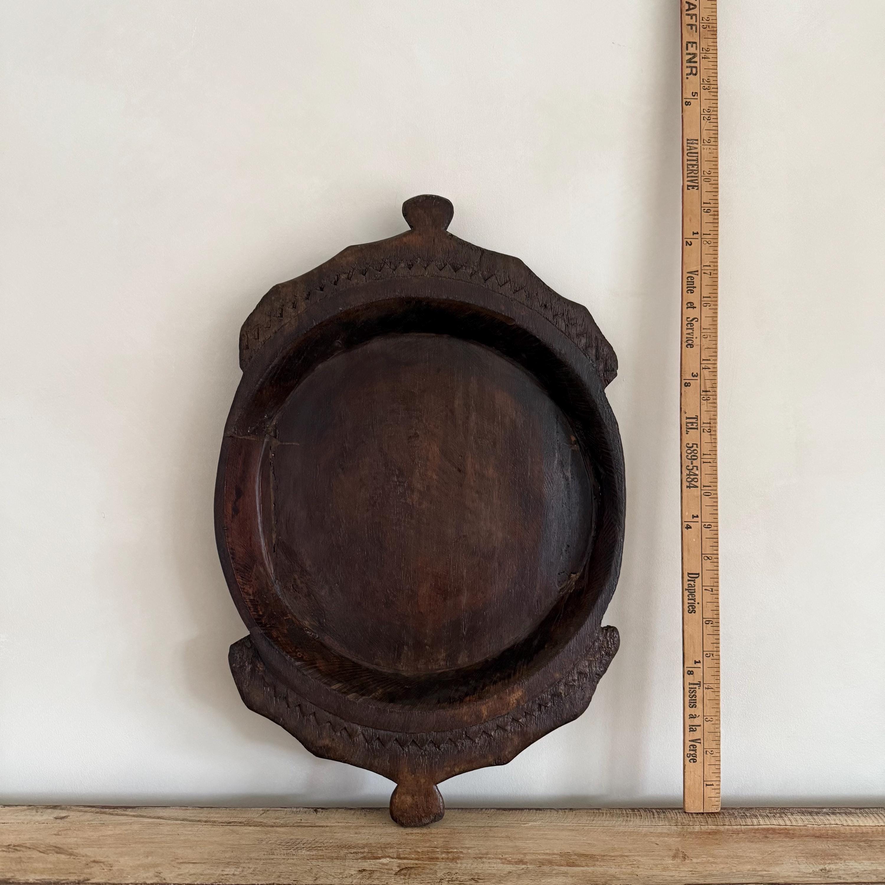 Vintage Teak Wood Dough Bowl | Dark Rustic Parat Tray 19”