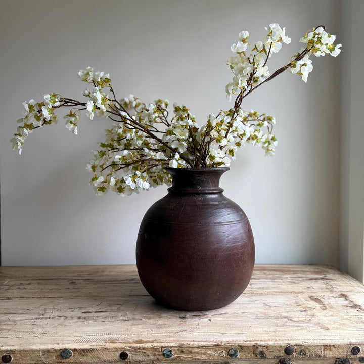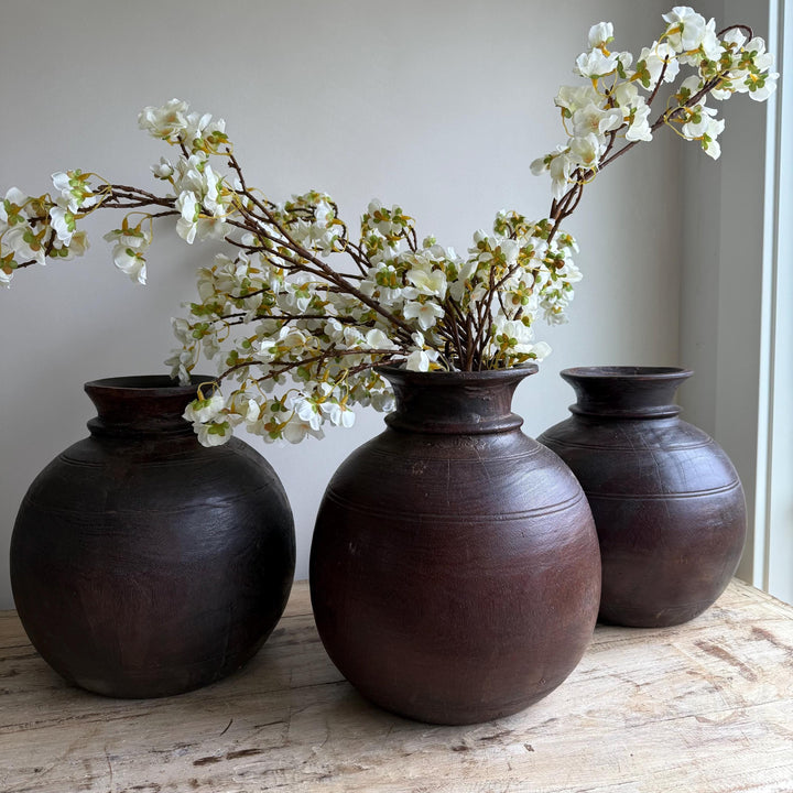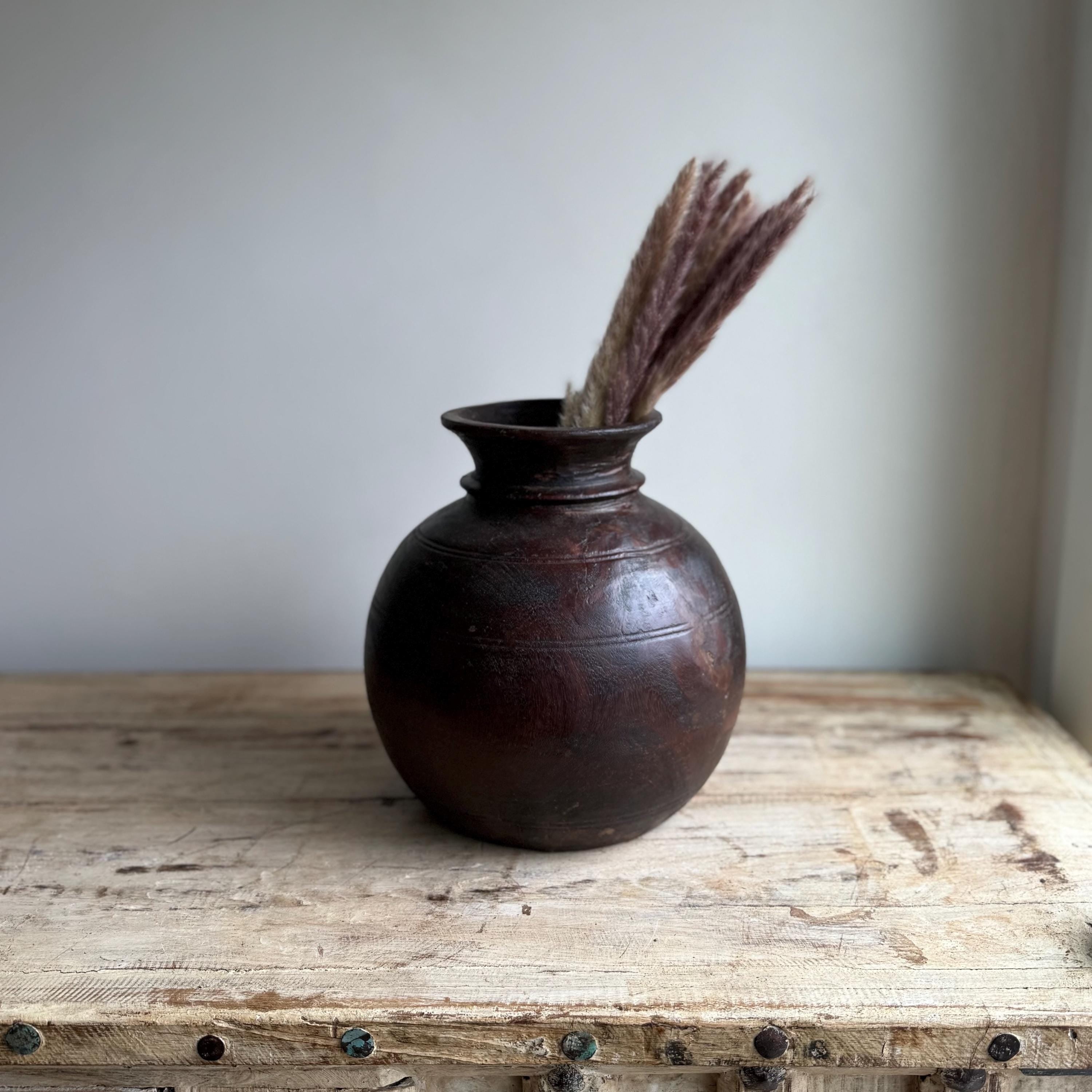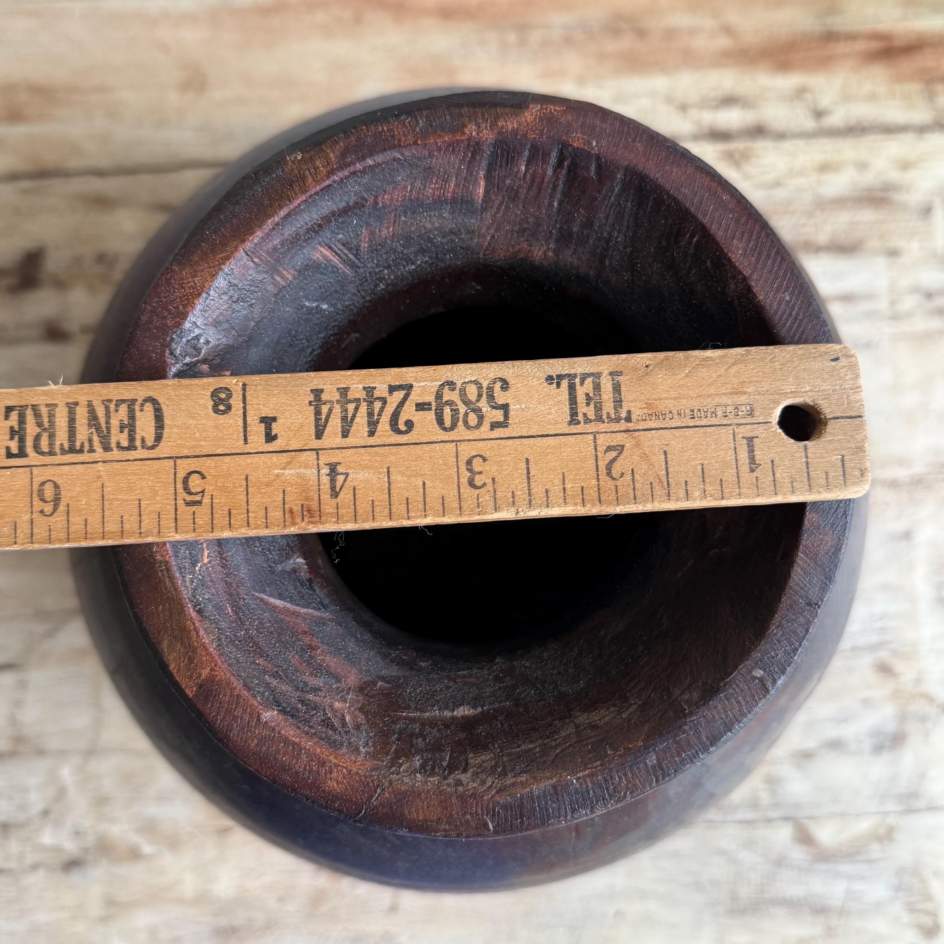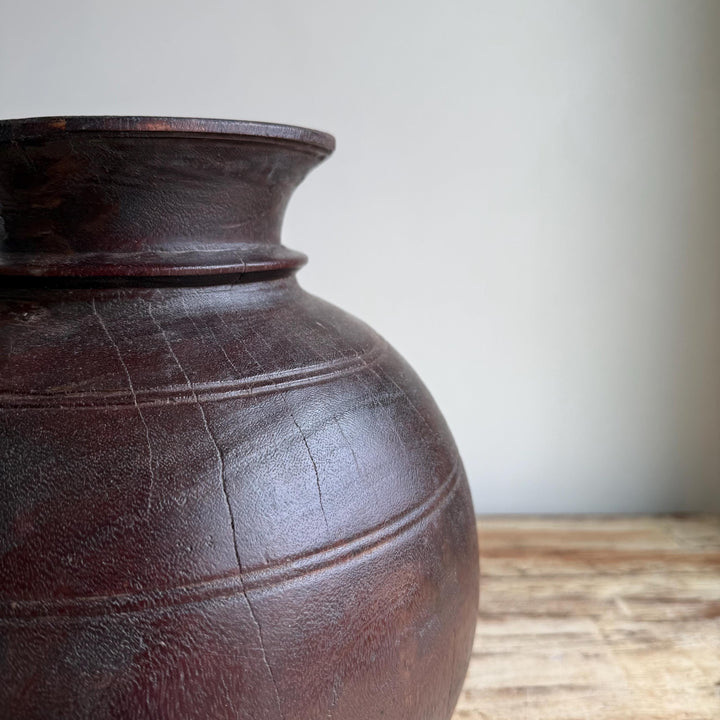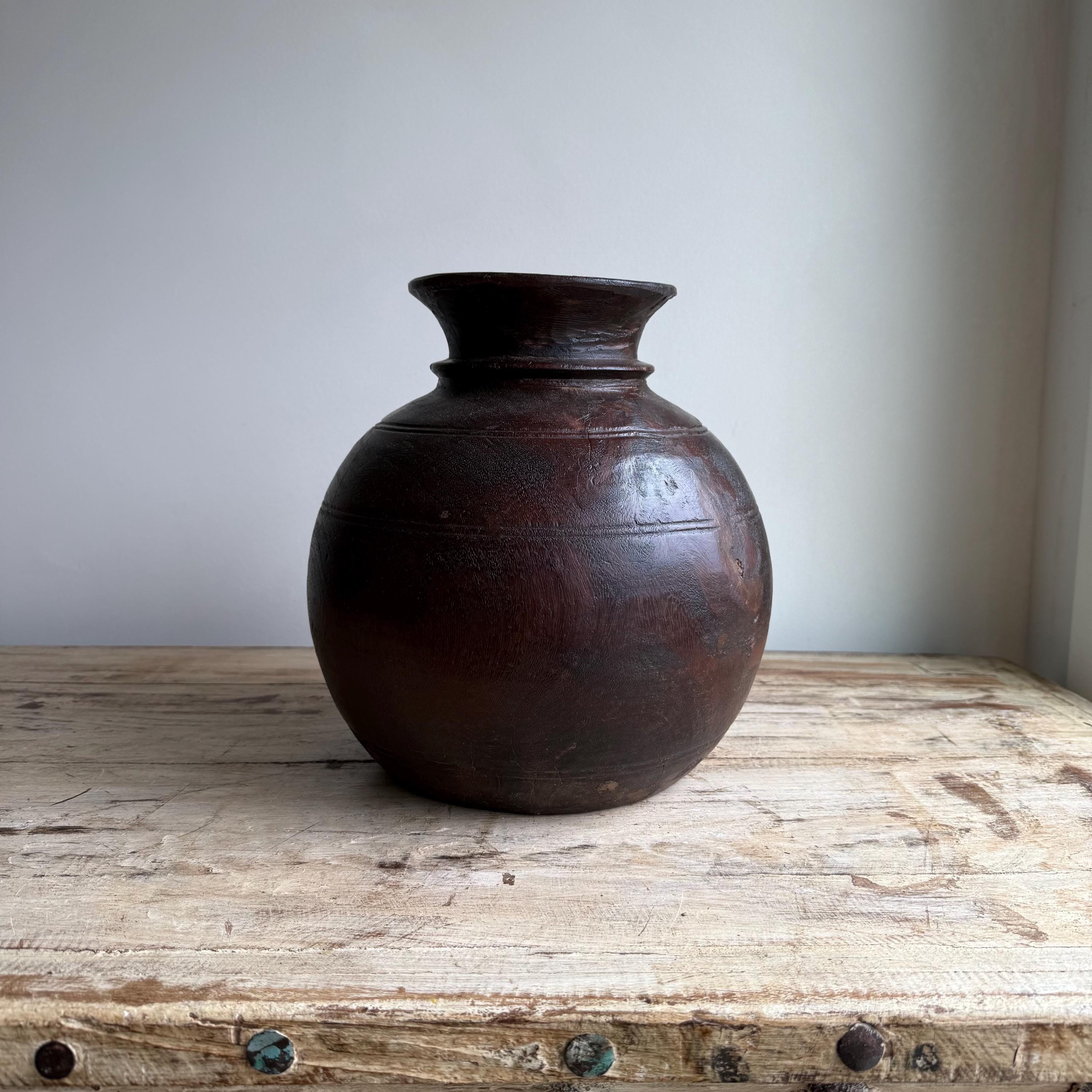 Vintage Wooden 10" Water Pot, Hand Carved Wood Vase, Rustic Antique Planter ,Wabi Sabi Vessel