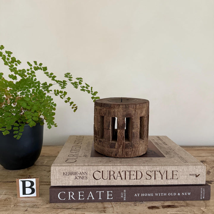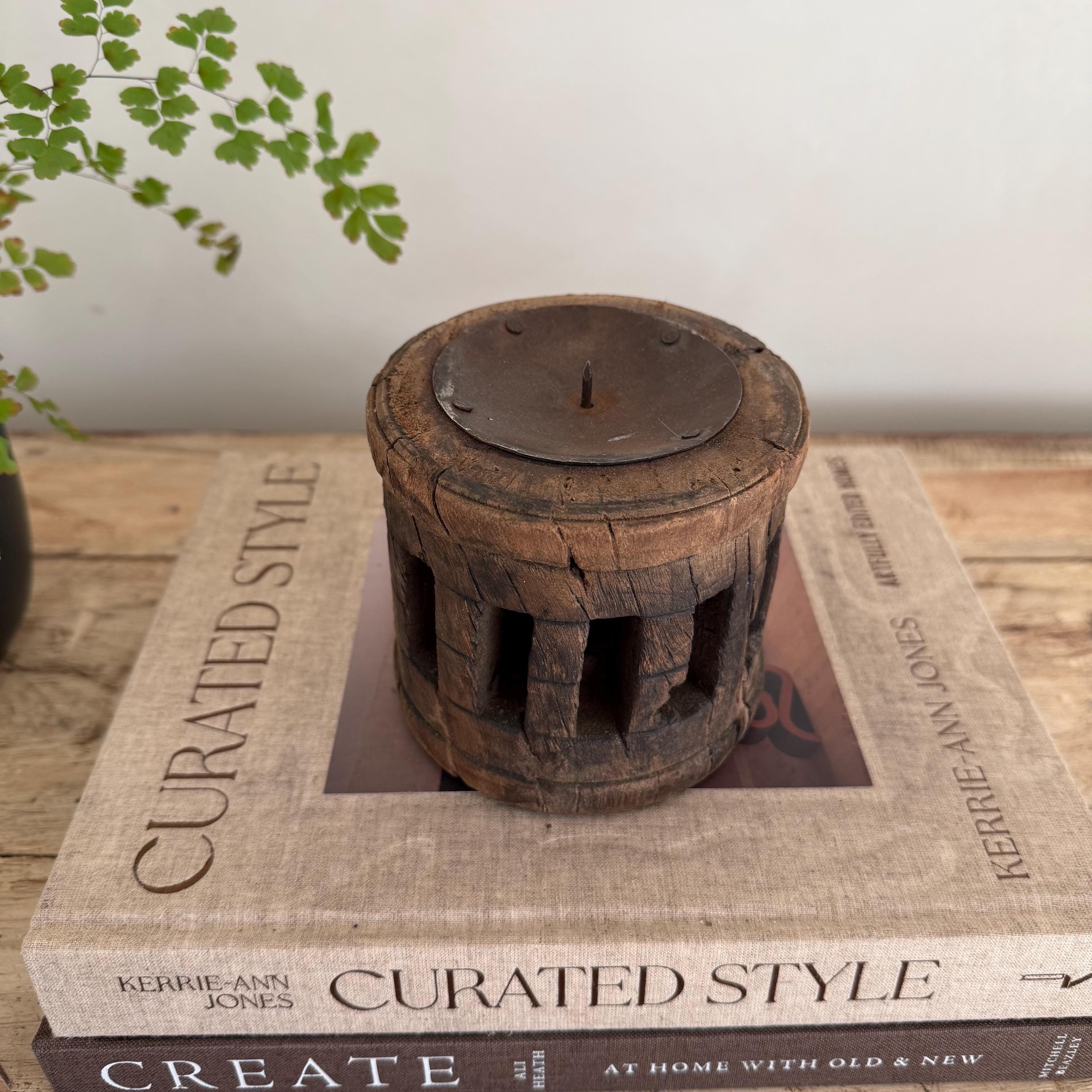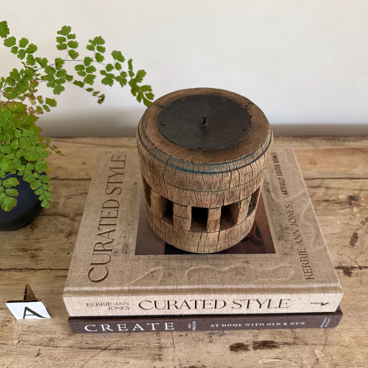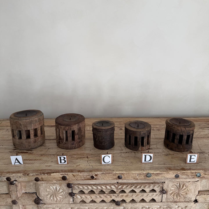 Vintage Wooden Wheel Axle Hub Candle Holders